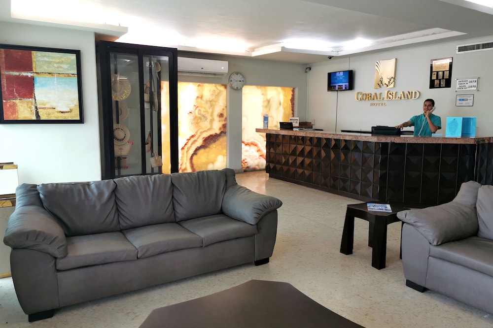 I stayed in a room located on the highest floor overlooking the Malecon. The room had 2 beds, 2 separate patio spaces, desk + chair, patio chairs, TV, and Air Conditioning. Rooms were relatively clean apart from some stains on a pillowcase. A huge cockroach was present in the hallway and we found a small one in the bathroom once (but could be caused by the shower ventilation window facing the hallway that we left open). The pool is cleaned each day before it opens and it was a pleasure to use, there are also 2 jacuzzis but we never used them. It should be noted that a tropical storm caused the loss of power throughout the building for numerous hours overnight, impacting hot water availability and issues with elevator functionality. Power was restored very quickly but hot water/ elevator issues persisted. We stayed for 6 days and selected to have breakfast included which turned out to be a lifesaver as there aren’t any breakfast spots nearby. The breakfast costed an additional $15 per day with the options of eggs w/ sausage, eggs w/ veggies, eggs w/ ham, pancakes, or chilaquiles. Breakfast also included toast (w butter/jam), a refreshing juice and unlimited coffee. Staff was incredibly accommodating as we arrived super late (around 11 pm.) and left earlier than reported checkout to catch our flight. I would stay at Coral Island Hotel again due to all of the above factors as well as its location; in between two ends of the Malecon, Coral Island Hotel was close enough to restaurants, the aquarium, and other tourist spots whilst also avoiding scarier parts located more towards Centro Historico.