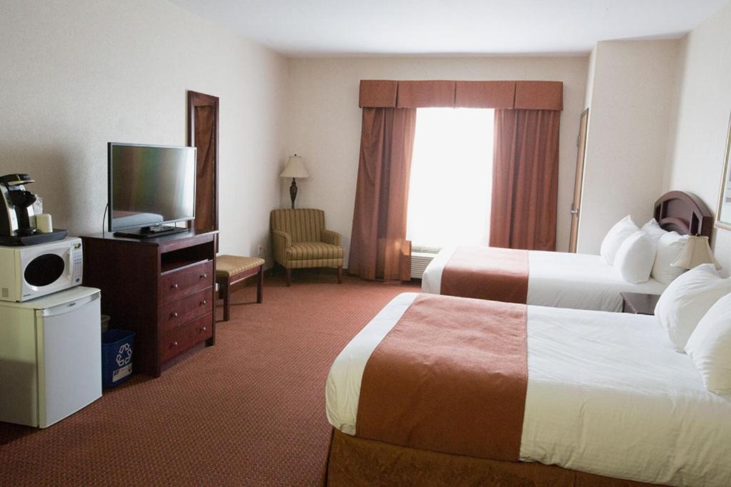 Indulge in comfort at Pomeroy Inn & Suites, where each room offers a flat-screen TV, cozy sofa, and convenient kitchen facilities including a dishwasher.