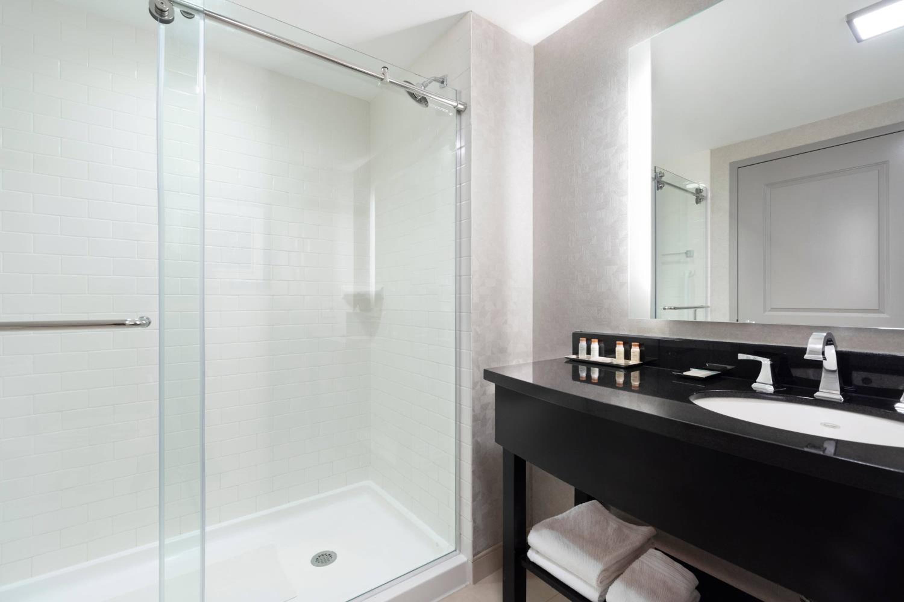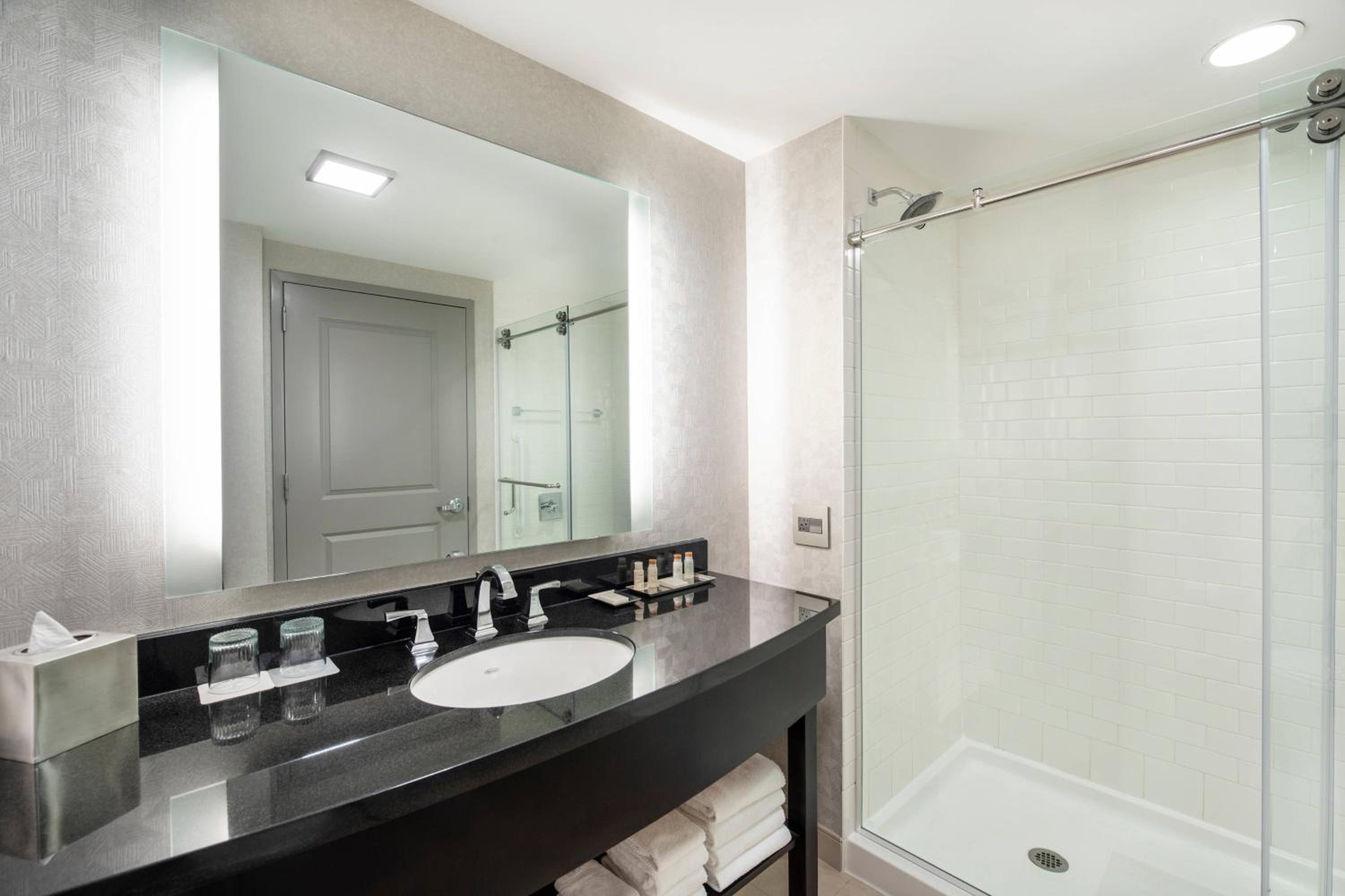 Our room was incredibly clean and cool when we arrived. All of the staff we interacted with were professional and pleasant. Enjoyed the hotel bar, spending credit, and extras included in the daily fee. Steps away from the shops at Patriot Place.