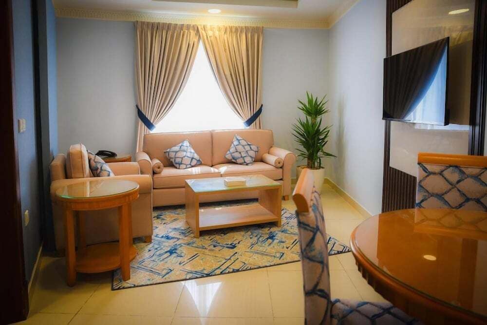 Experience relaxation and convenience at our hotel with top amenities. Convenient Amenities: Enjoy free Wi-Fi, a picnic area, and a vending machine for your comfort. Culinary Delights: Indulge in international cuisine at Bait Misk or opt for room service. Comfort and Entertainment: Unwind in well-equipped rooms with kitchenettes, plush bedding, and LCD TVs. Book now for a memorable stay at our hotel.