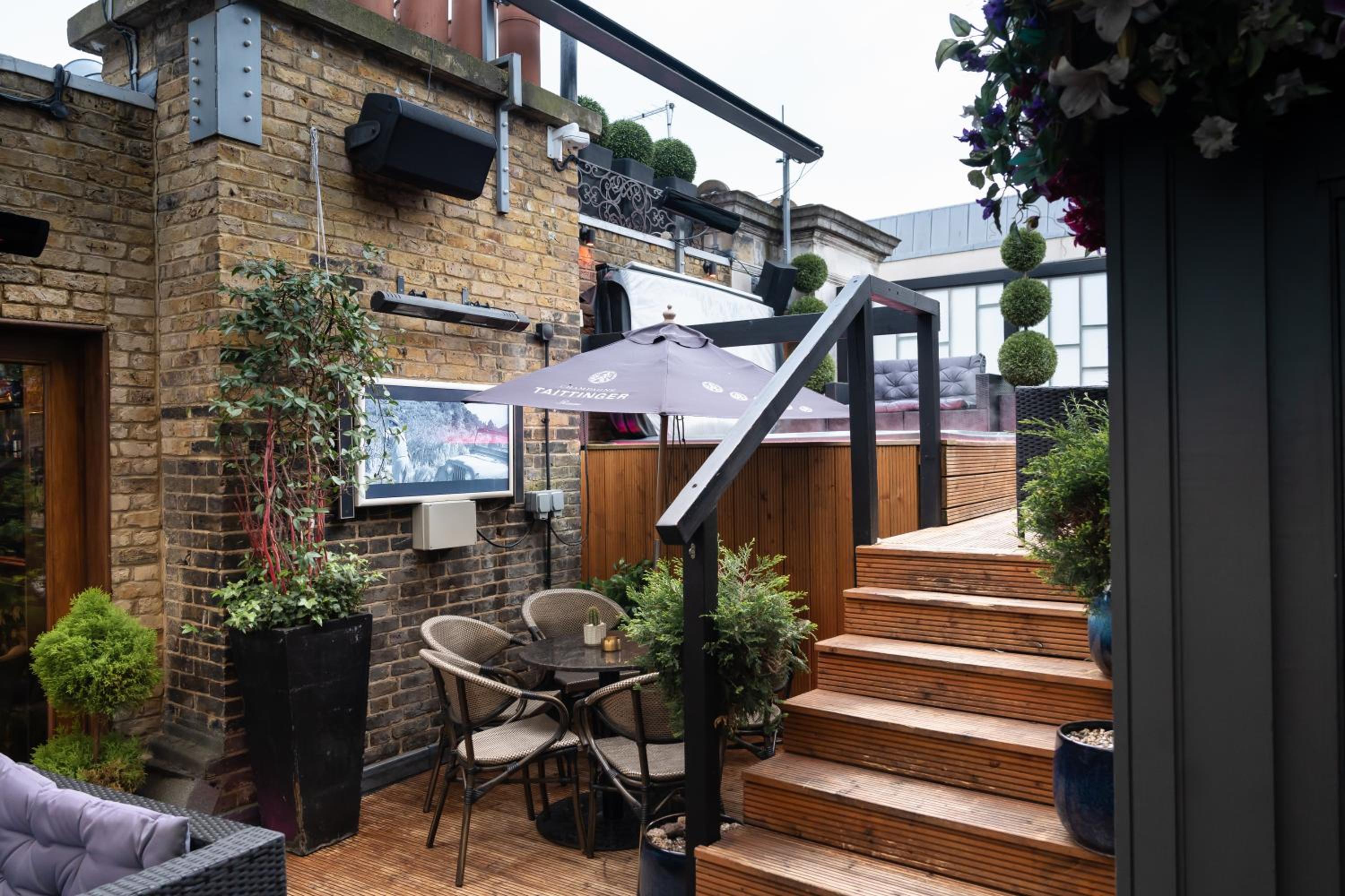 A great location with easy access to restaurants and bars . The hot tub and individual decorated rooms