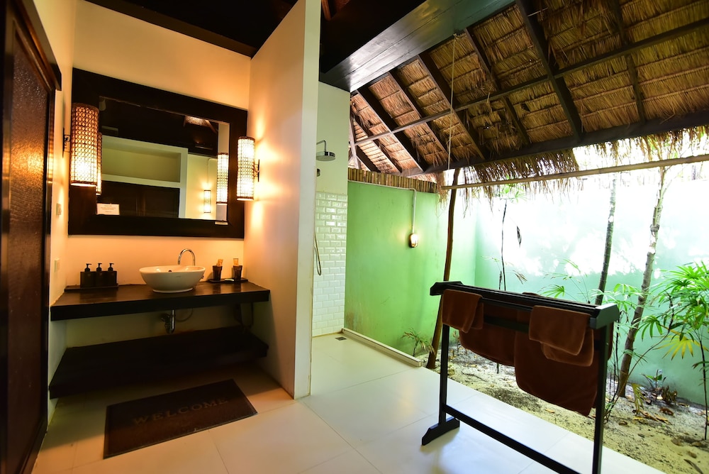 Nice room, good size and an outdoor bathroom, a r eally good Beach vibe.