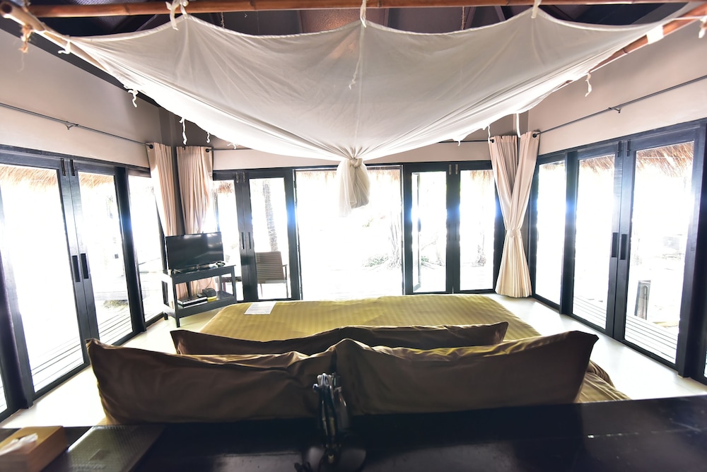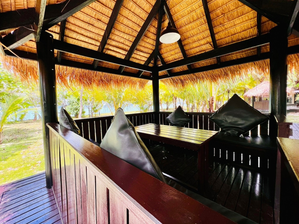 While we had a nice stay at Sevenseas Resort, I have to say that I was a bit disappointed. This is in my view not in any way a 4 star resort - and not value for money when considering the price! I stayed 3 nights with 2 friends. The hotel is quite worn and could definitely need an update. The third bed in our the room was a mattress on the floor, and when we arrived there was no mosquito net covering this bed. This was however fixed on the second day after we alerted the reception. However, the interior of the room was simply not convenient in any way. It was mostly made up by a huge king size bed (very comfortable), but there was no place put any stuff or your suitcase. The outdoor bathroom was almost the same size as the room, and here was put the wardrobe, but really, in such a humid heat, we had no wish to put our clothing out in the humid bathroom. So really not a smart design of the rooms. We heard that the beachside villas are nicer and more updated. The area of the hotel is indeed nice, right on the beautiful beach, you have an option to rent snorkeling equipment or kayaks/SUPs, and with plenty of sunbeds to lounge on. The restaurant was so-so, food was ok, but nothing special I'm afraid, and we ended up having our meals in restaurants in other resorts on the island. Lastly, while the staff were all very friendly, smiling and accommodating, the service level was quite off, it's like there was missing some efficiency and management, as if each staff had his or her task, and they would never stray away from that. So for example, there could be dirty and empty dishes sitting on tables in the restaurant for extremely long, because the two waiters who were just standing looking at their phones clearly were not tasked with cleaning up tables, and the guy who did that was not there... And in the morning, there was one filter coffee machine, extremely slow, for all those guests... So overall, while a nice hotel and beautiful surroundings, I was disappointed and would not call this a 4 star hotel.