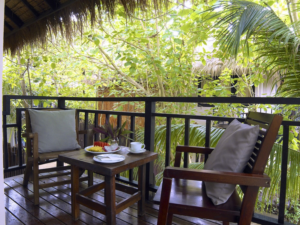 Our stay in Seven Seas was very pleasant; surrounded by palm trees and a picturesque beach. The rooms were nice with a traditional tropical ambience with mosquito nets and open bathroom. Having said that the place could do with some maintenance, especially the beach beds and the beach itself. They could run some environmental awareness programmes. both for the western guests as well as the locals. The beaches are littered with plastic - packets, bottles, cigarette butts etc. The Island should abolish or reduces to the minimum the use of 1 time plastic including water bottles and straws.