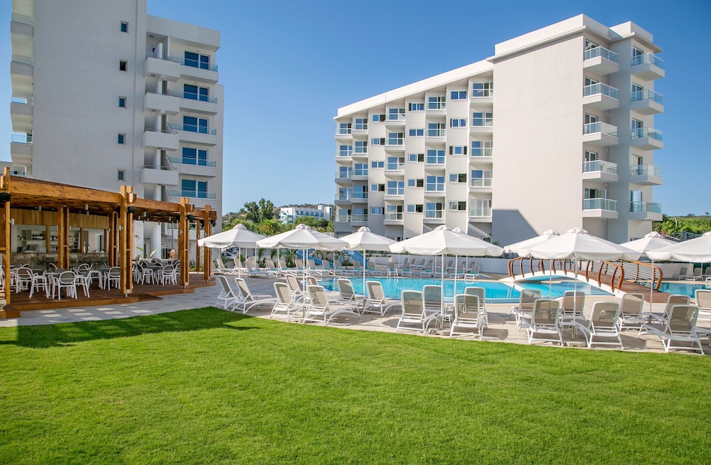 A good choice for families. We went full board which was great for the children. Personally too much food & drink! Walking distance to main strip and beach but beaches get very busy even at end of season. Two beach beds and umbrella 7.5€. Very reasonable compared to other beaches visited in Europe.
