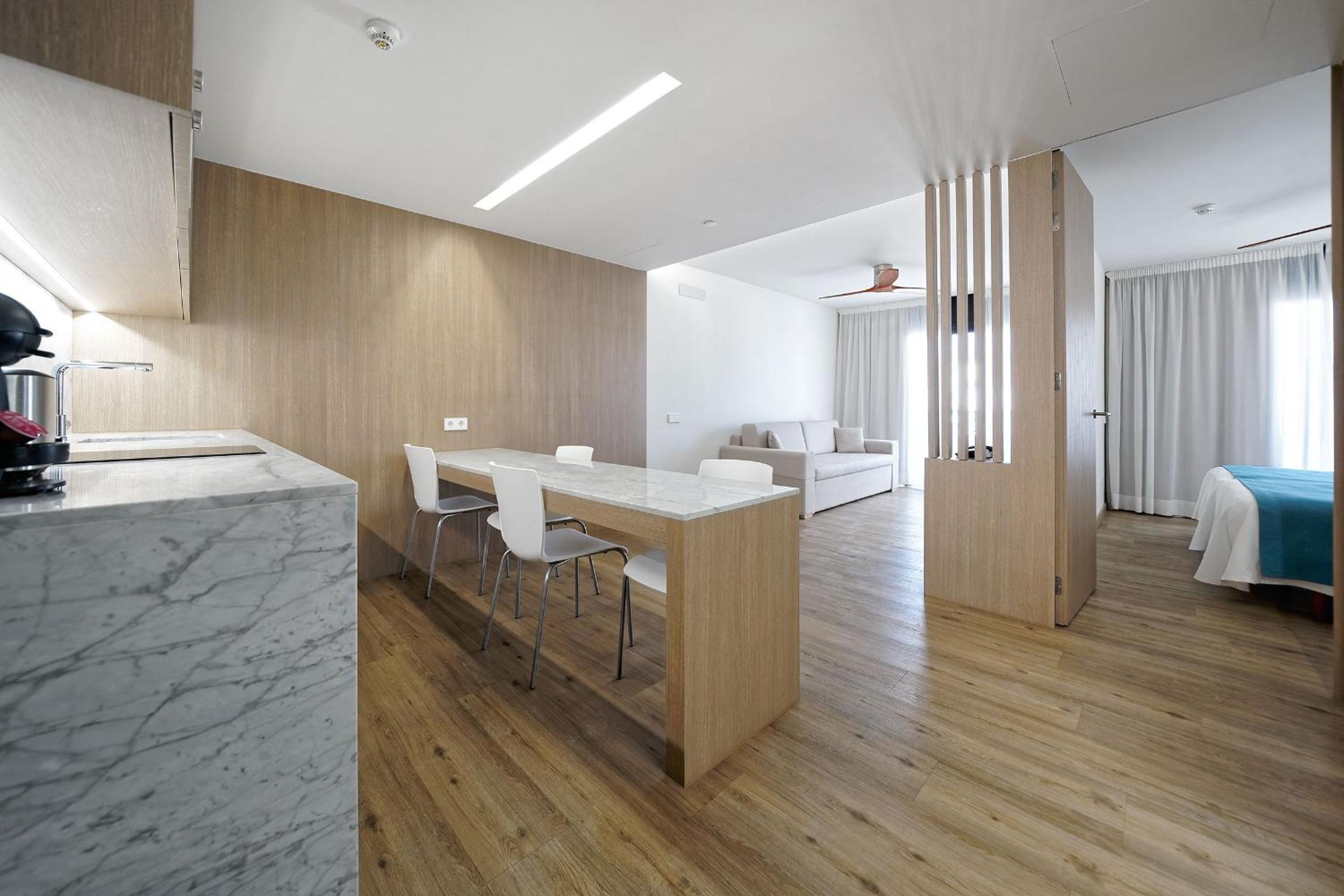 Just back from a week at Parque La Paz, first time staying there and would definitely go back. We were self catering in 1 bedroom apartment. The apartments were very spacious and clean. It was great to have a separate bedroom rather than everything squashed into the one room. We didn't do any cooking, just used the kettle and fridge but there seemed to be enough utensils etc to make a simple meal if required. There was also a microwave which is handy. The maids came every day to make the beds, change towels etc. We were in room 227 which didn't have much of a view, just looked onto another apartment block and the balcony didn't get any sun at all. Maybe next time it would be worth looking into paying extra for a pool view. There were some activities at the pool during the day, darts, aqua bikes, stretching classes etc. At night there was usually a singer in the bar next to reception, we didn't go in, just walked passed so can't really comment on much else about that. Hotel is in a great location, just round the corner from the golden mile/safari centre and lots of other pubs, restaurants and shops right on your doorstep. Overall it was a great place to stay and I would highly recommend it to others.