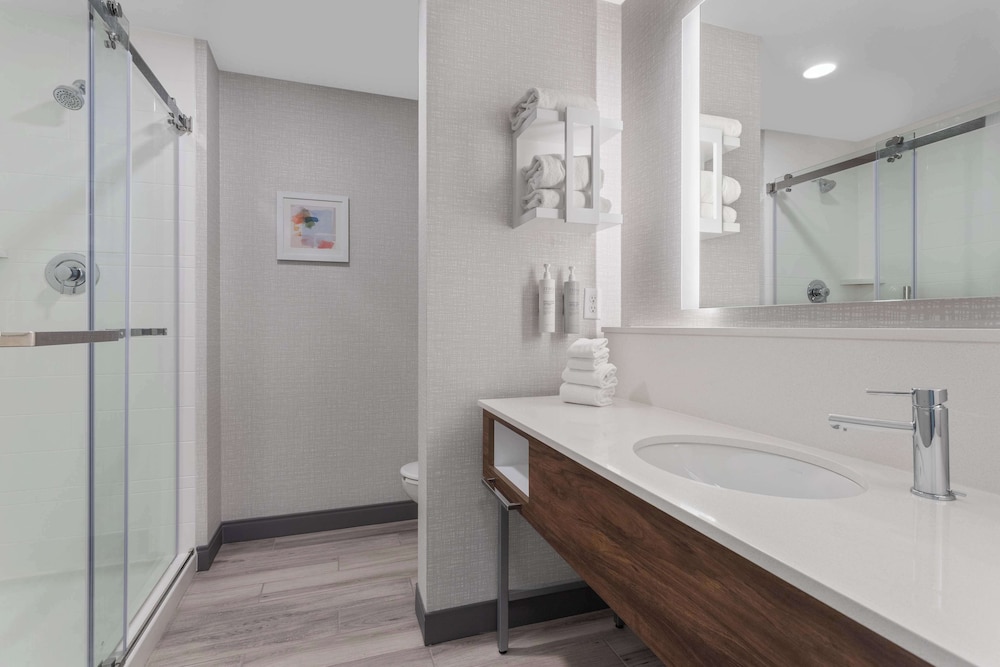 Spent one night here during a road trip and appreciated the convenient location right off the interstate. The only drawback on arrival was the condition of the driveway as there’s a large, cone-marked hole that spans nearly half the entrance, which doesn’t make for the most welcoming first impression. Check‑in was seamless thanks to the app and mobile key, and the room itself was spacious, clean, and fully functional. The hotel is also just a short drive from plenty of dining options, which was very convenient. One thing I noticed, though it didn’t affect my stay, was the absence of a front desk employee on multiple passes through the lobby in the evening and again the next morning. It left me wondering whether the desk was staffed at all. Overall, a comfortable stay with a few operational details that could be improved.