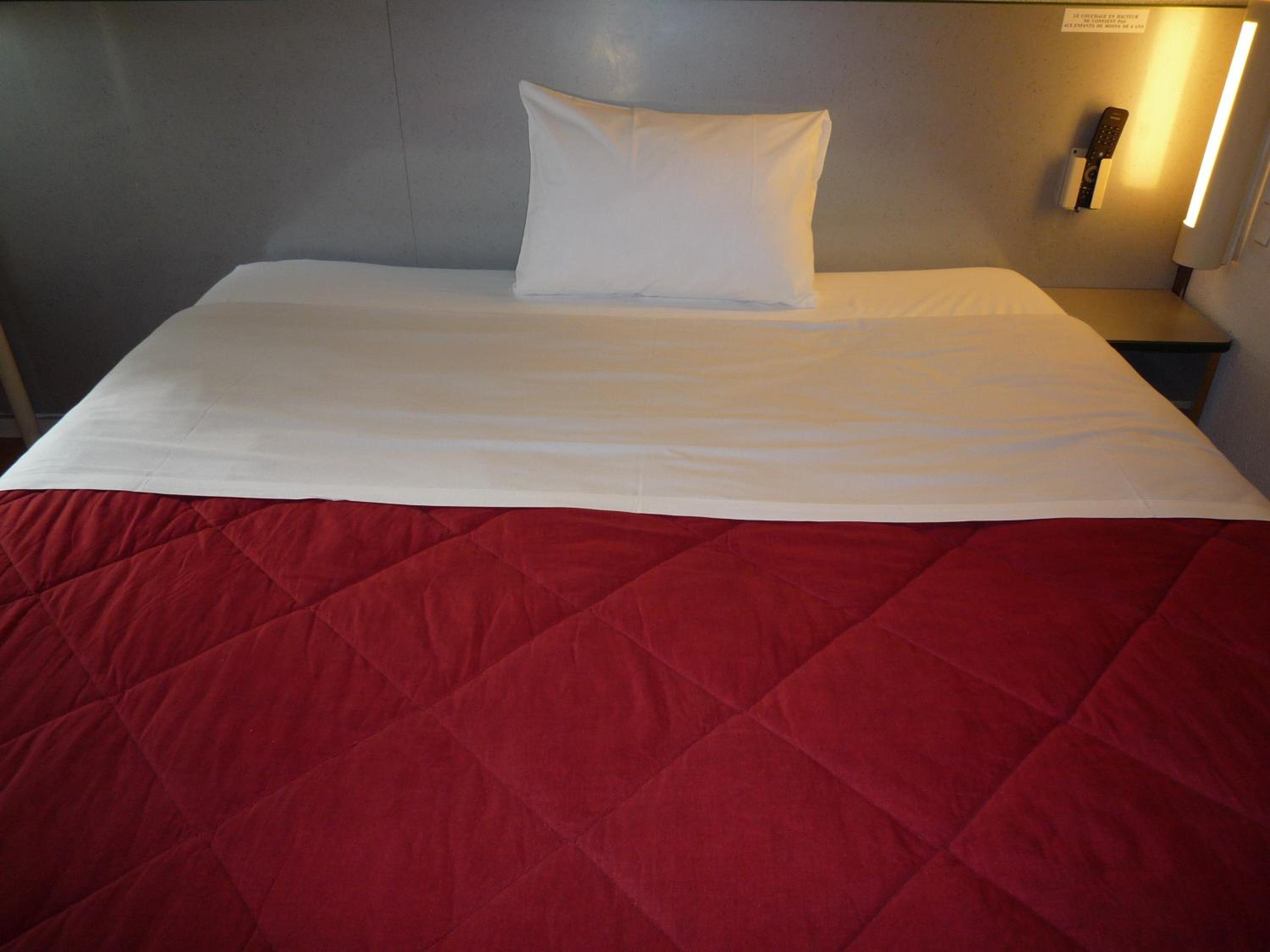 Literie très ferme, manque de prise et de table de nuit.