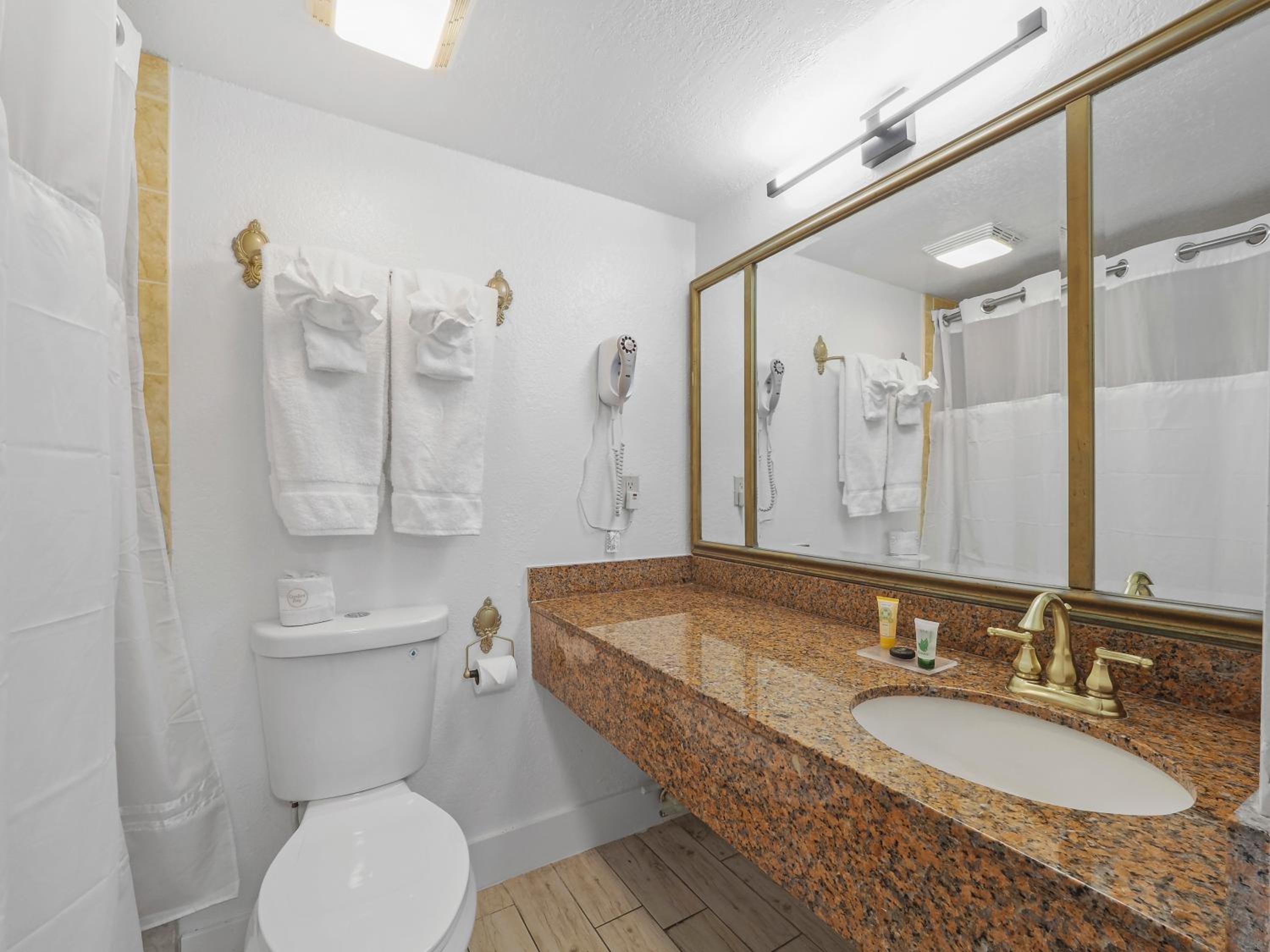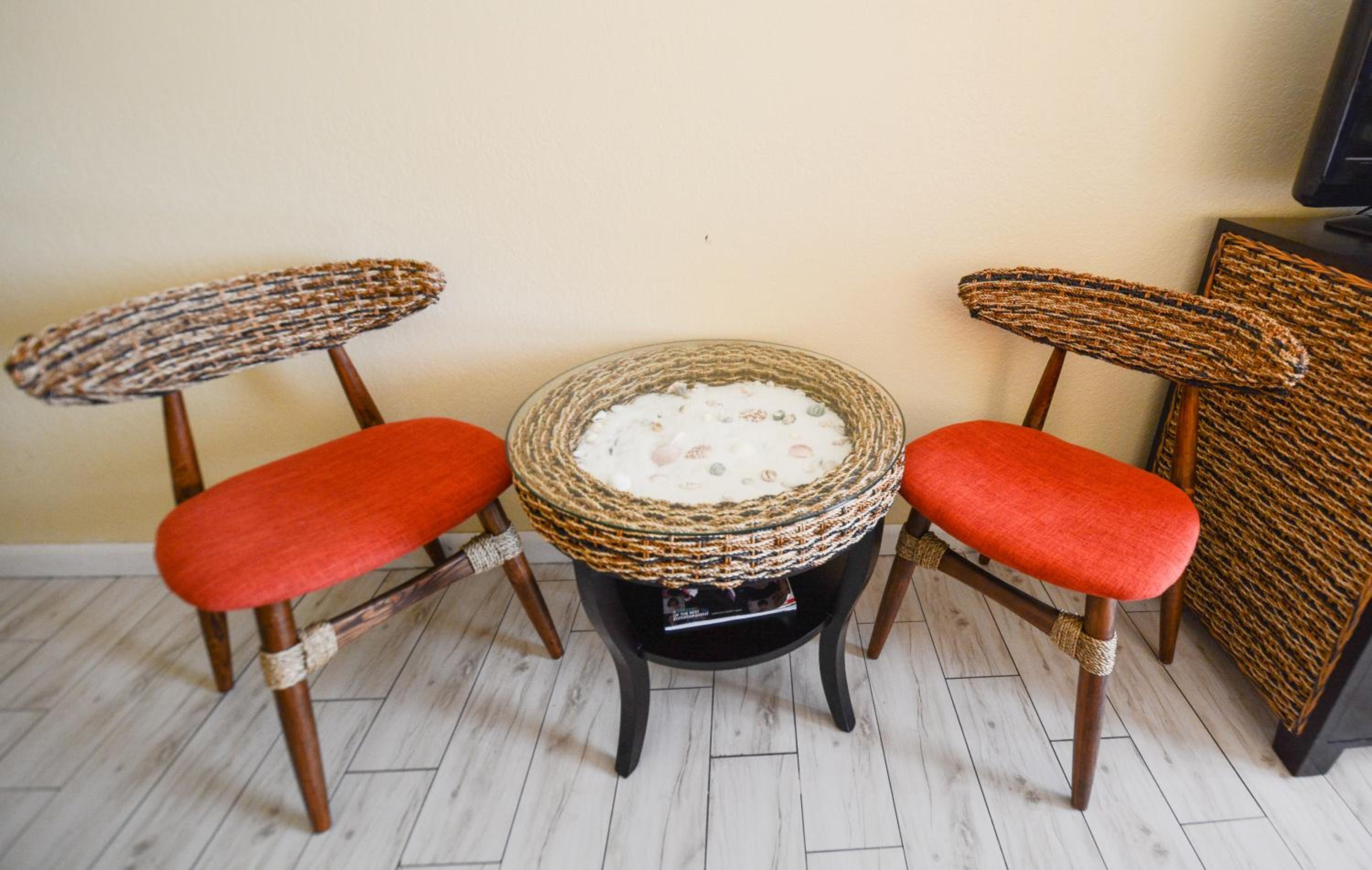 Experience comfort in every corner with rooms featuring free Wi-Fi, a balcony, microwave, small refrigerator, and flat-screen TV. Enjoy unique tiki-style furniture, granite bathrooms, and plush pillow-top bedding for a relaxing stay.