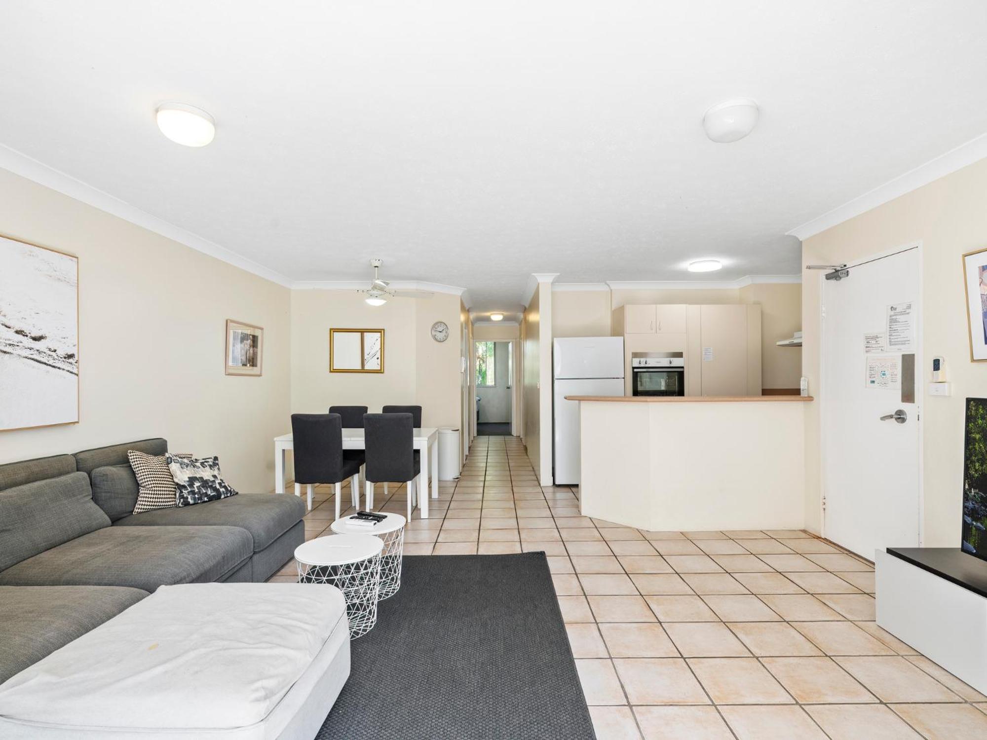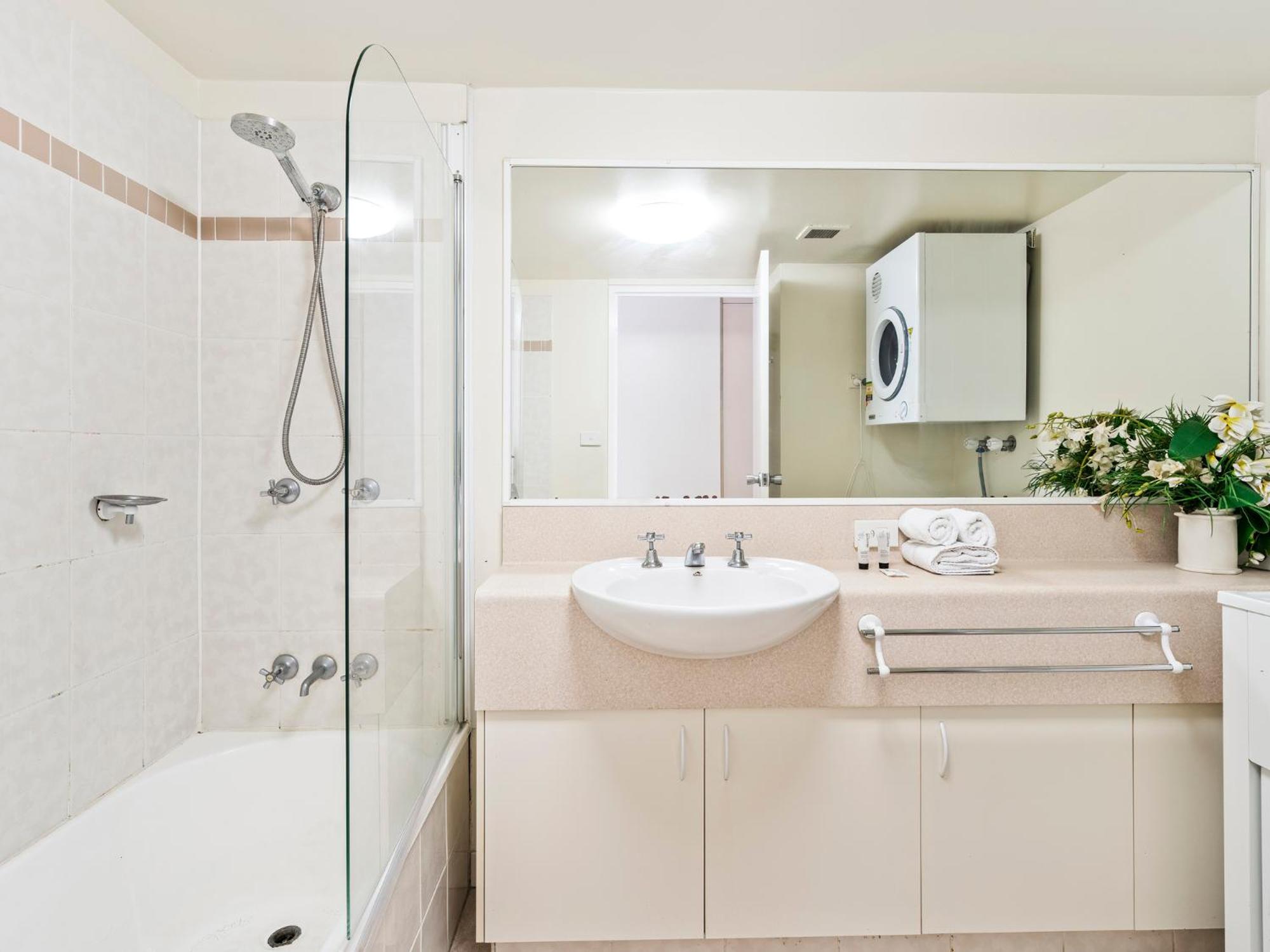 Amazing location being 100 metres to the beach.The 2 bedroom self contained apartment was superb.We had the two bathroom and two toilet one which super handy at times.Having a washer and drier was awesome.The pool and spa were always clean and i could swim in the pool with eyes open and not stinging for a change.The carpark underground was very secure.Staff were very friendly.