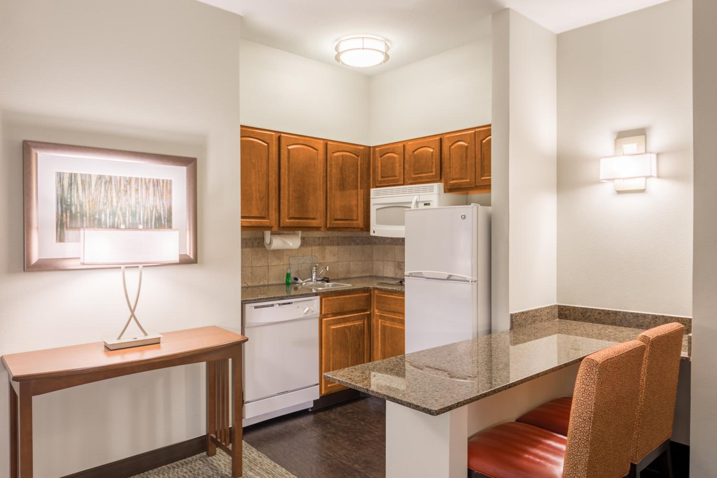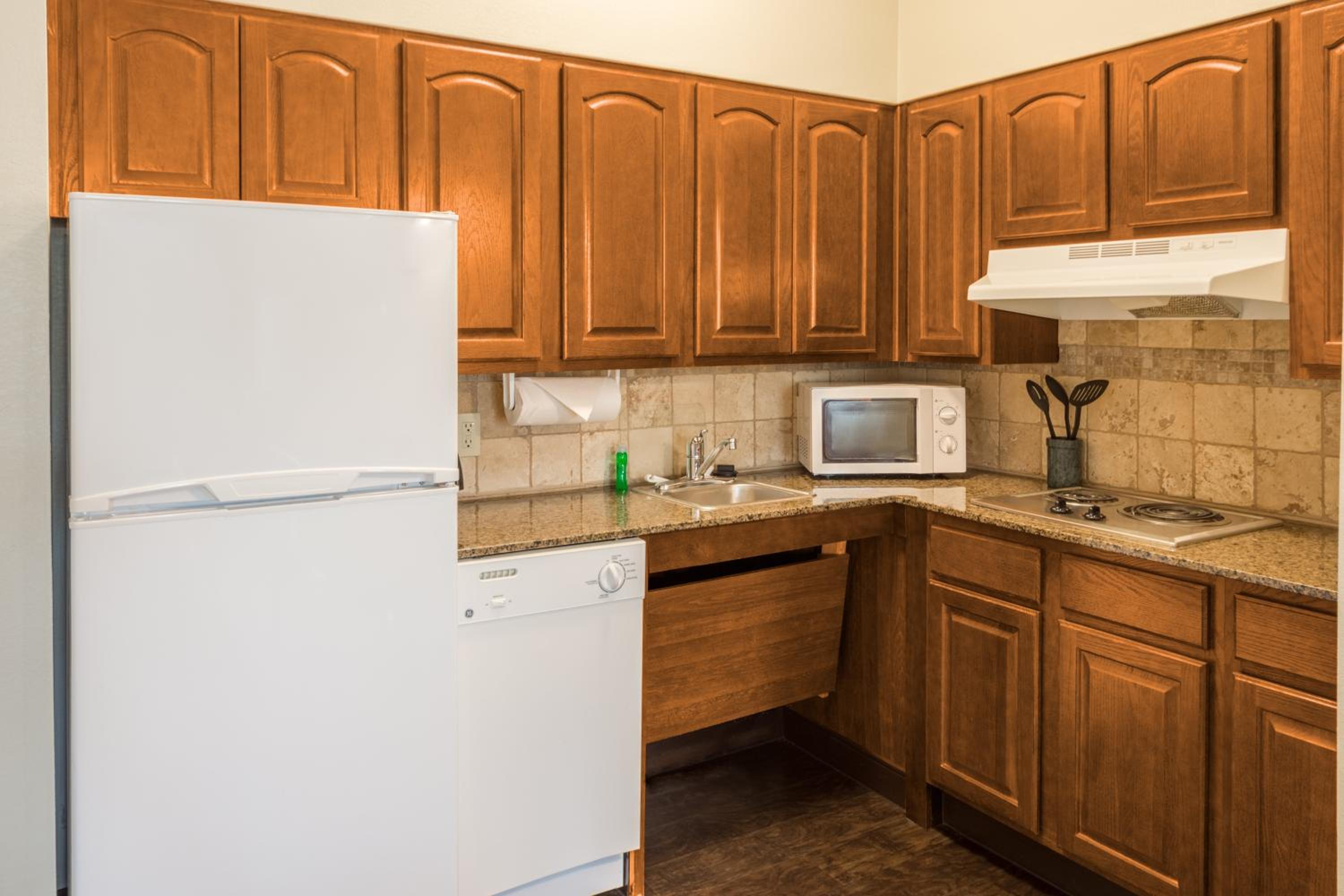 Spacious Suites: Decorated in soothing tan colors, our suites feature full kitchens, cable TV with in-room movies, and a work desk for your convenience.