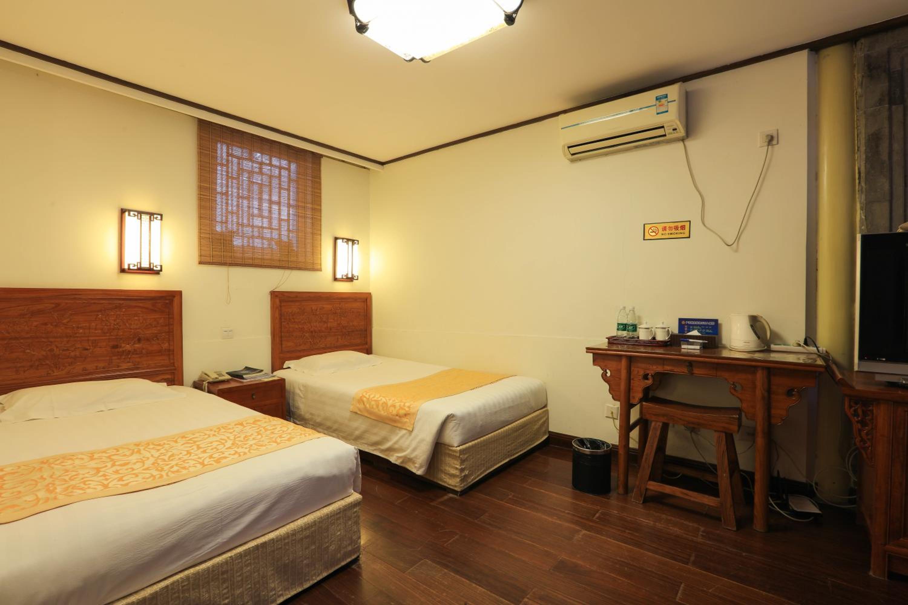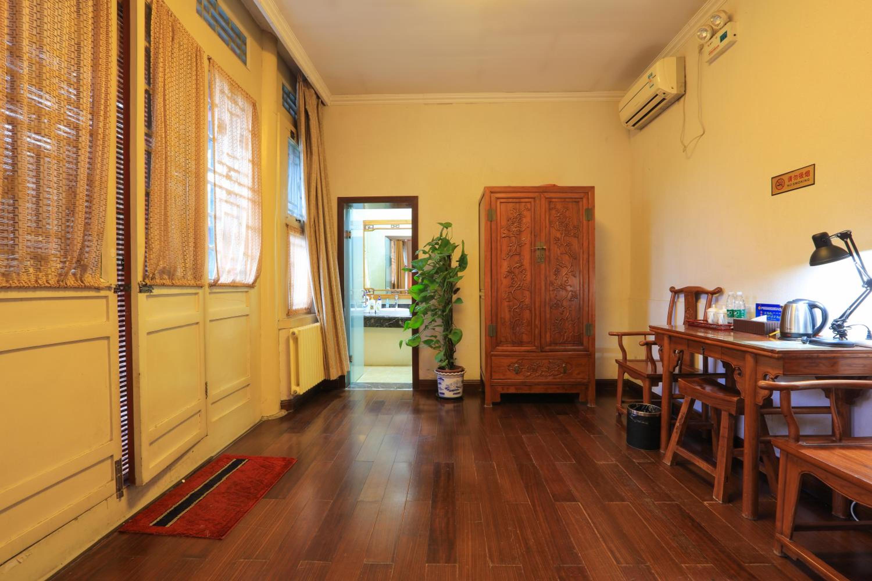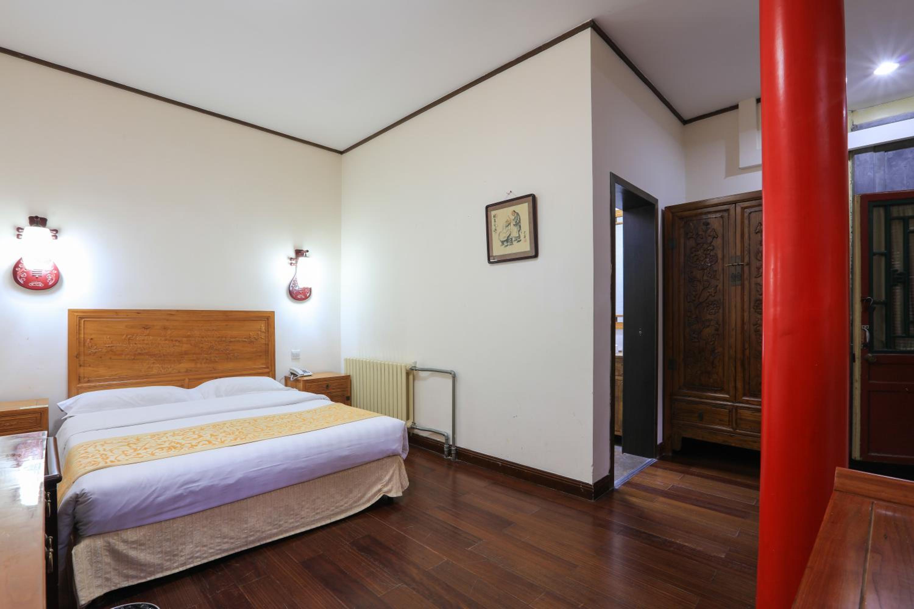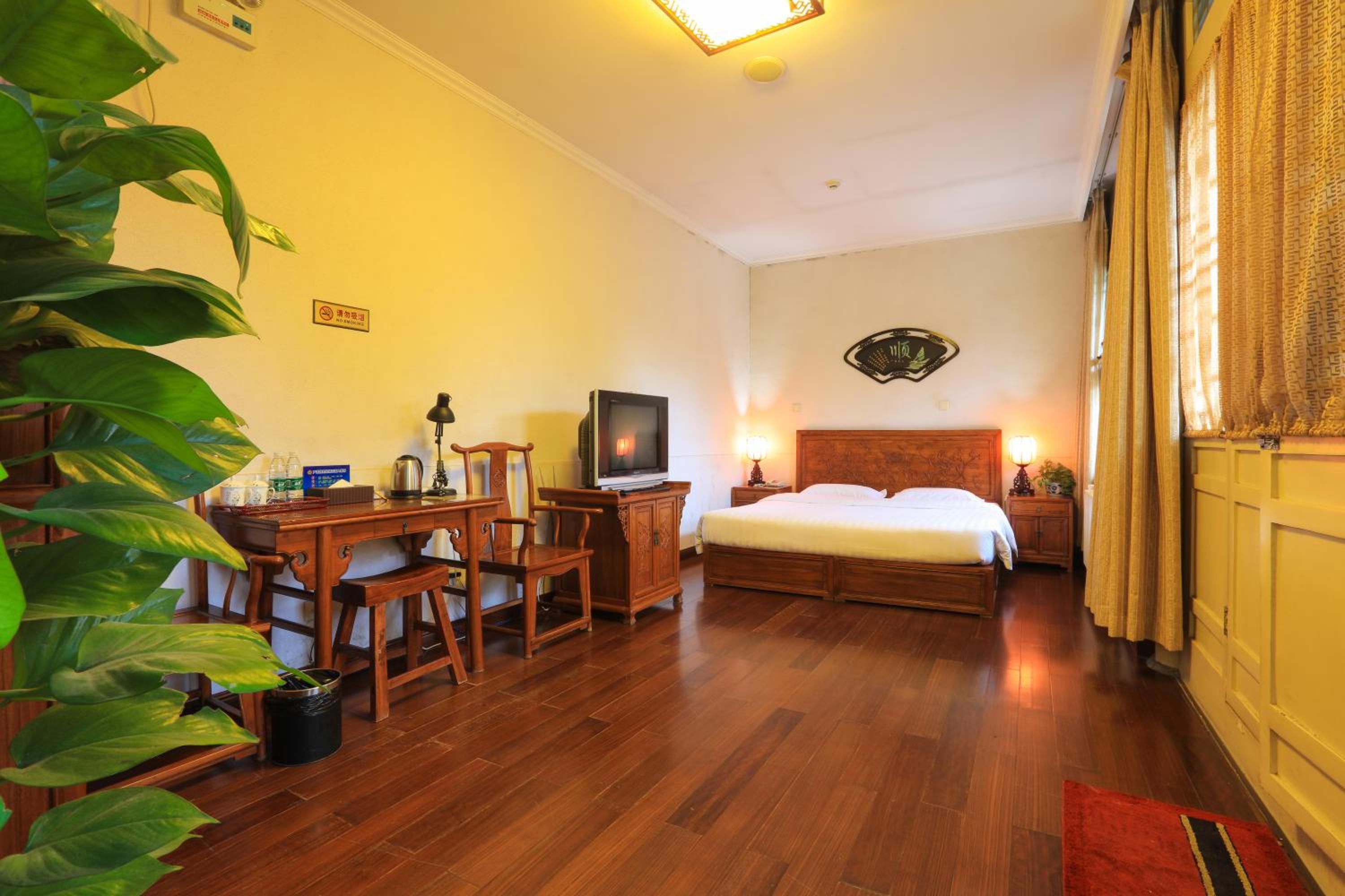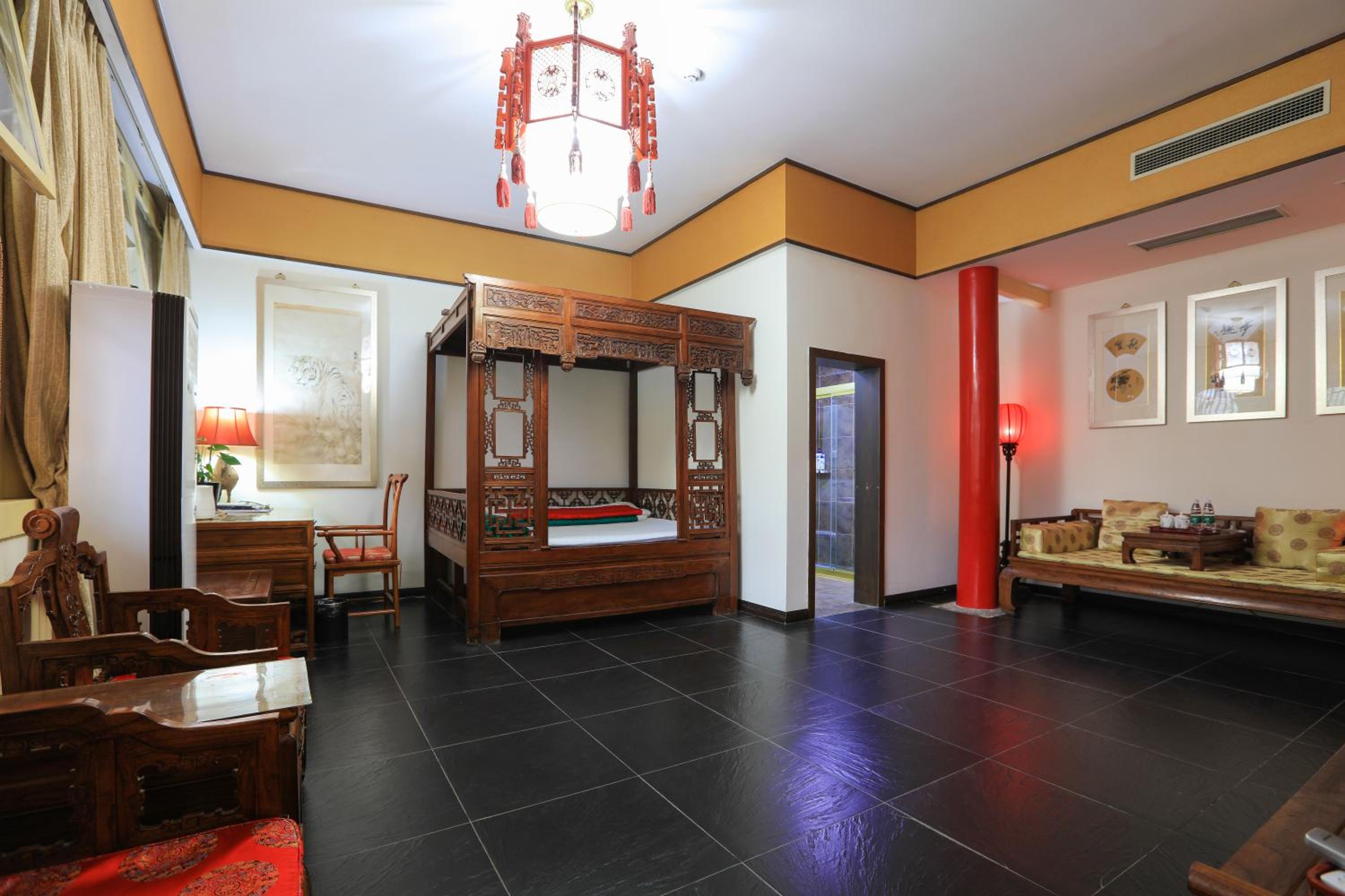 The hotel offers a blend of Chinese and Western-style suites, each elegantly decorated with wooden furnishings and classic Chinese decor. Guests can enjoy a courtyard view from their rooms, adding to the charm of the stay.