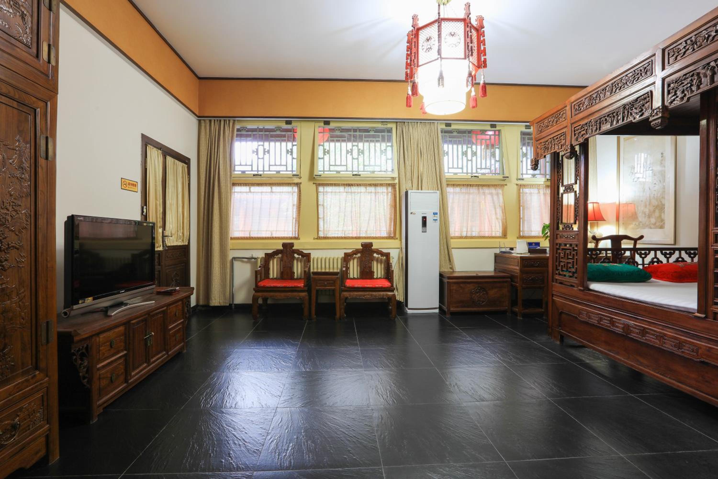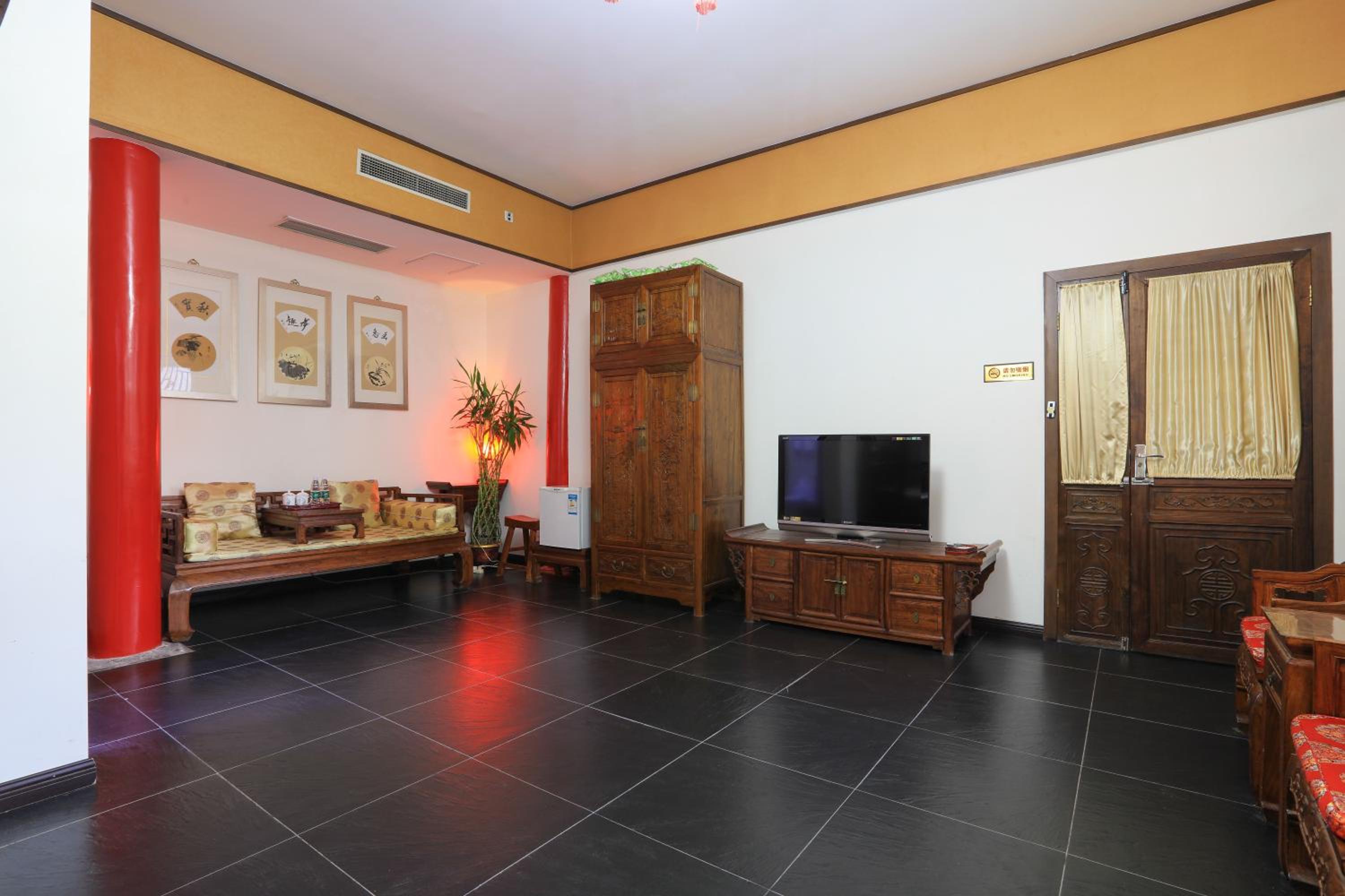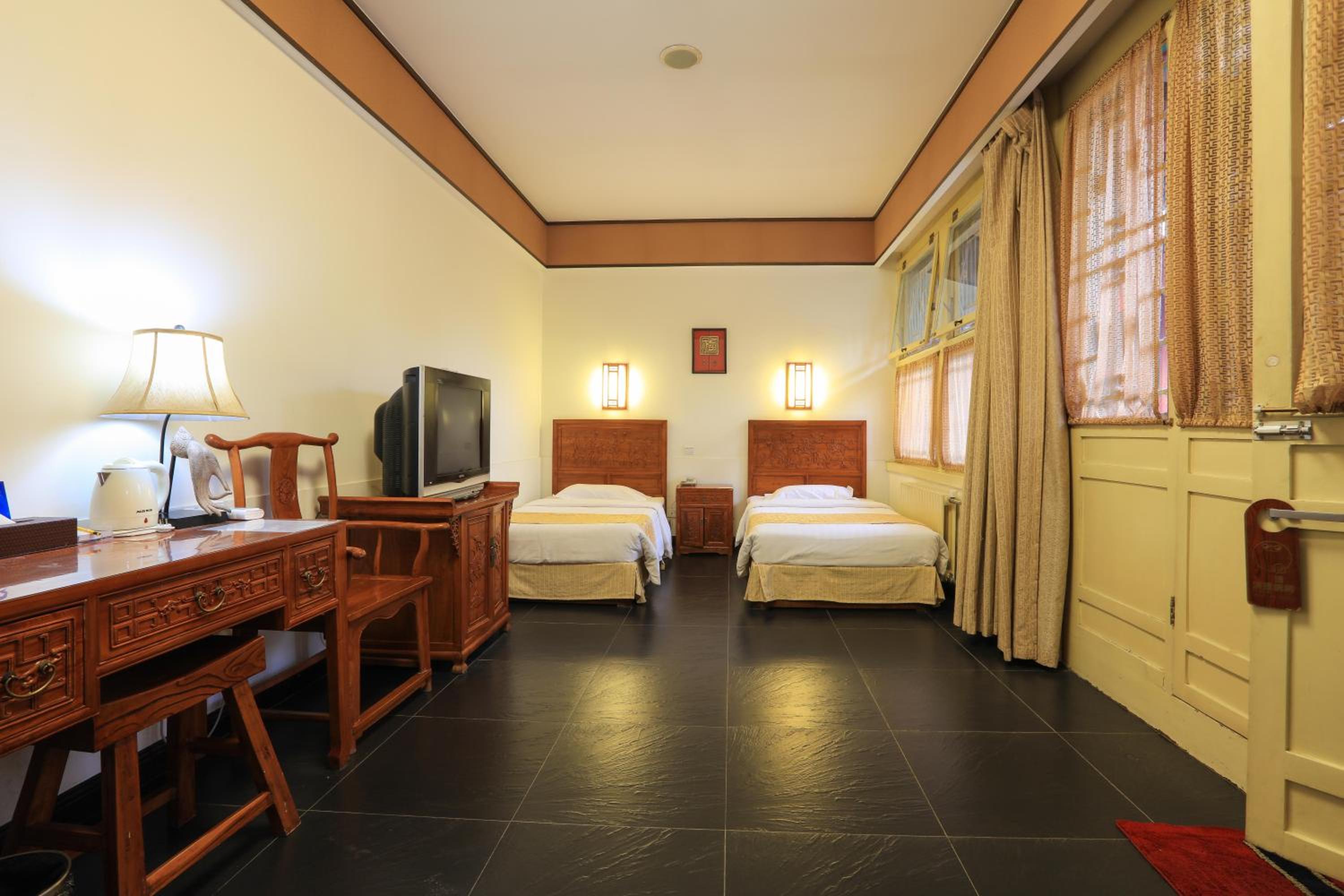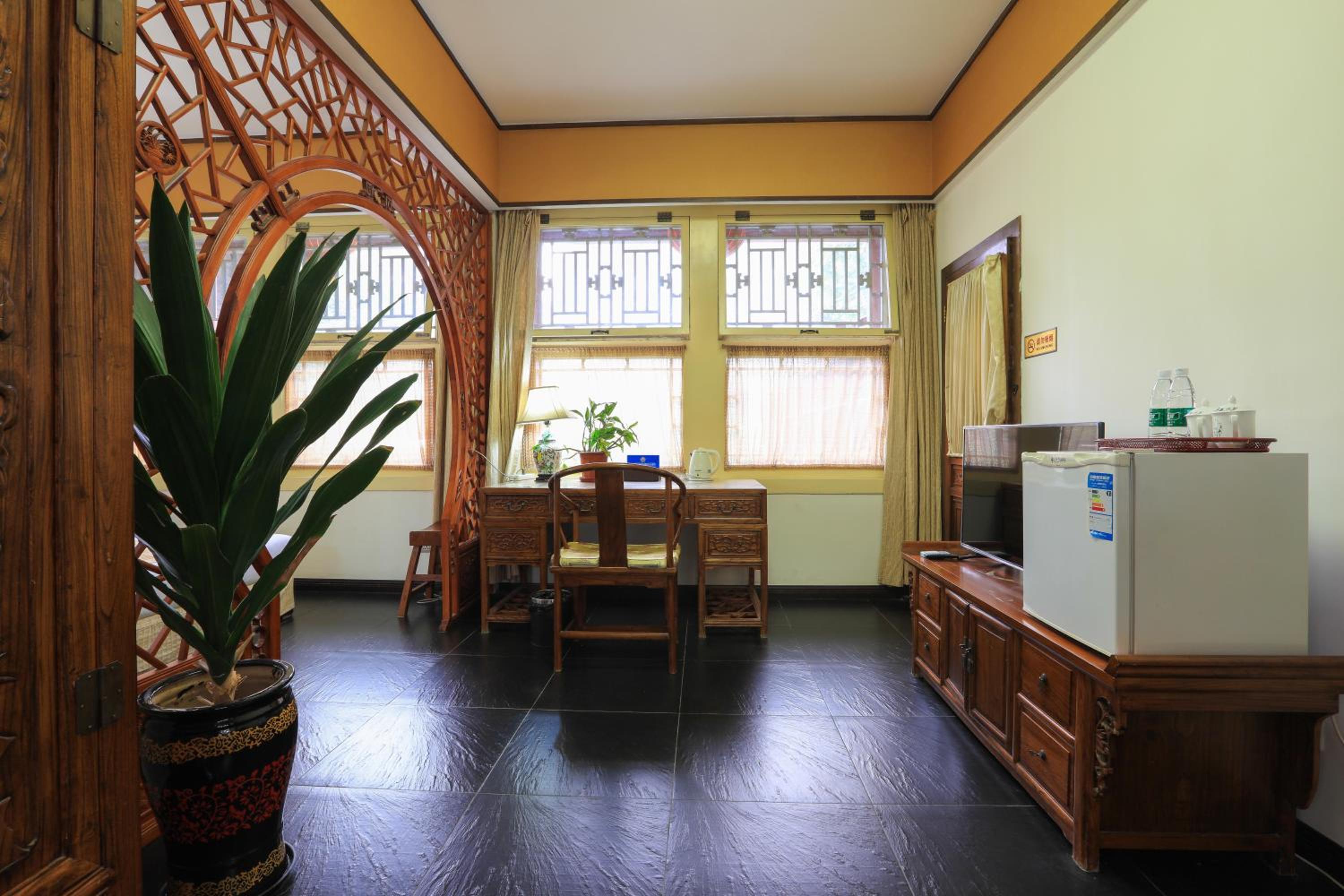 The hotel offers a blend of Chinese and Western-style suites, each elegantly decorated with wooden furnishings and classic Chinese decor. Guests can enjoy a courtyard view from their rooms, adding to the charm of the stay.