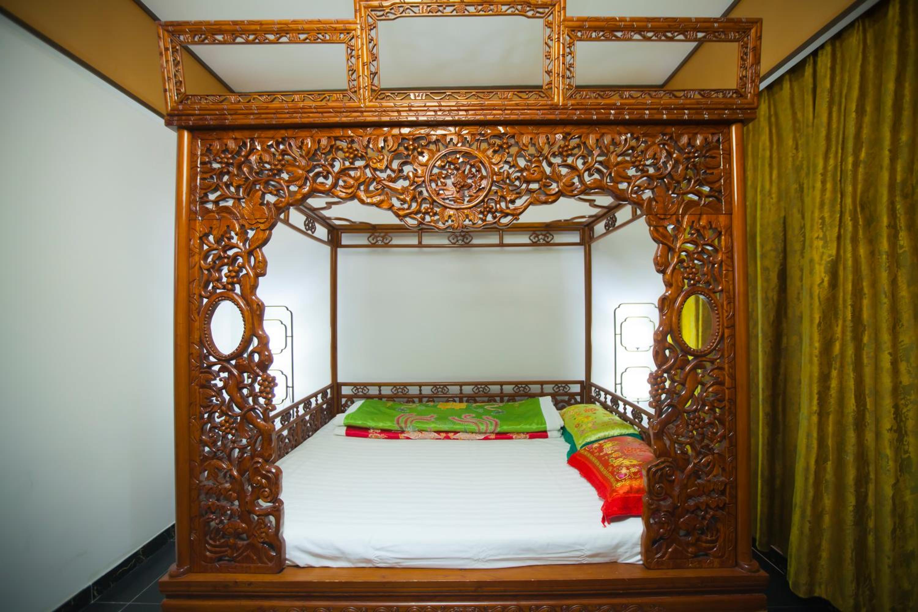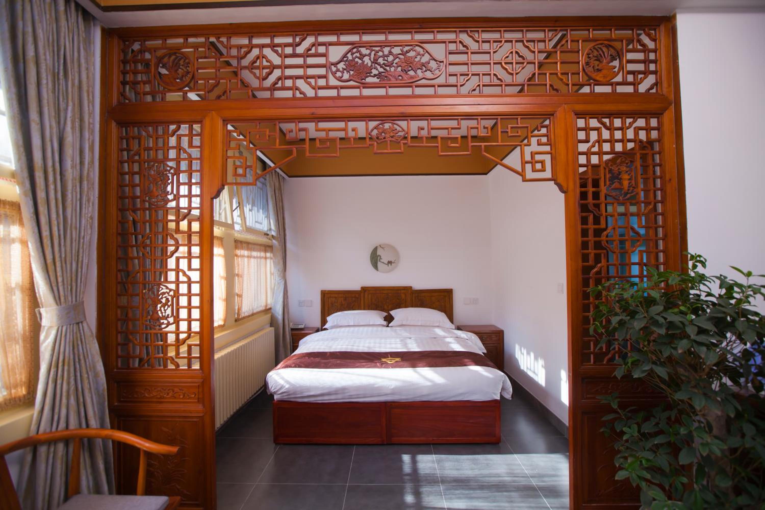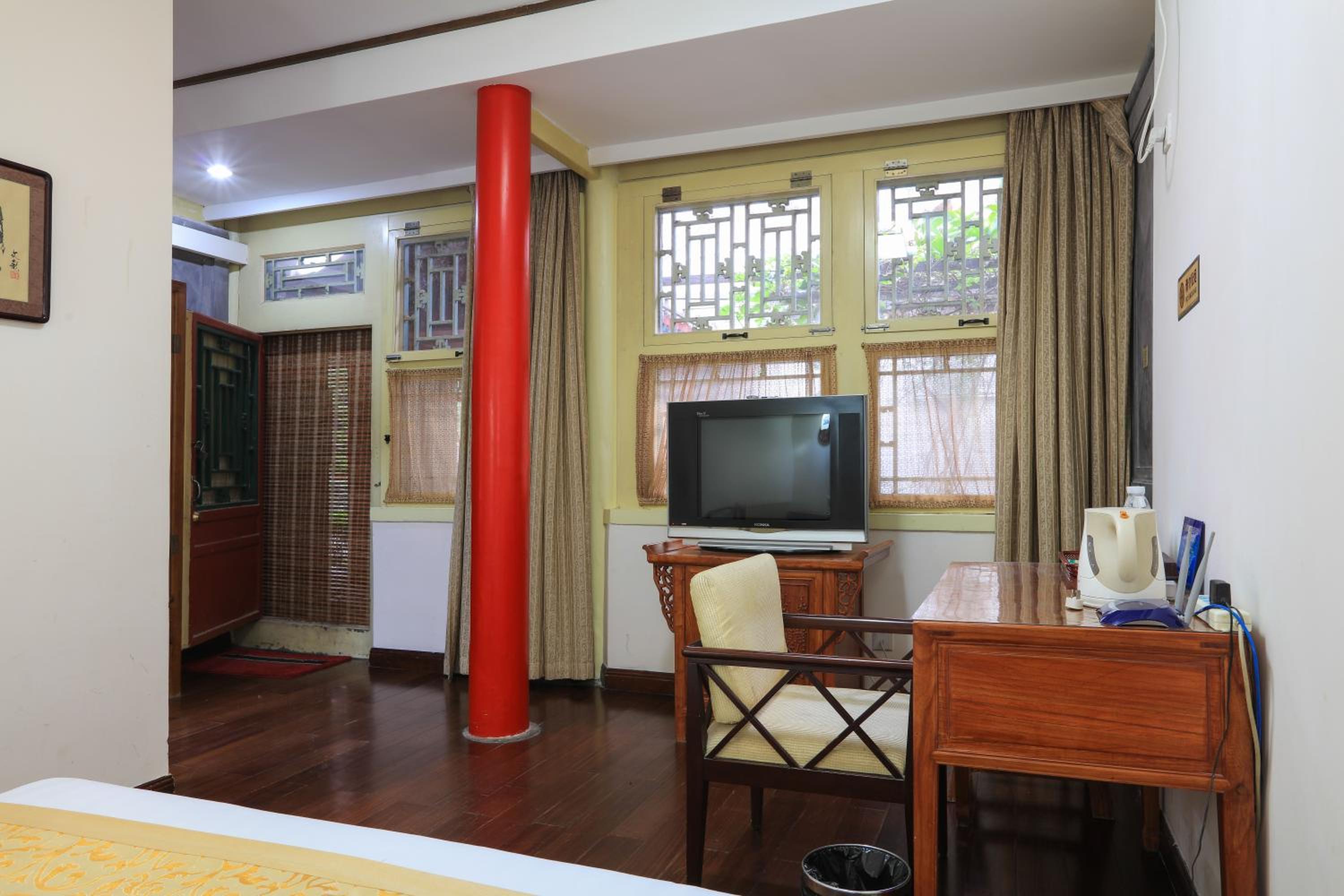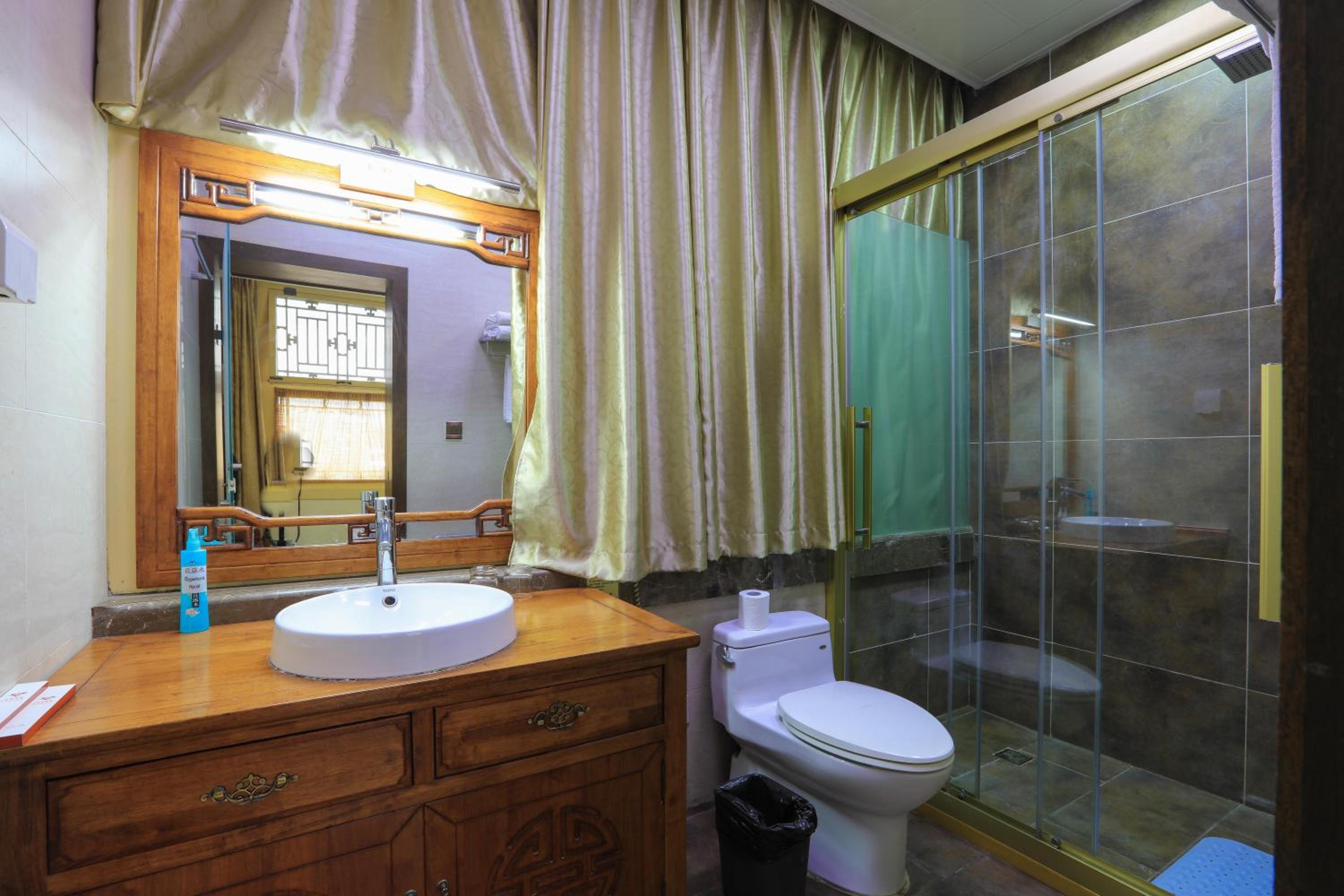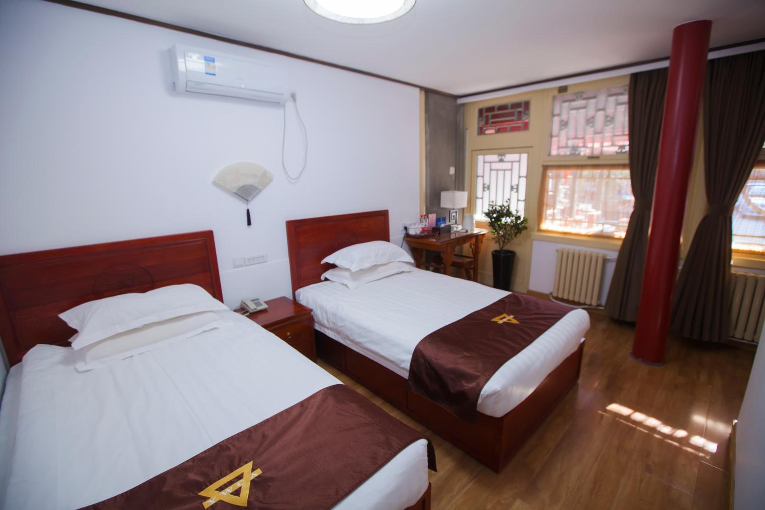 The hotel offers a blend of Chinese and Western-style suites, each elegantly decorated with wooden furnishings and classic Chinese decor. Guests can enjoy a courtyard view from their rooms, adding to the charm of the stay.