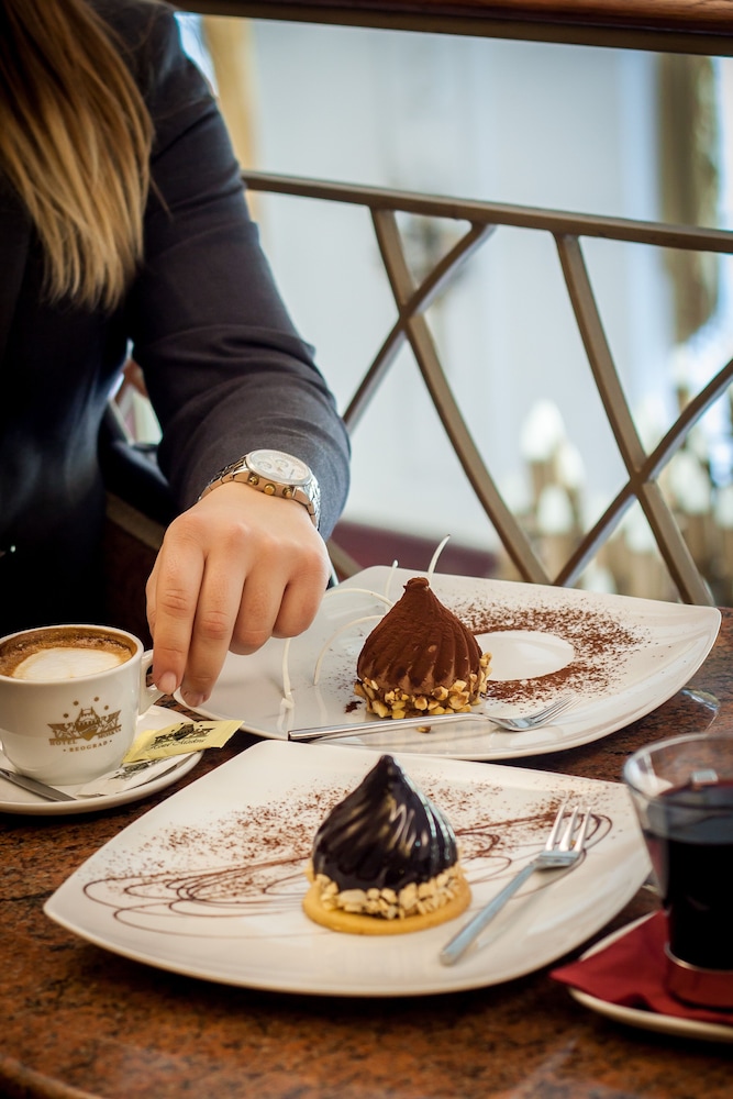Doskonale położony hotel, utrzymany w bardzo tradycyjnym stylu. Sztukaterie, tapety, dywany, żyrandole jak sprzed wieku. Pianista umilający dobre śniadanie.
