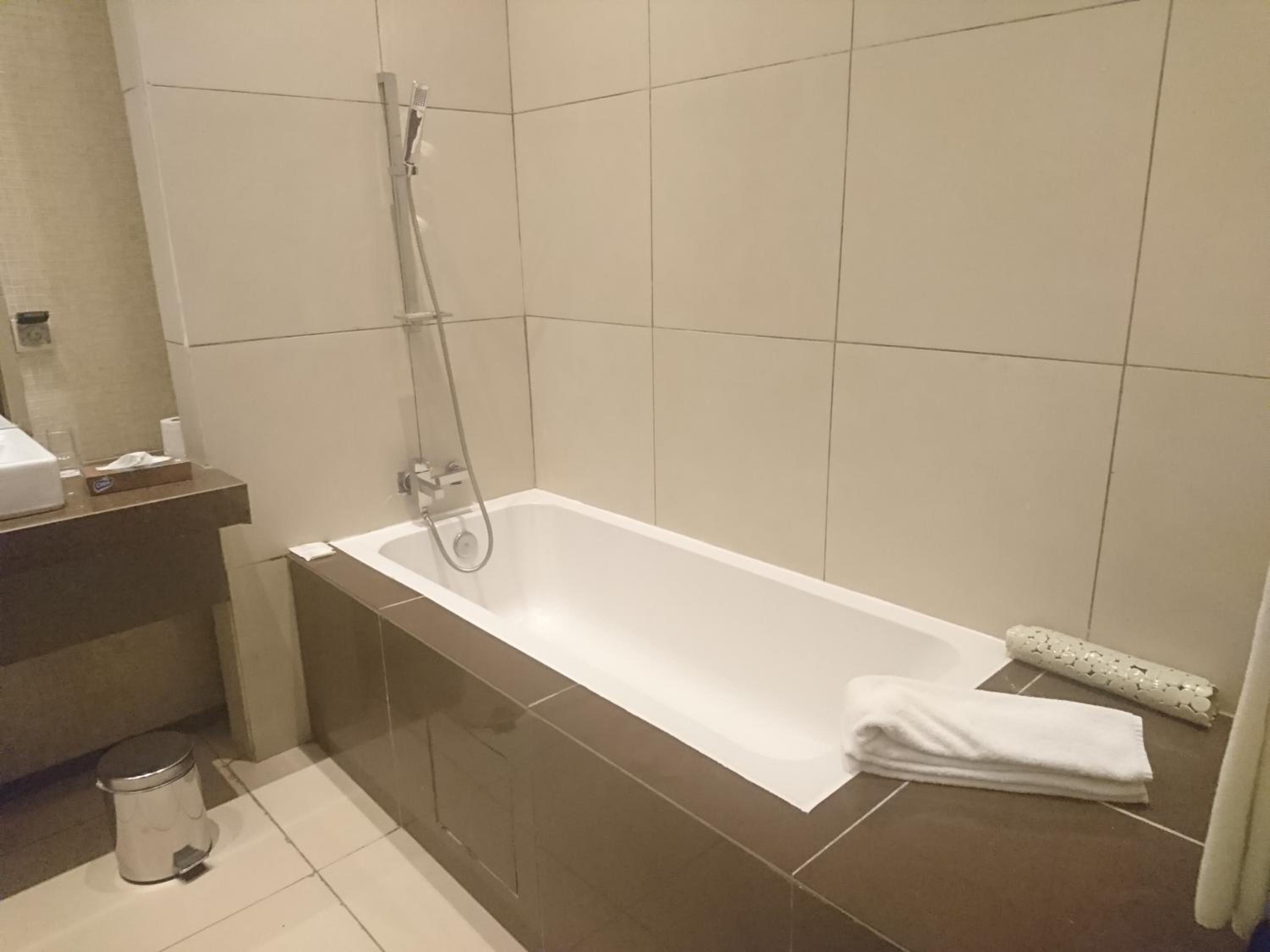 Fuite dans la douche. Prix élevé par rapport à d'autres suites du même ordre dans d'autres pays.