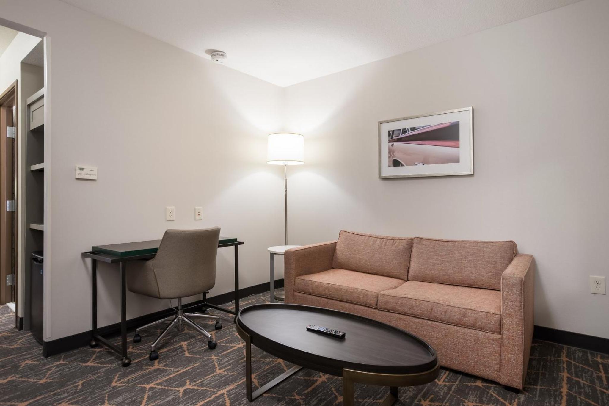 The hotel, staff, and room were all fine. The only downside is having to drive around a Meijer parking lot and onto a road that had had been torn up to get to the hotel. That’s not on the hotel. I really feel the hotel was very good, although somewhat dated. Everything worked well and the staff was excellent.