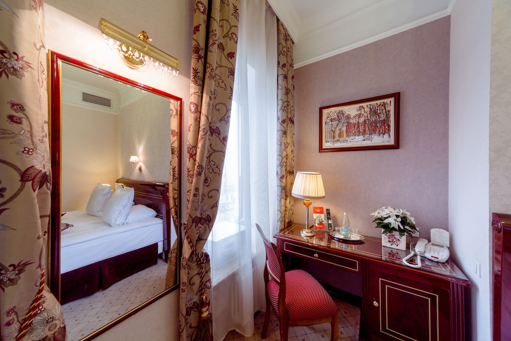 Hotel was in an excellent location with all the sights of St Petersburg within walking distance. Our room was a little small but comfortable and clean.