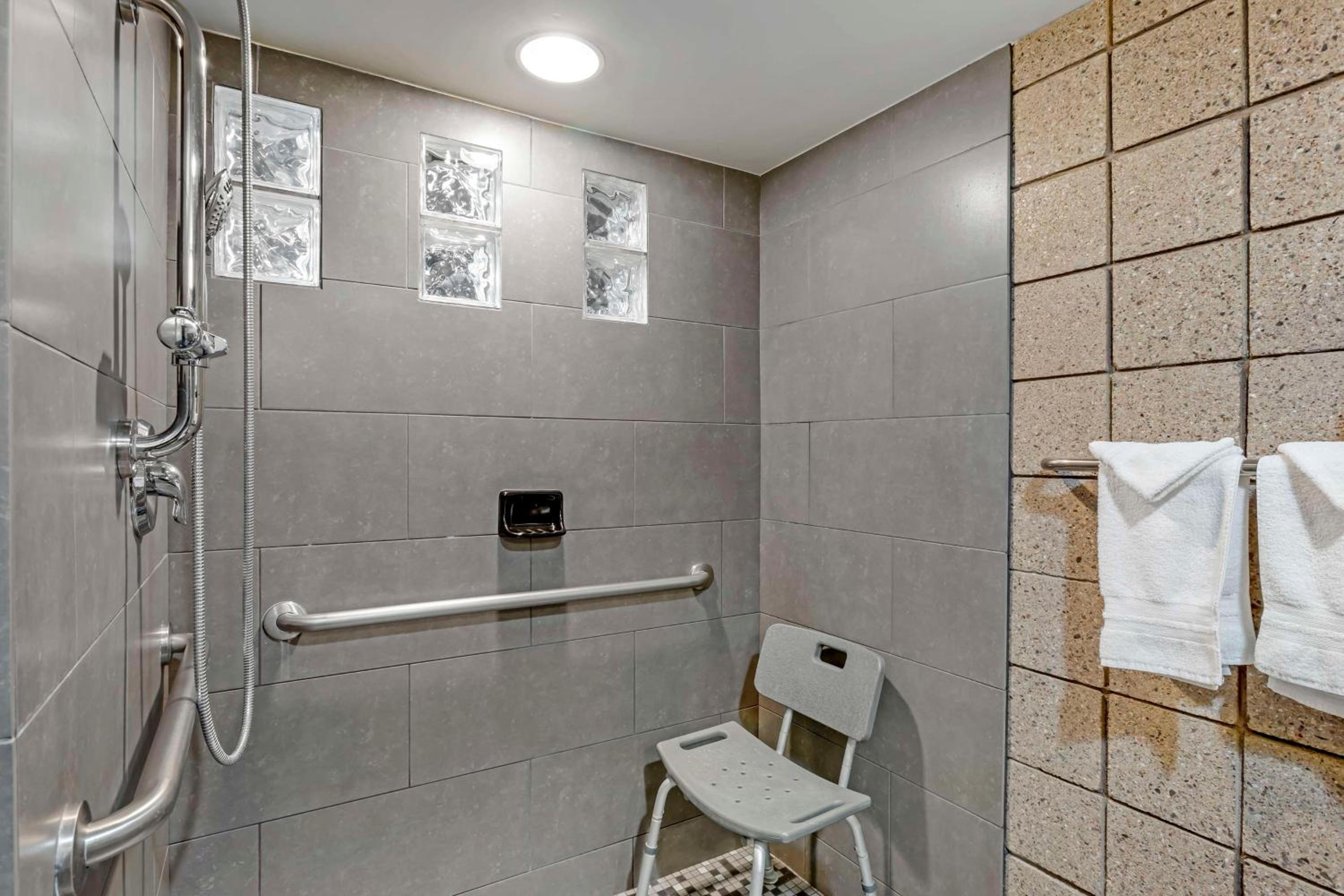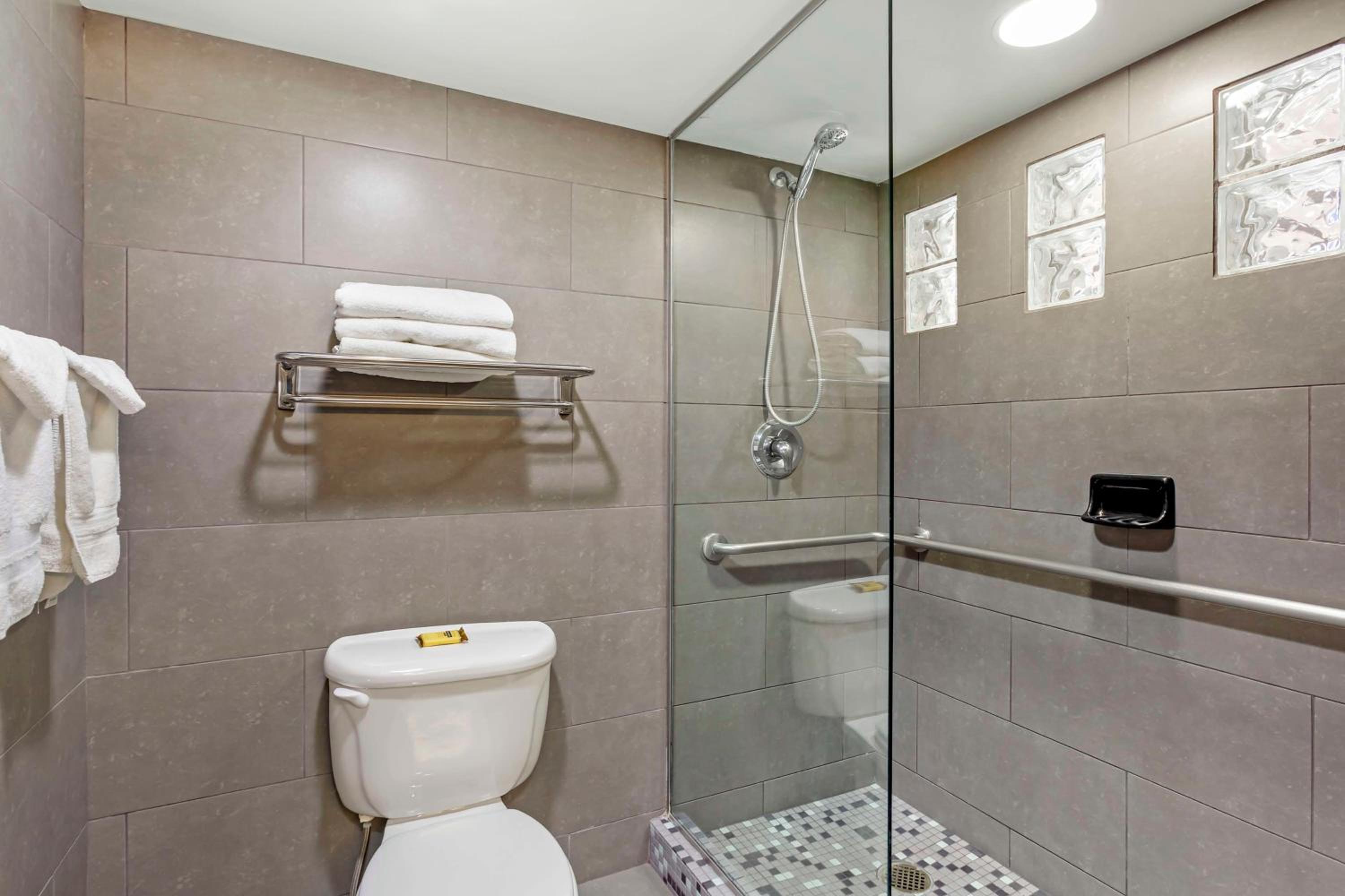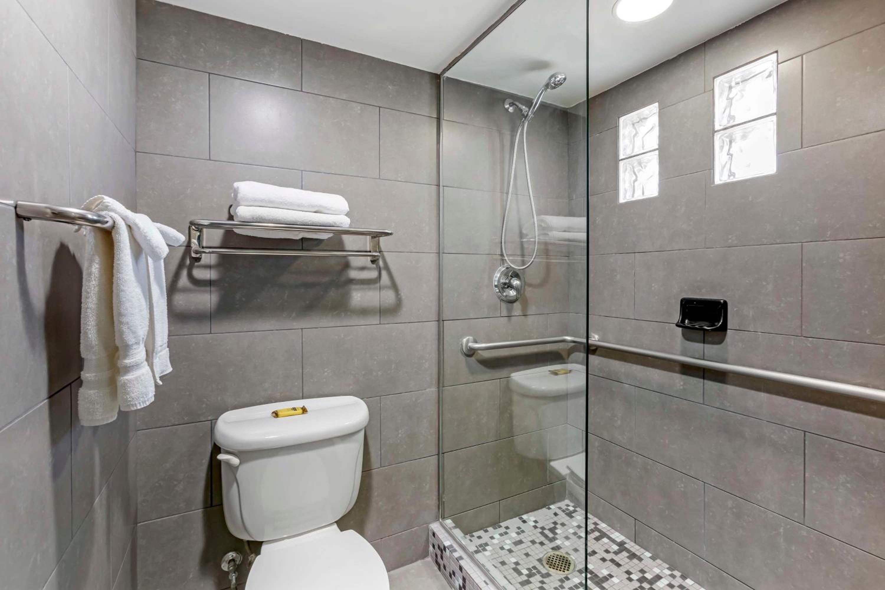 Breakfast lots of options Room- ADA room. Hit my head 3 times on the upper/extended towel bar above toilet.
