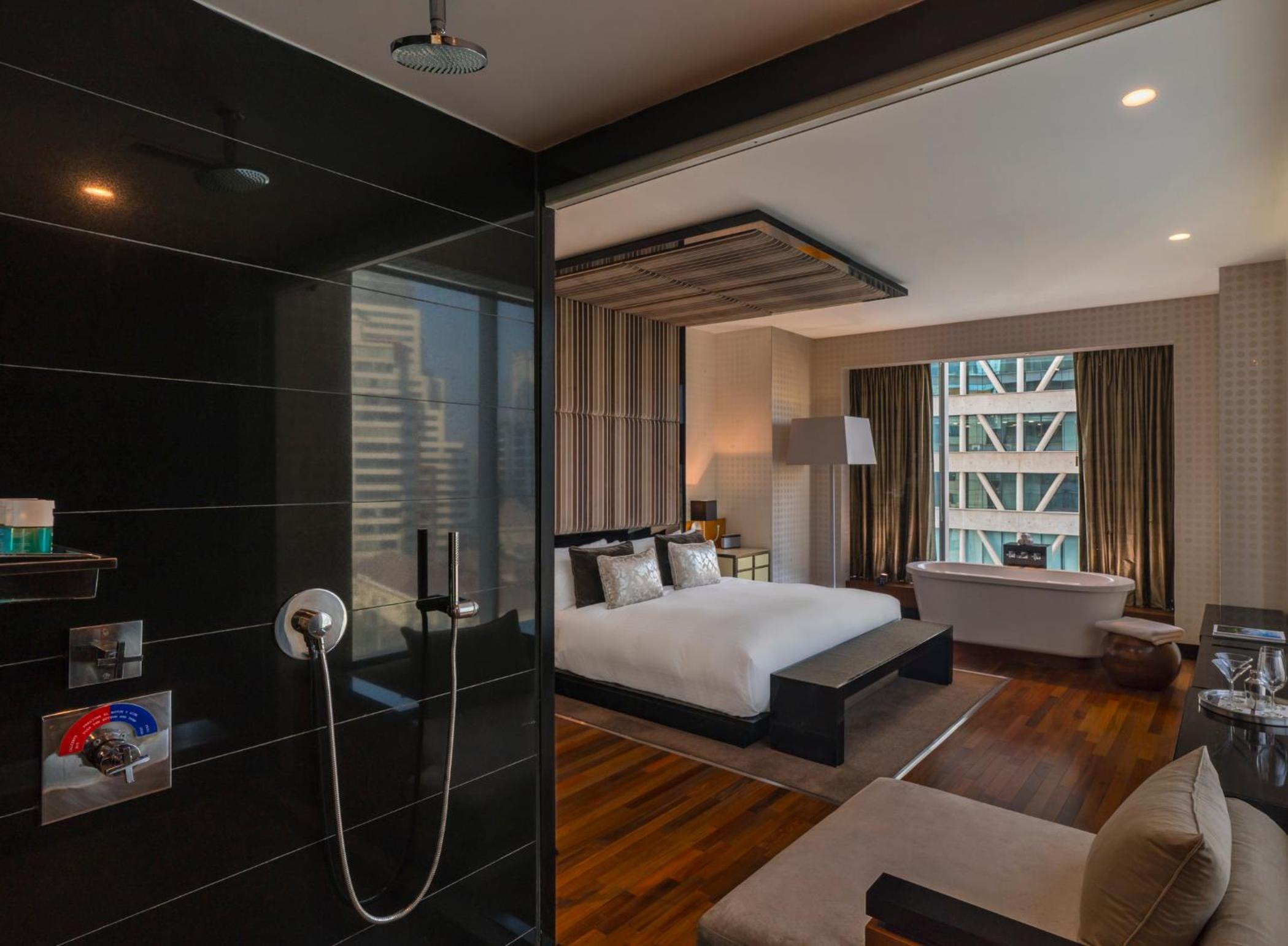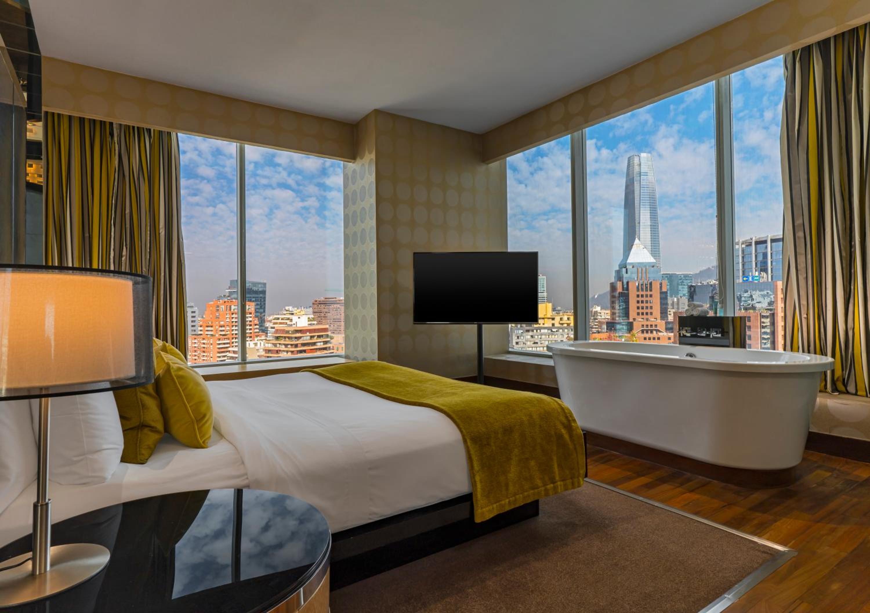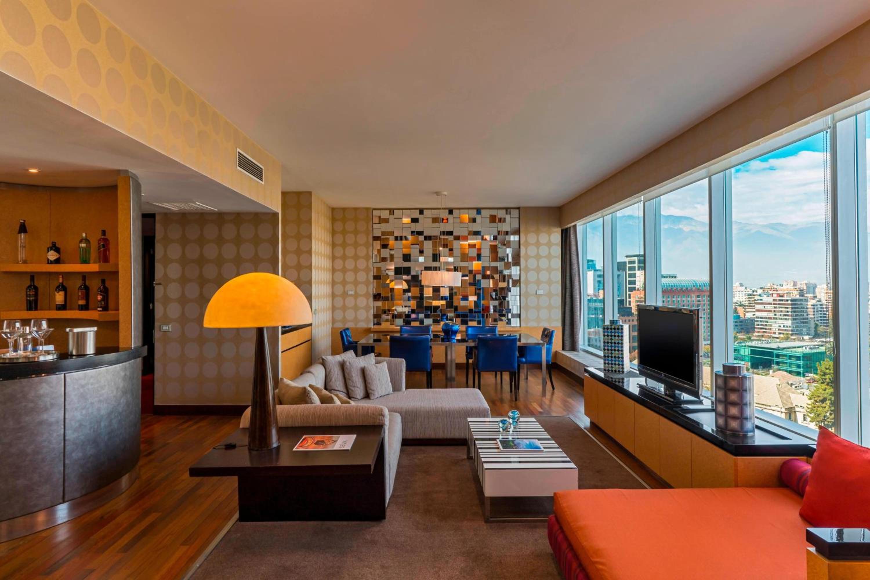 Indulge in spacious, luxury guest rooms with stunning views of the Andes Mountains, savor exquisite dining at award-winning restaurants, unwind at the rooftop bar with panoramic mountain views, and rejuvenate at the high-end gym - all at W Santiago, your ultimate destination.