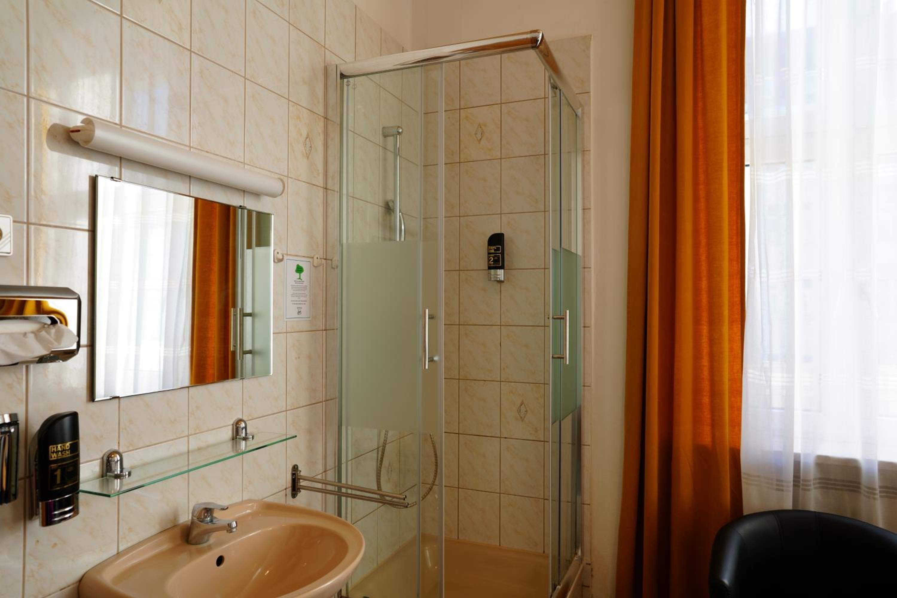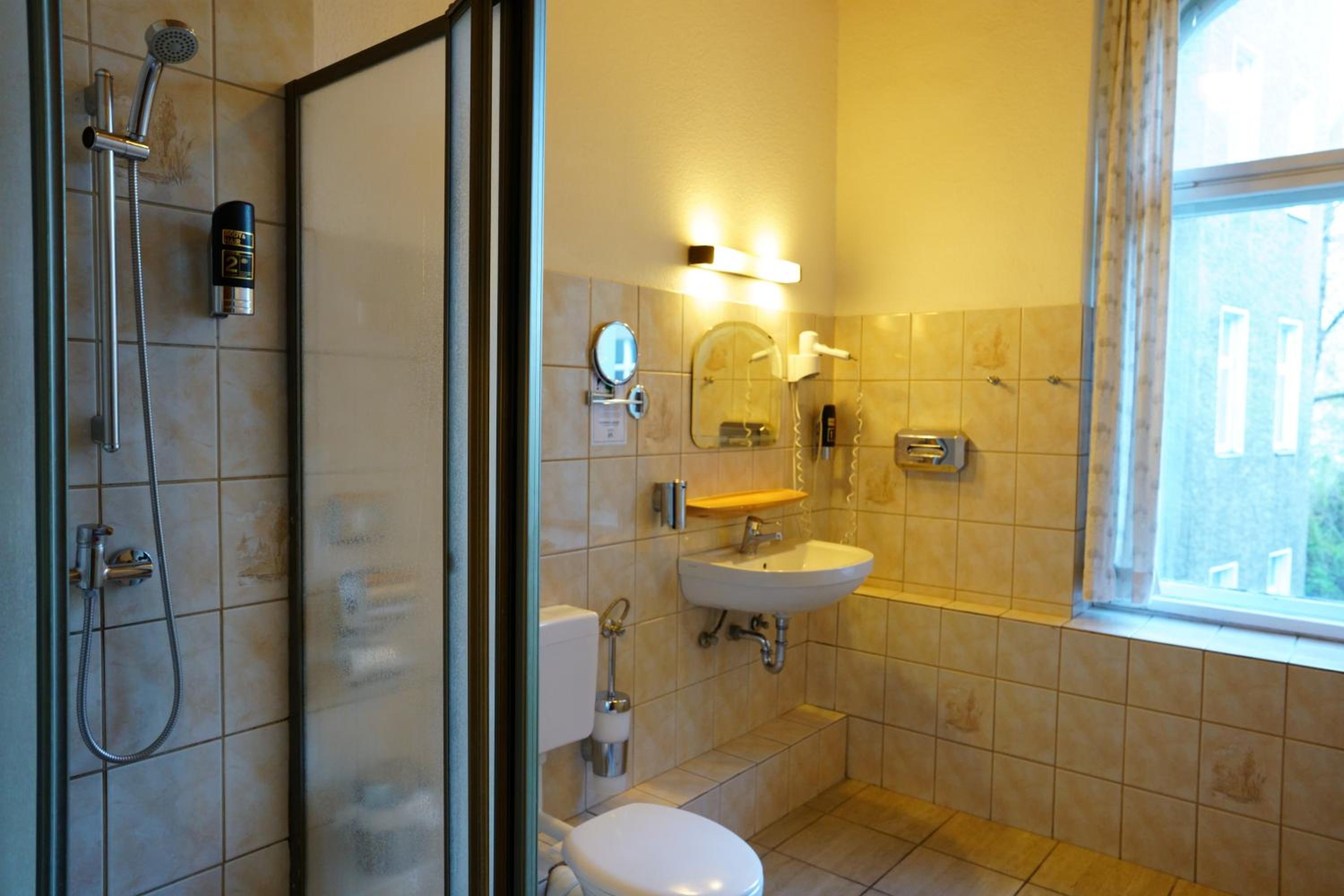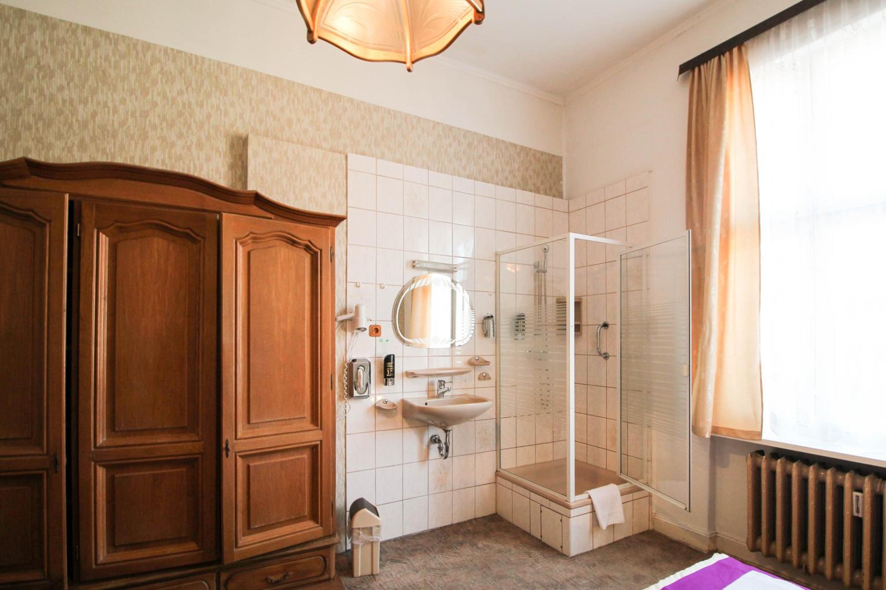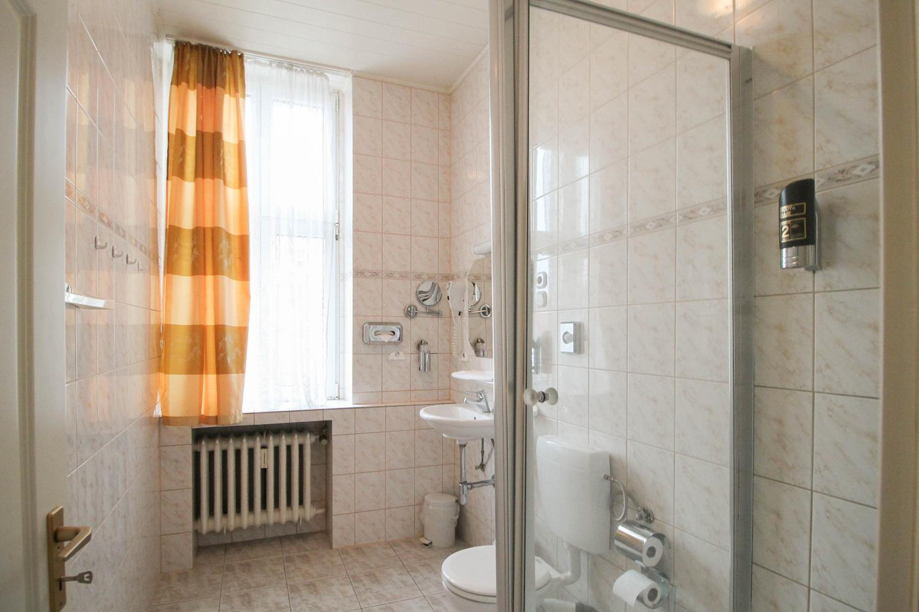 geräumiges Zimmer mit Dusche und WC, gute Matratze, kleiner und sehr leiser Kühlschrank, Haartrockner, problemloser check-in und check-out, gutes Frühstück, nostalgischer Aufzug, Parkettfußboden, hatte den Charme eines alten Hauses, top Lage und Preis-Leistung!