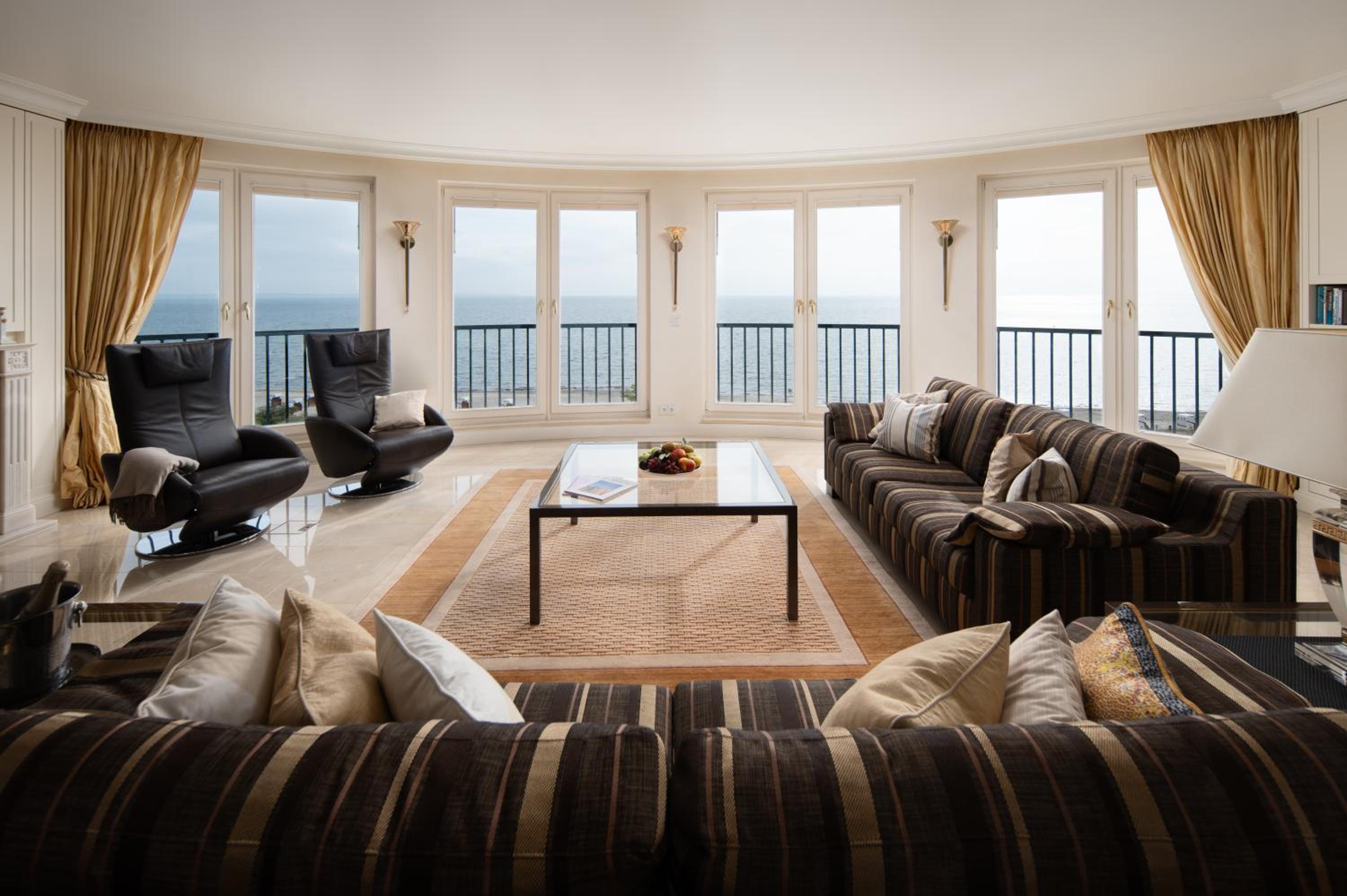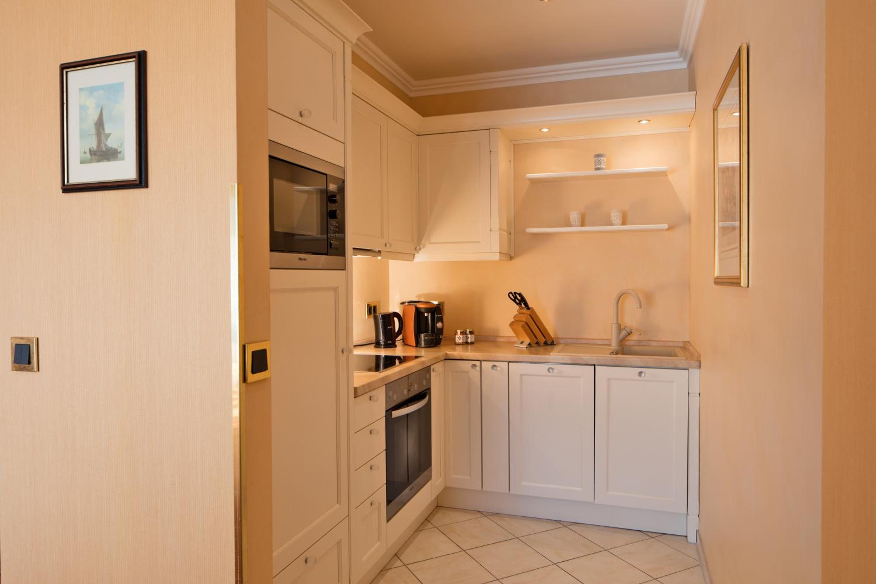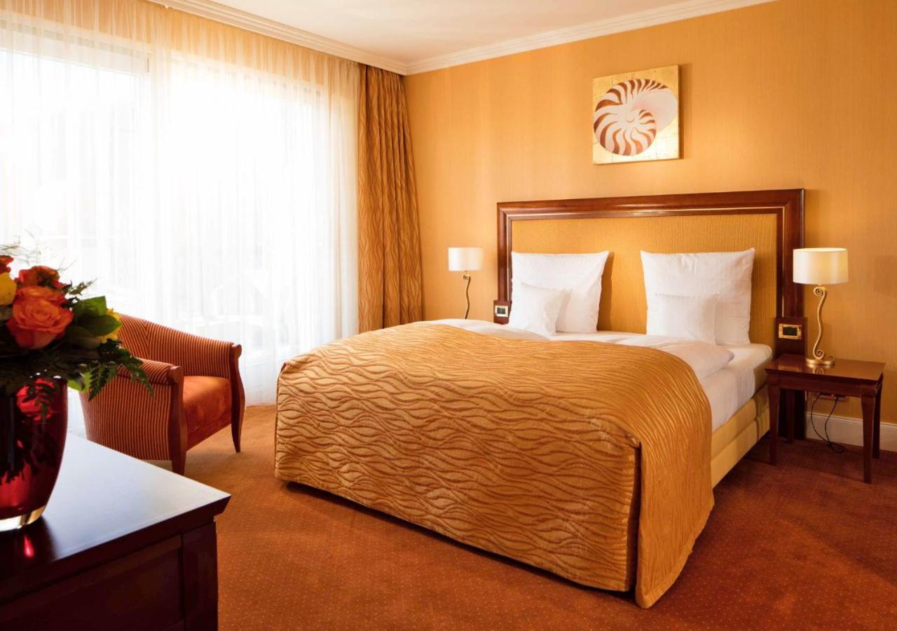 Indulge in exquisite French and Mediterranean cuisine at the DiVa restaurant, unwind in the stylish CaVa’s Bar, or savor a cigar in the Davidoff Smoker’s Lounge. The hotel also boasts a glass corridor connecting guests to the Ostsee-Therme Thermal Spa for ultimate relaxation.