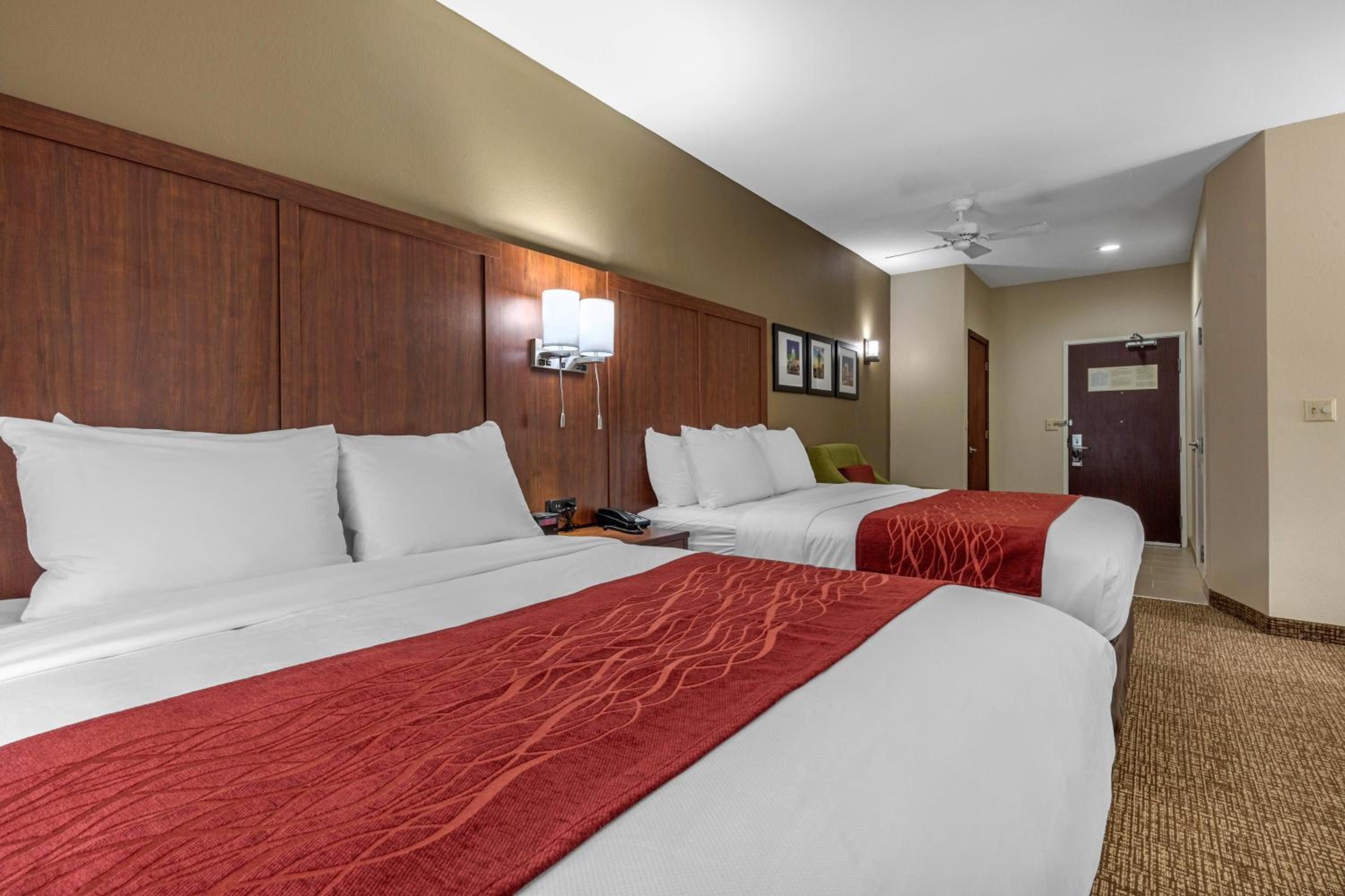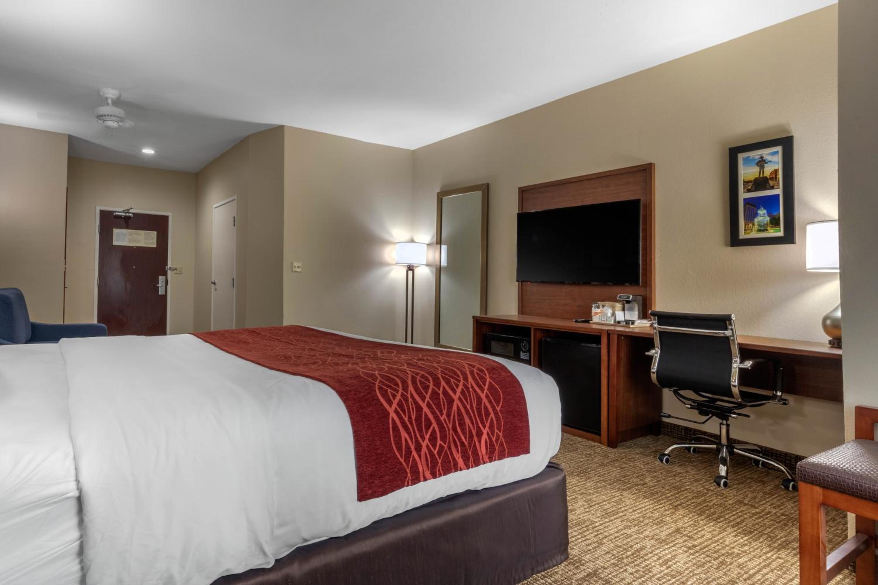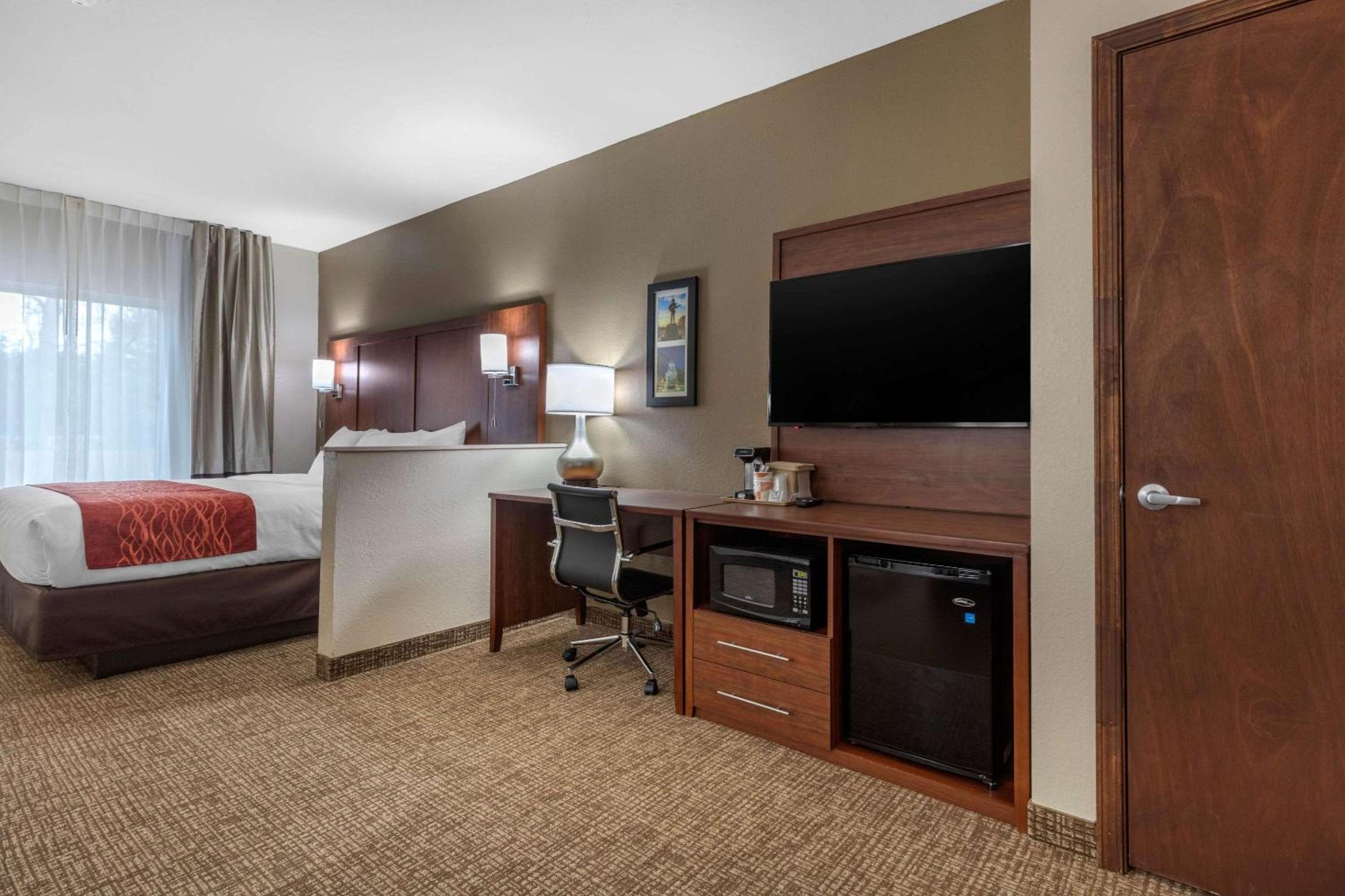 Each room at Comfort Inn & Suites Towneplace is thoughtfully equipped with a microwave, small refrigerator, sitting area, work desk, and a 50-inch flat-screen TV with cable and HBO®. Enjoy the convenience and comfort of these modern amenities during your stay.