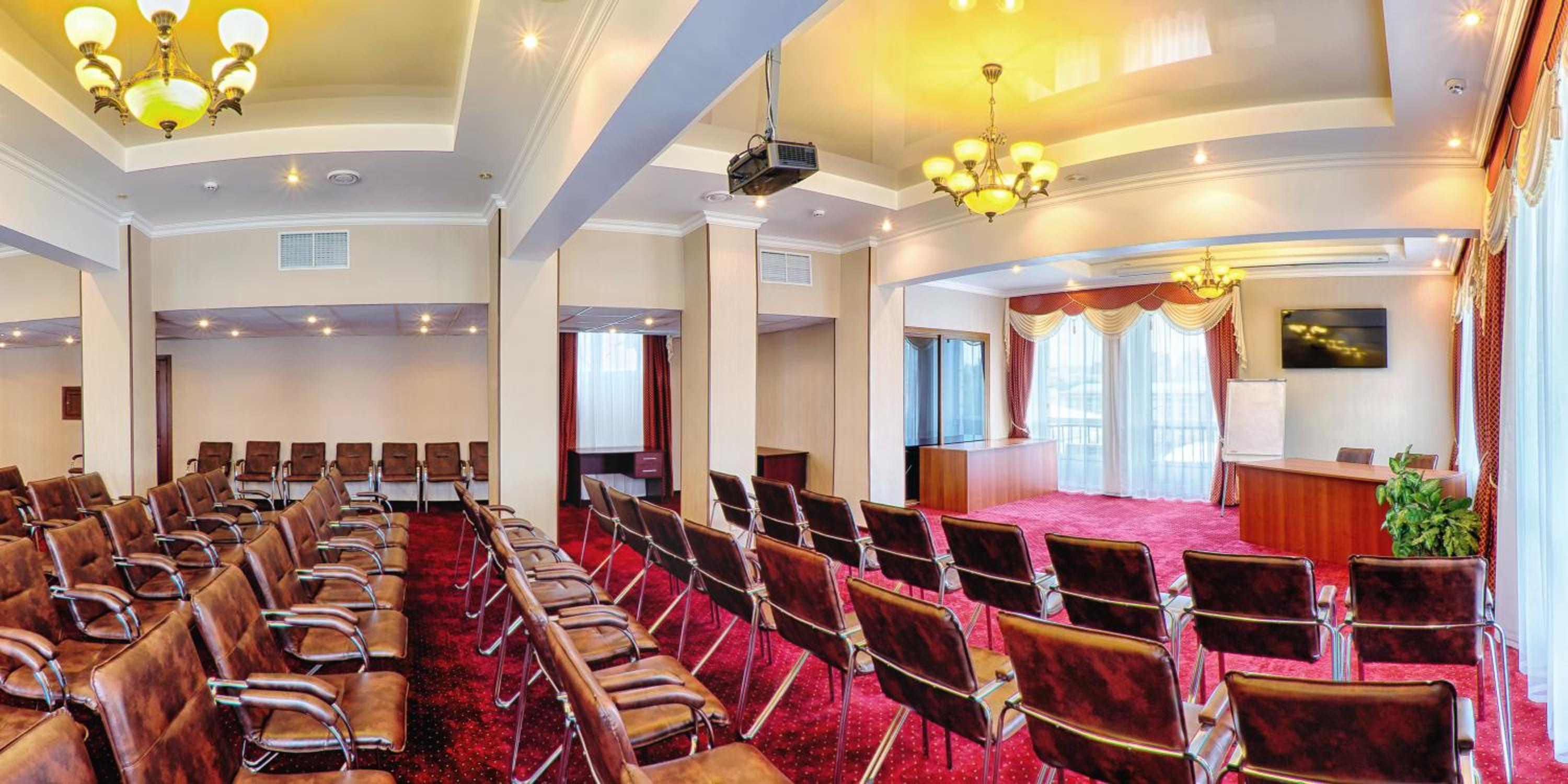 Indulge in a large breakfast buffet to kick start your day or savor Ukrainian and European cuisine for lunch and dinner. With 24-hour room service available, you can satisfy your cravings anytime. Don't miss the chance to enjoy live music while dining at our restaurant.