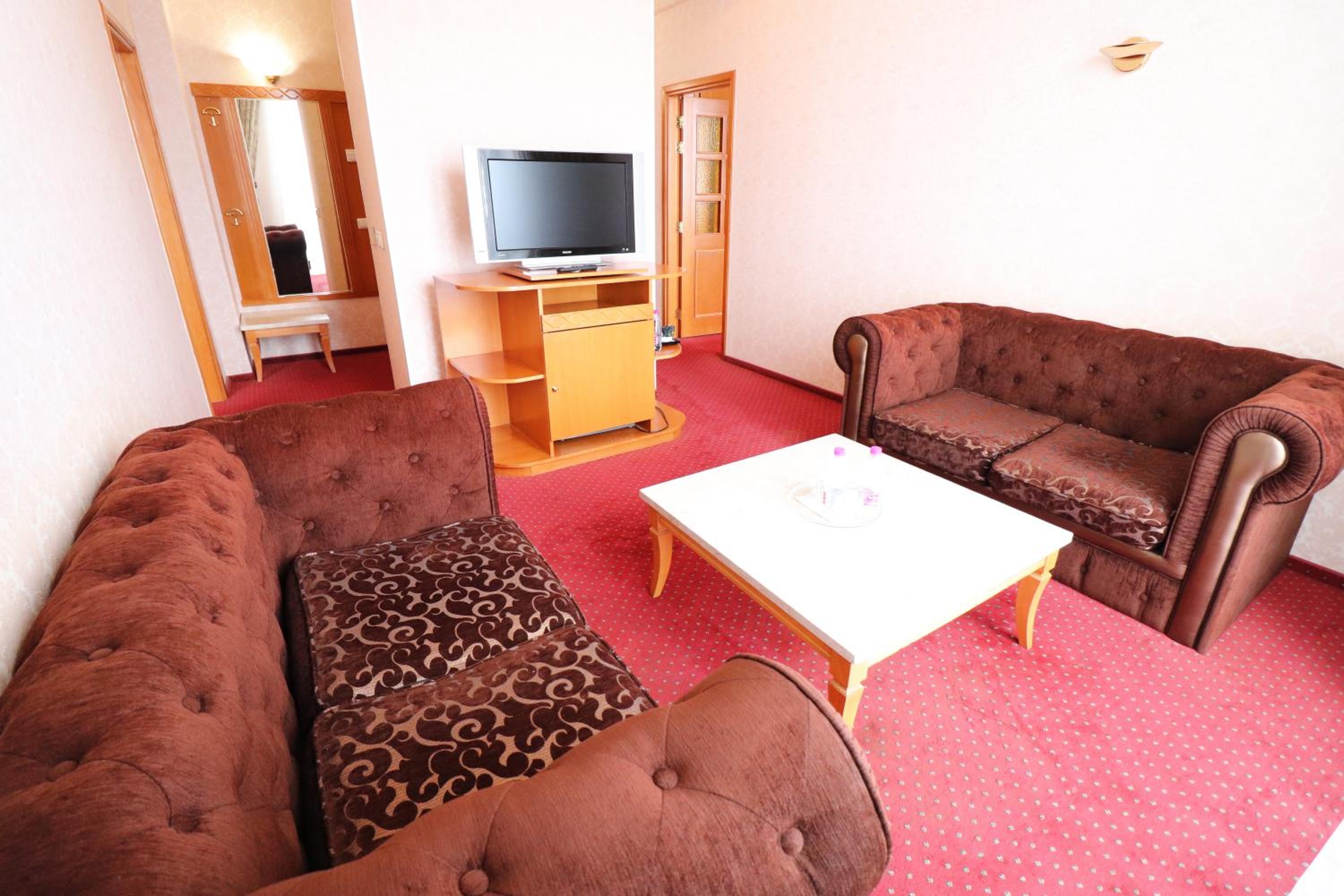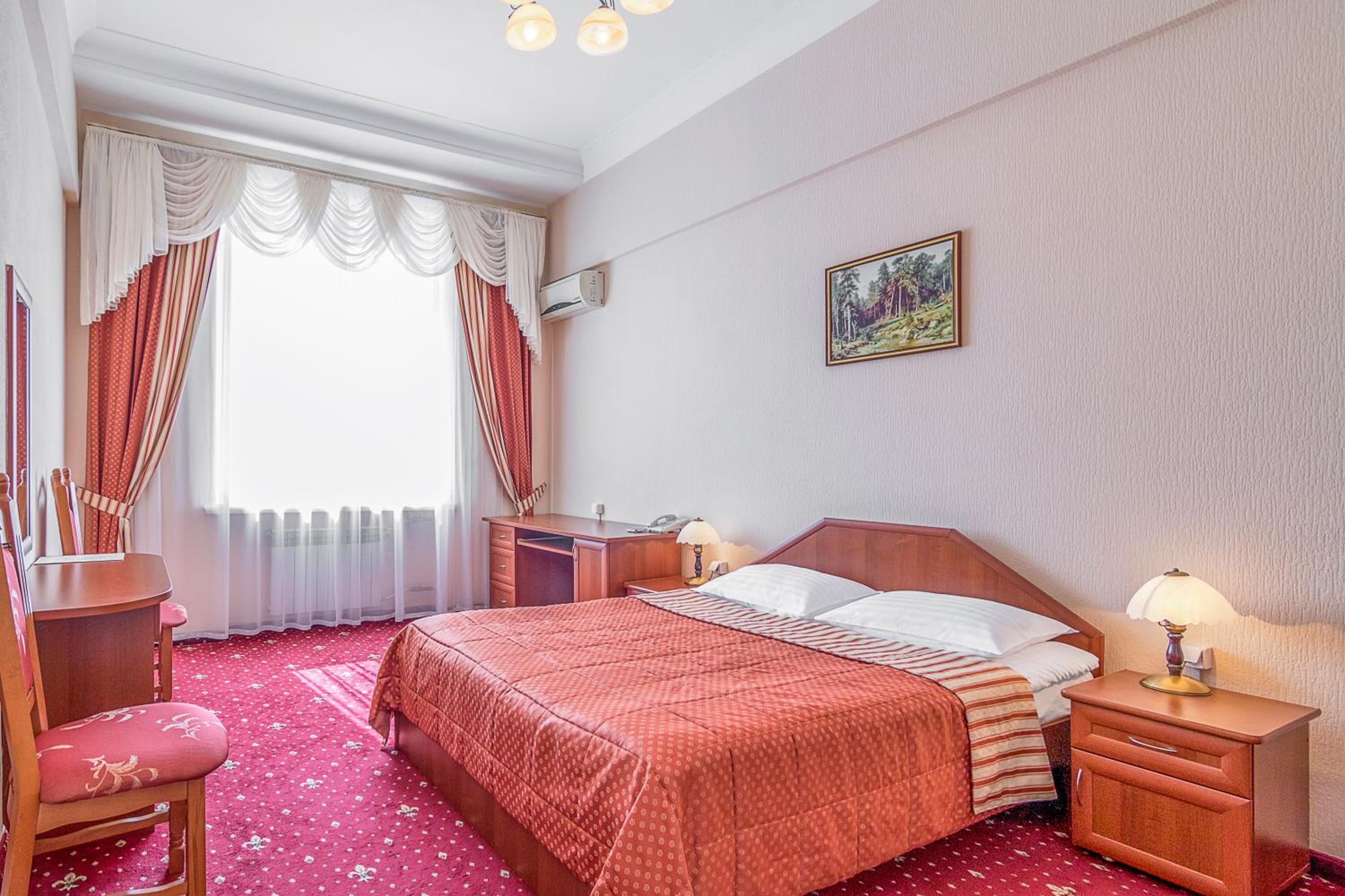 Experience luxury and comfort in our air-conditioned rooms and suites adorned with elegant décor, offering stunning views of Kreschatyk Street and the surrounding area. Enjoy modern amenities such as satellite TV, a refrigerator, and complimentary toiletries in your bathroom.