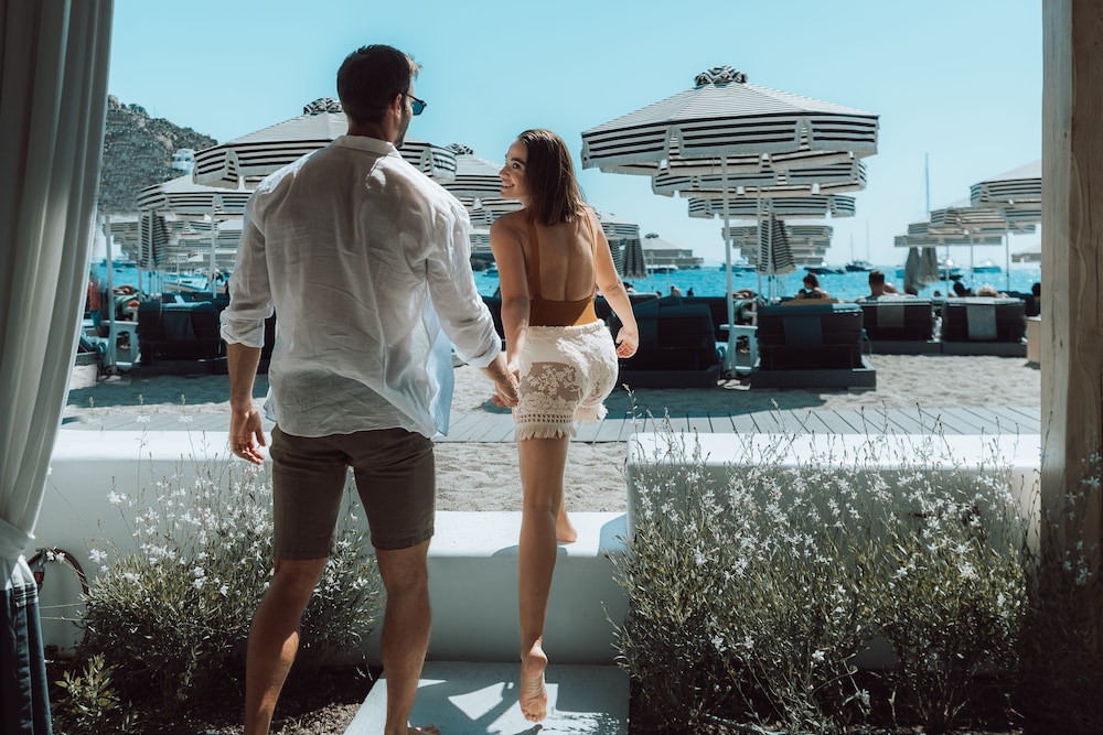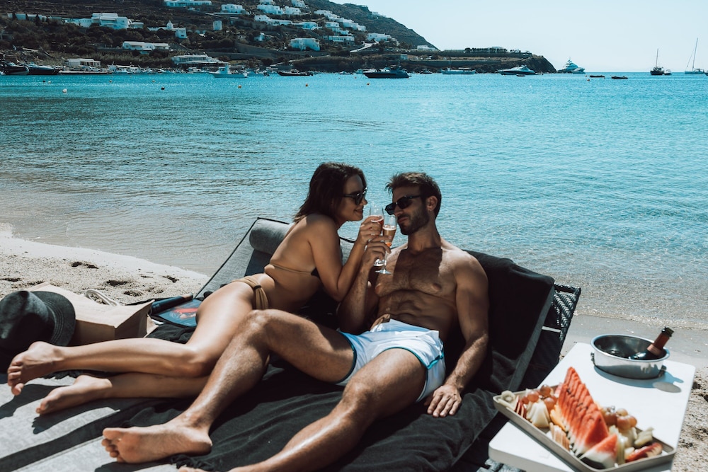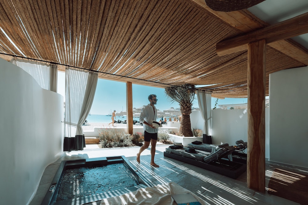 To immerse yourself in luxury and relaxation by the beach, book your stay at Mykonos Ammos Hotel today.