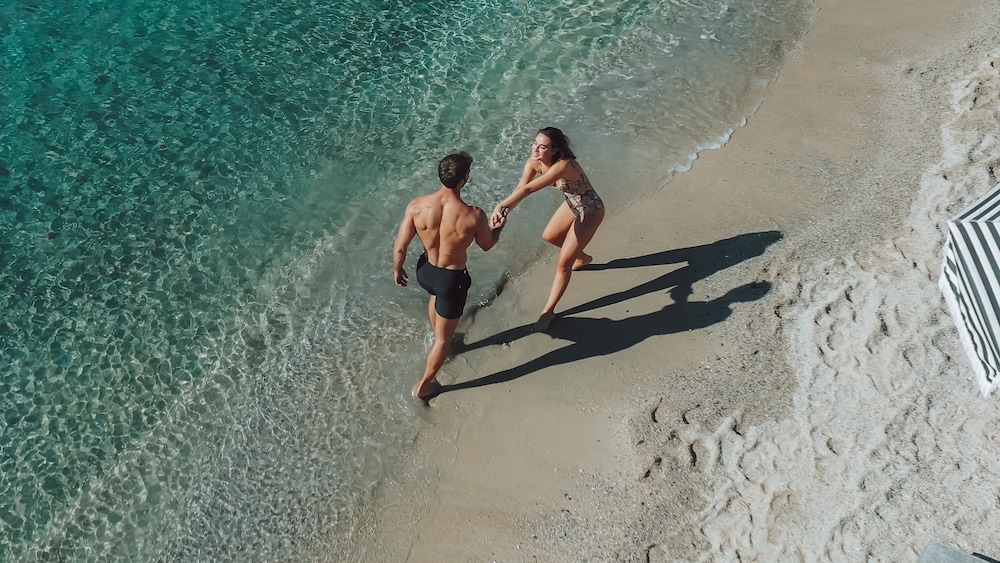 We had such a great stay at the Mykonos Ammos hotel. The staff was SO FRIENDLY, SO HELPFUL, and SUCH A JOY. Complimentary breakfast each morning was delicious, coffee was amazing, the beach chairs and service on the beach was impeccable and we enjoyed every minute of the stay. The hotel was beautiful, the rooms were great. We stayed in the room with hot tub, it was great, would recommend staying there! Overall, 10/10 experience, would come back again.