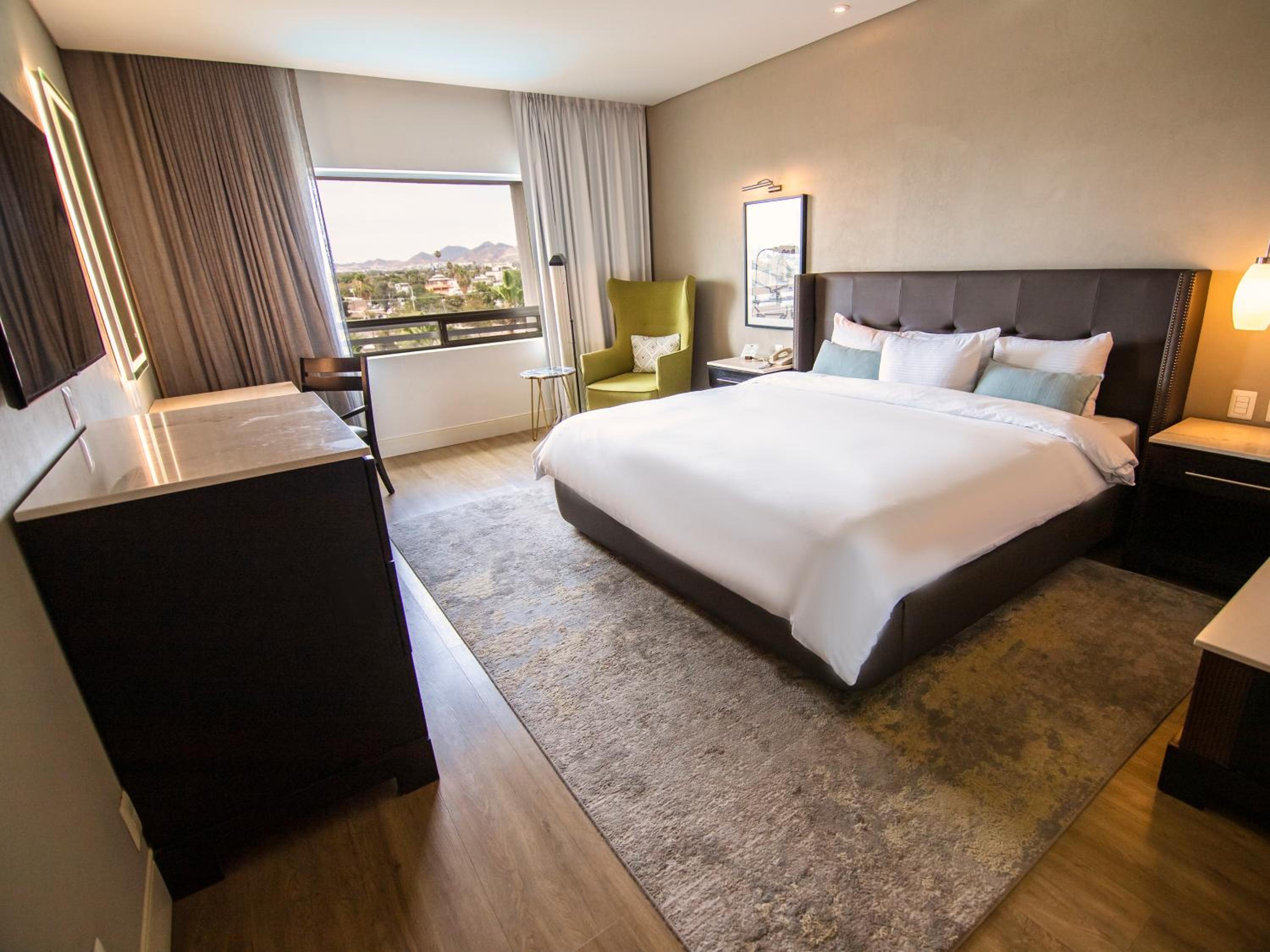 Hotel Lucerna Hermosillo offers spacious rooms with modern décor and top-notch amenities including wall-mounted LCD TVs and iPod docking stations. Enjoy stunning views from every room.