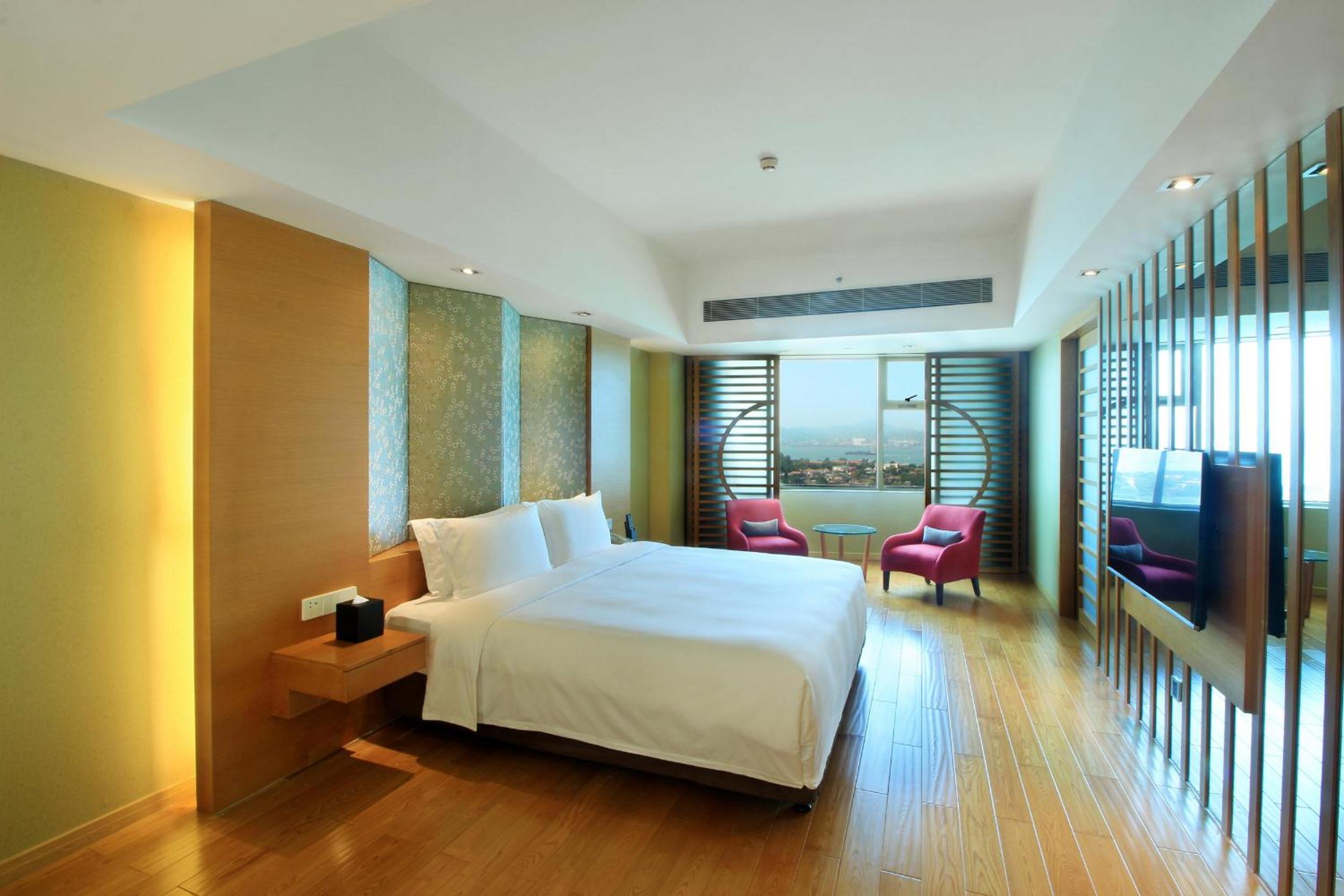 我們的房間大型落地窗有完美的景觀,面對鼓浪嶼,地點近鬧區,十分方便
