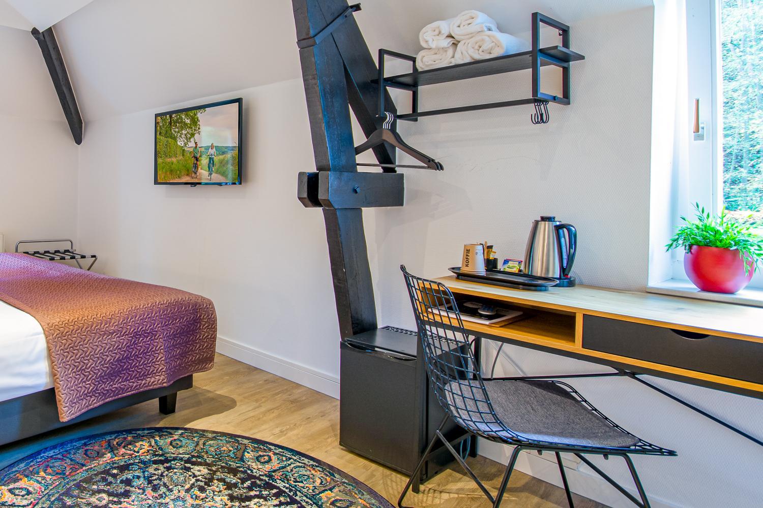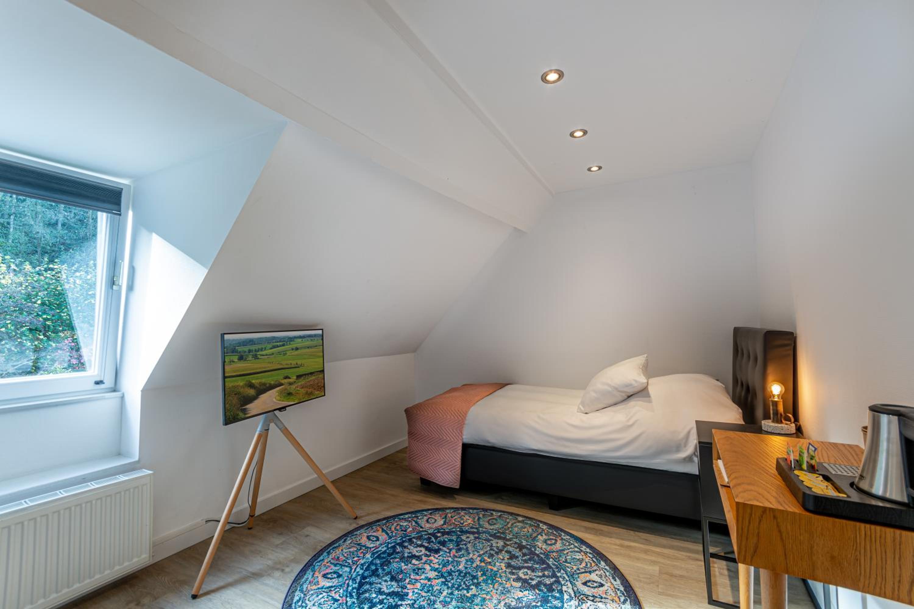 Prima kamer, fijn om de vogeltjes te horen fluiten. Rustige ligging en de kamer was vrij ruim. Verder vrij basic maar prima.