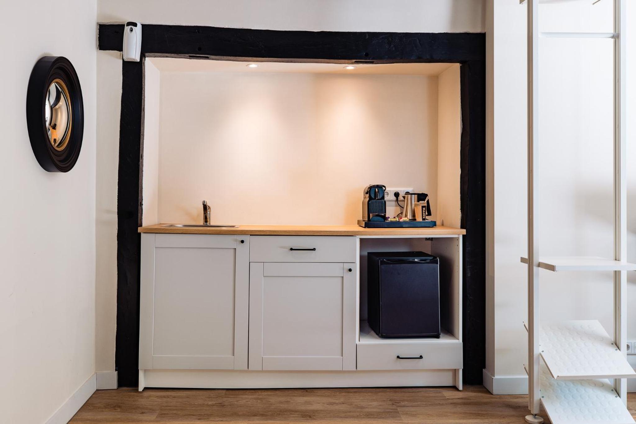 We hadden thee en koffie op de kamer en er stond een kleine koelkast waar we ons water voor de volgende dag in konden koelen.