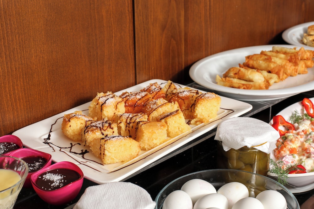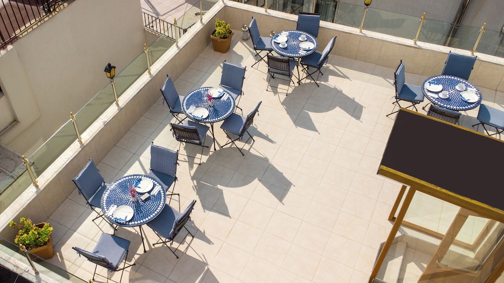 Take in breathtaking views from our rooftop terrace or enjoy a leisurely coffee at our chic café. Our 24-hour room service ensures that your cravings are met at any time, making your stay completely hassle-free.