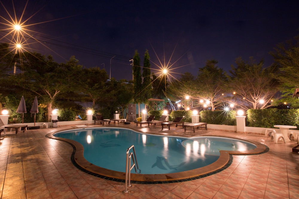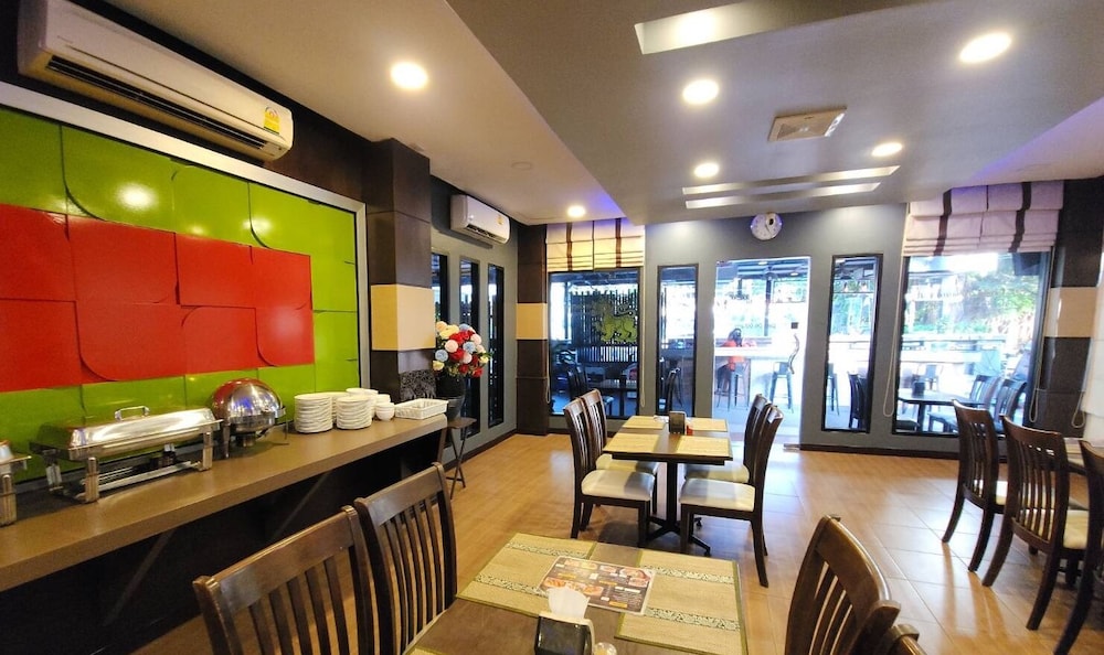 I've been coming here for years as an airport hotel. Simple, cheap, small, comfortable, clean, 10 minutes to BKK on shuttle for only 150 Baht. Has a restaurant and bar but I just walk to either the small market 10 minutes or large market 15 minutes. Pool is nice too.