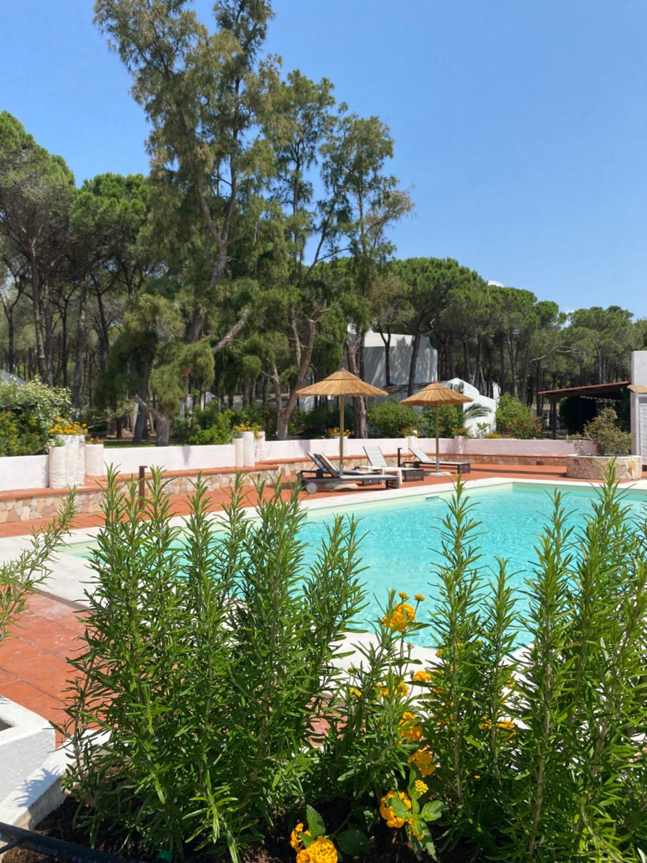 quiet location in oine forest close to the sea, nice small pool, free sunbeds, staff