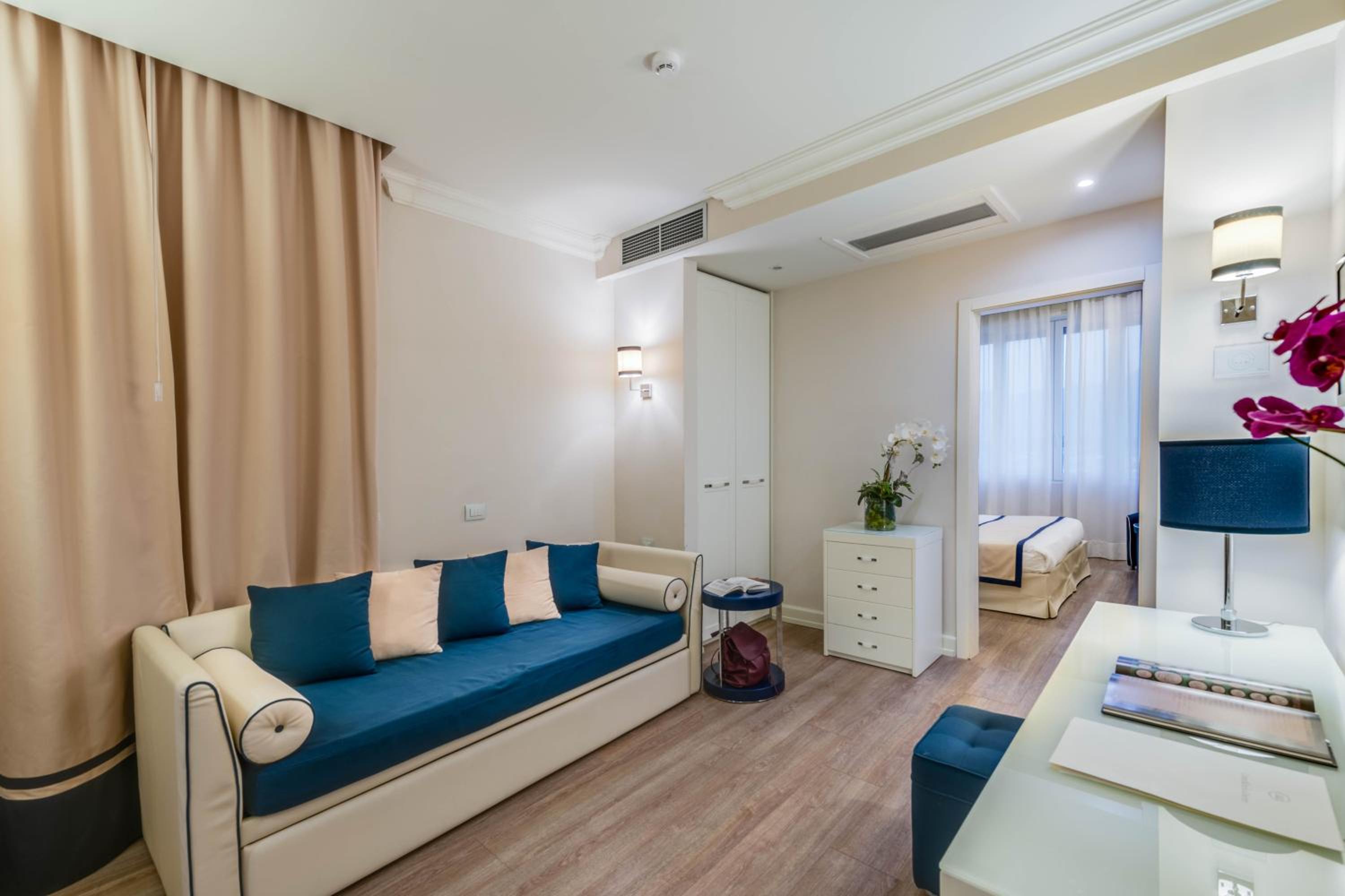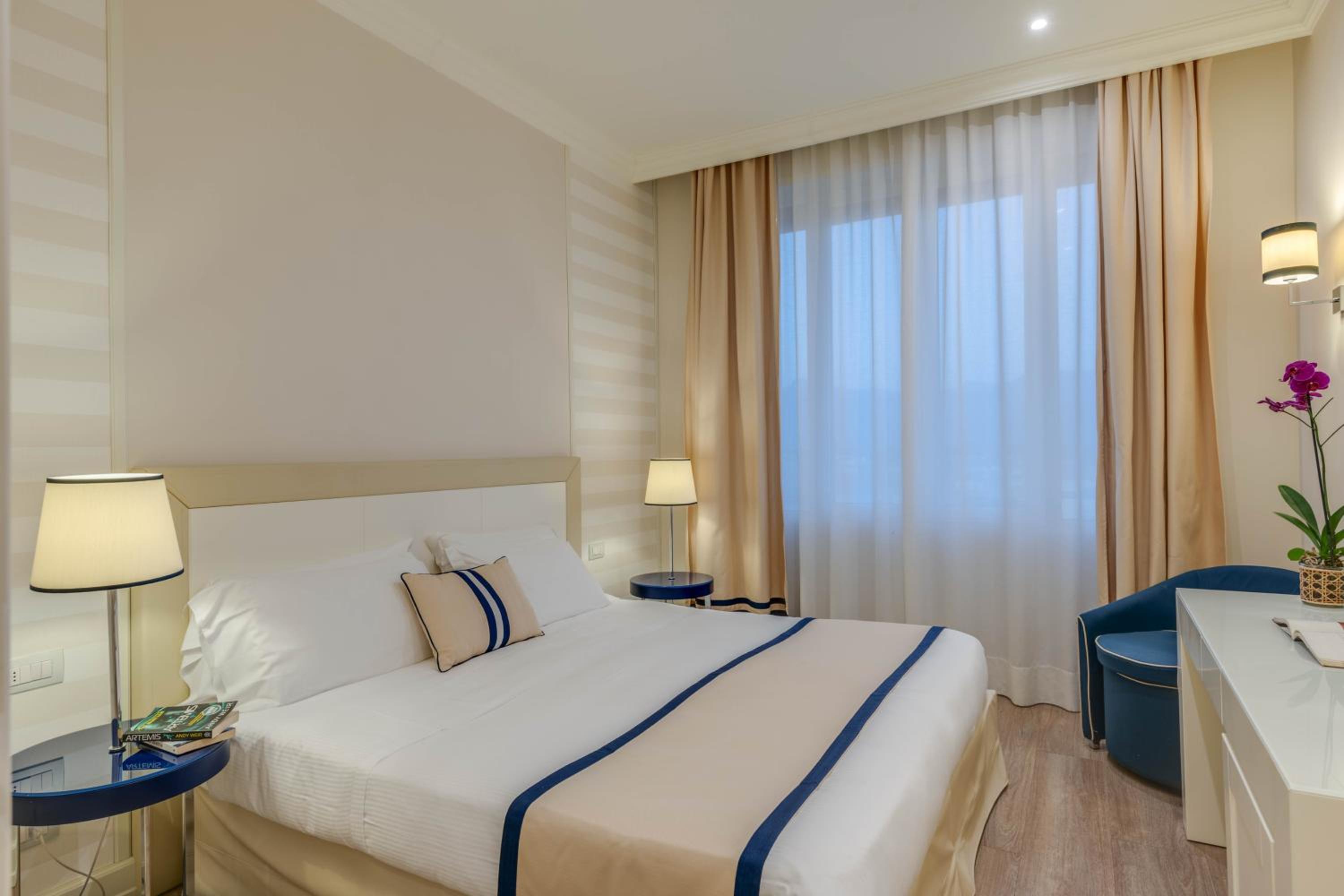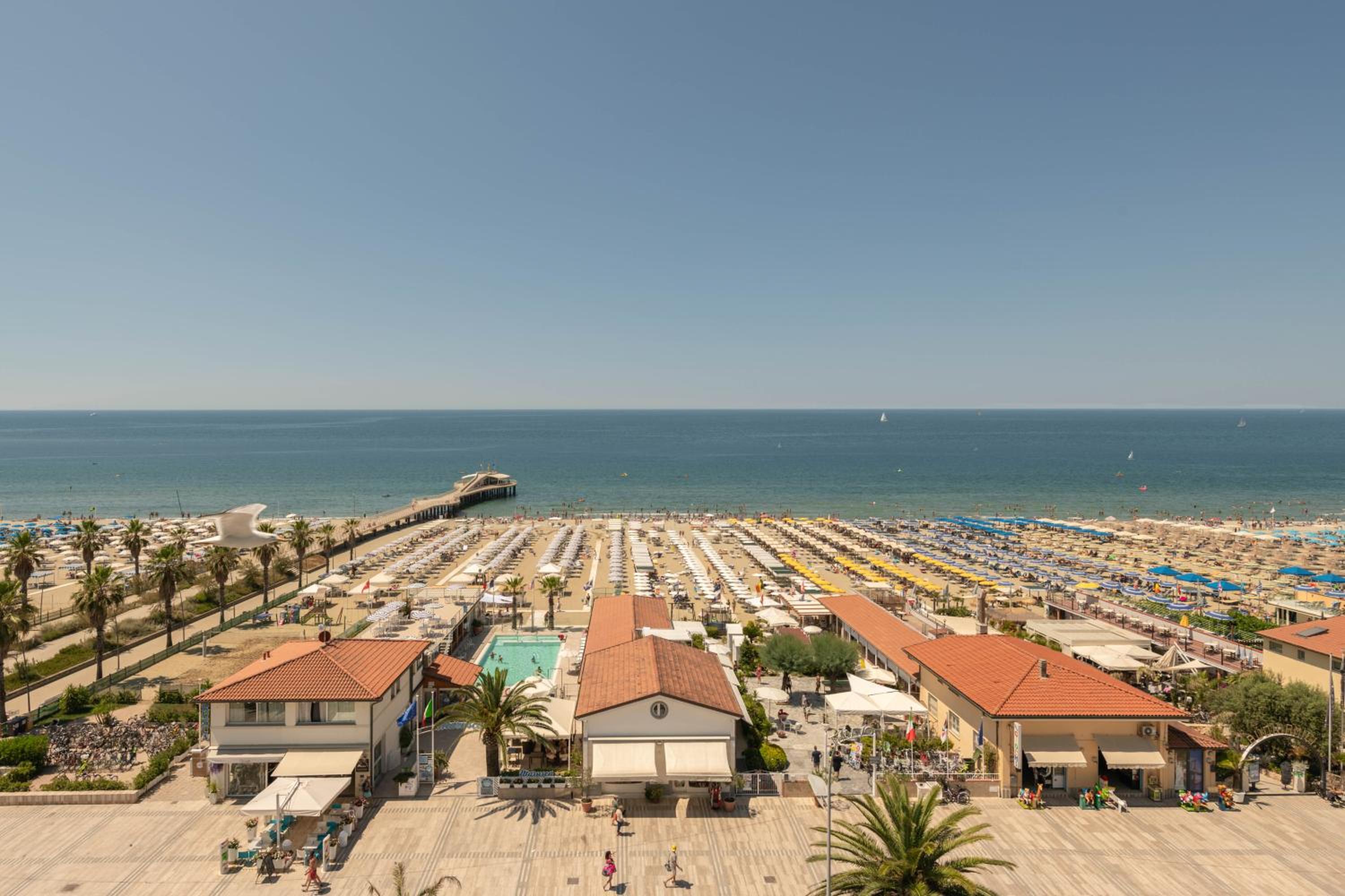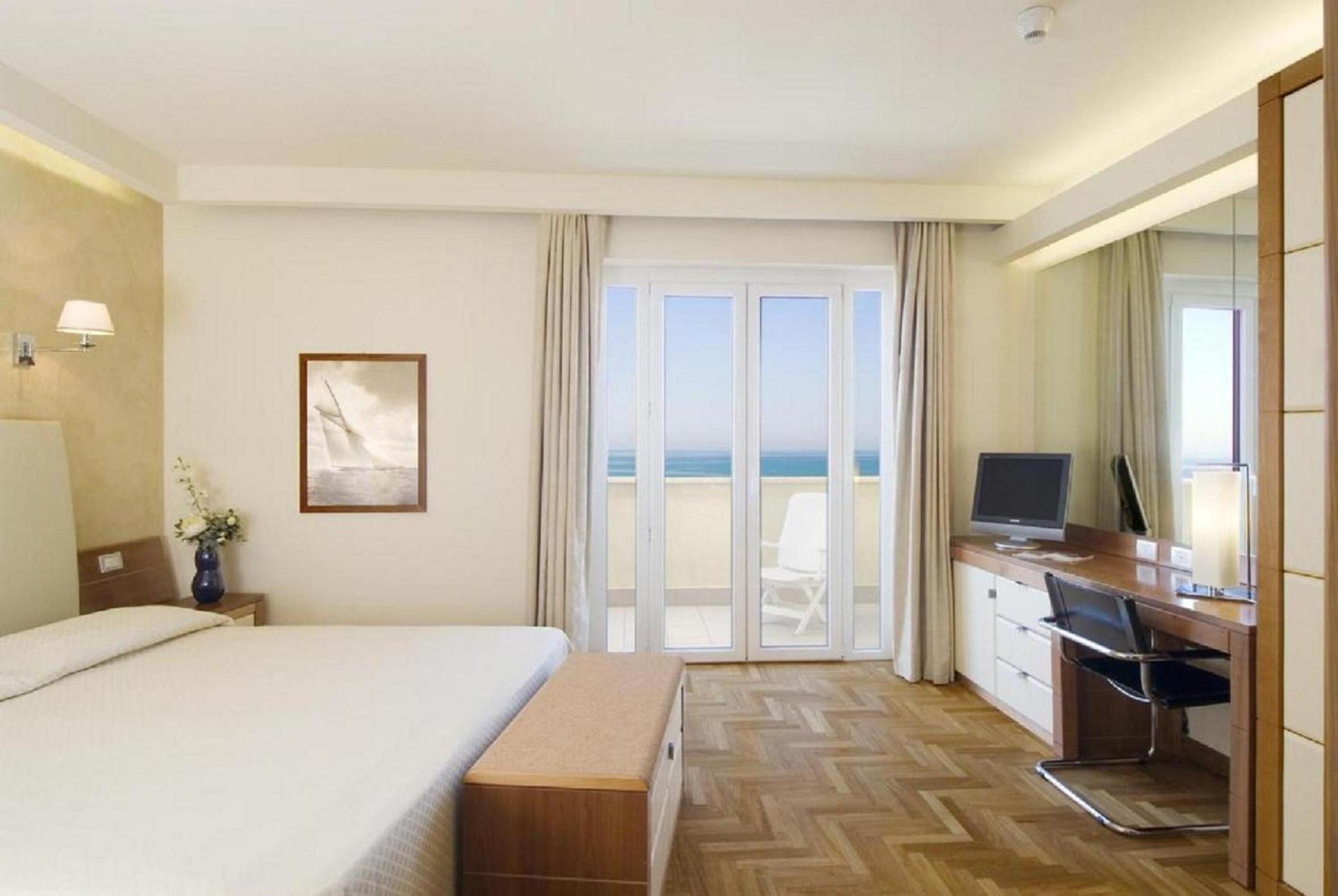 Most rooms offer stunning sea views, complemented by an outdoor pool, sophisticated restaurant, and bar area. The stylish rooms feature modern furnishings and either sea or Apennines mountain views.