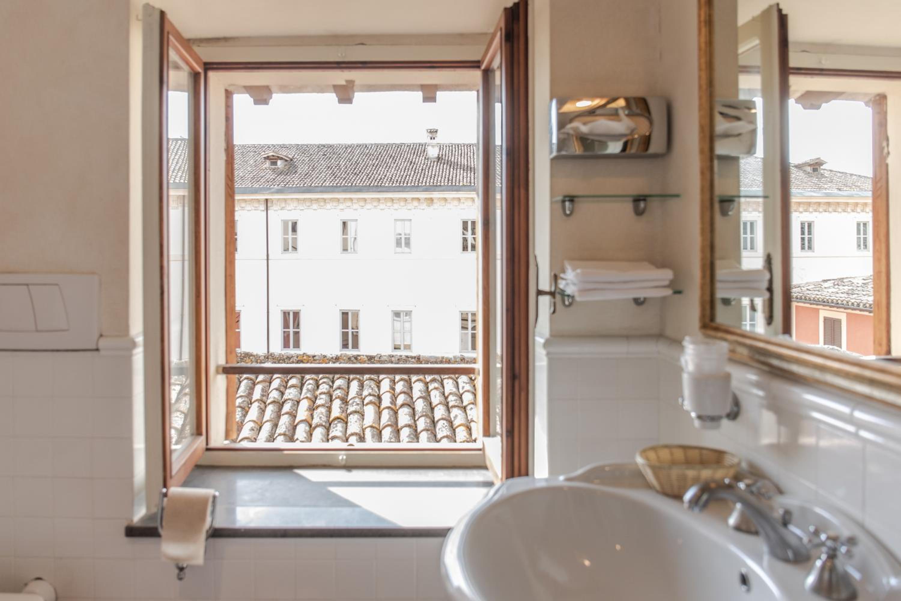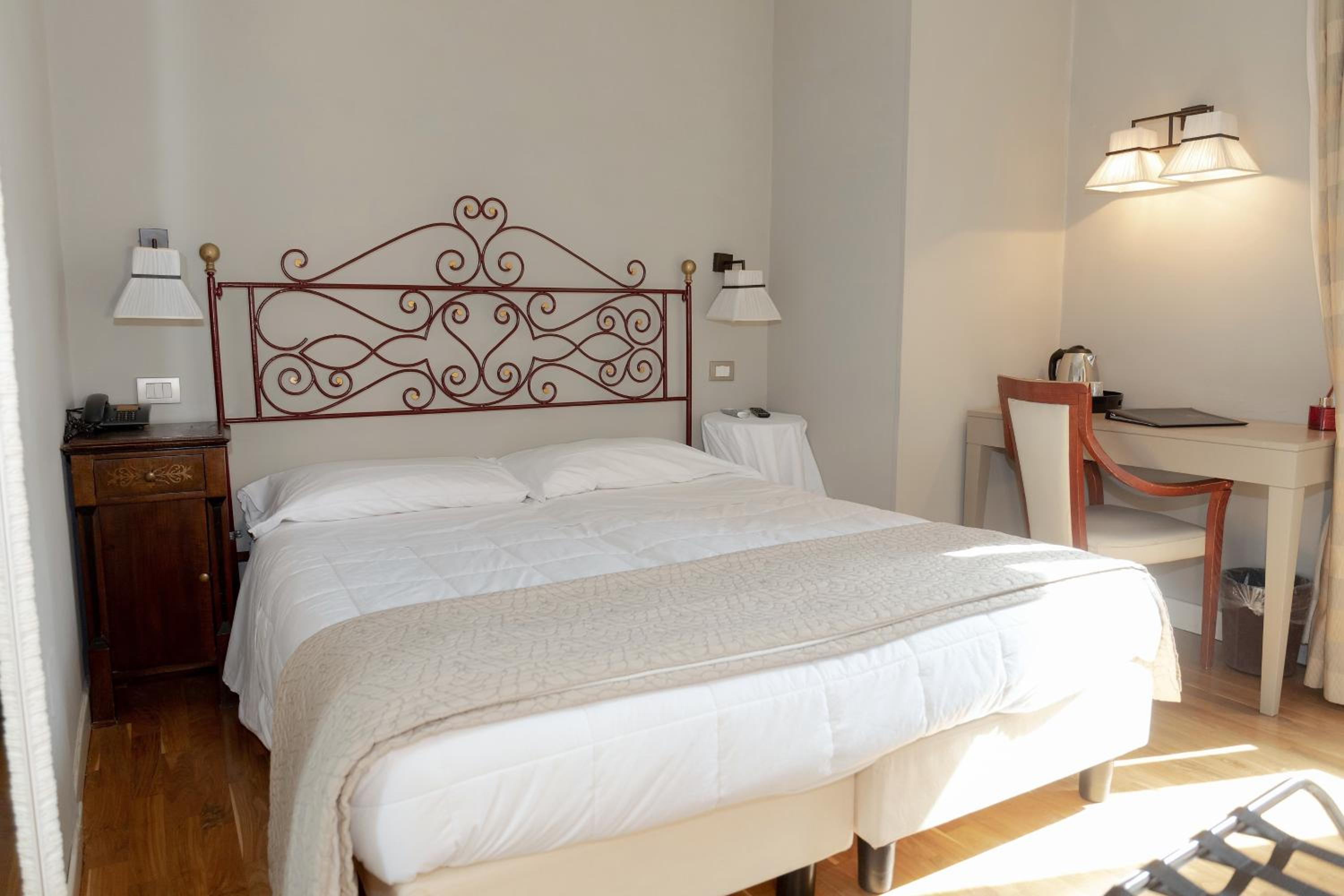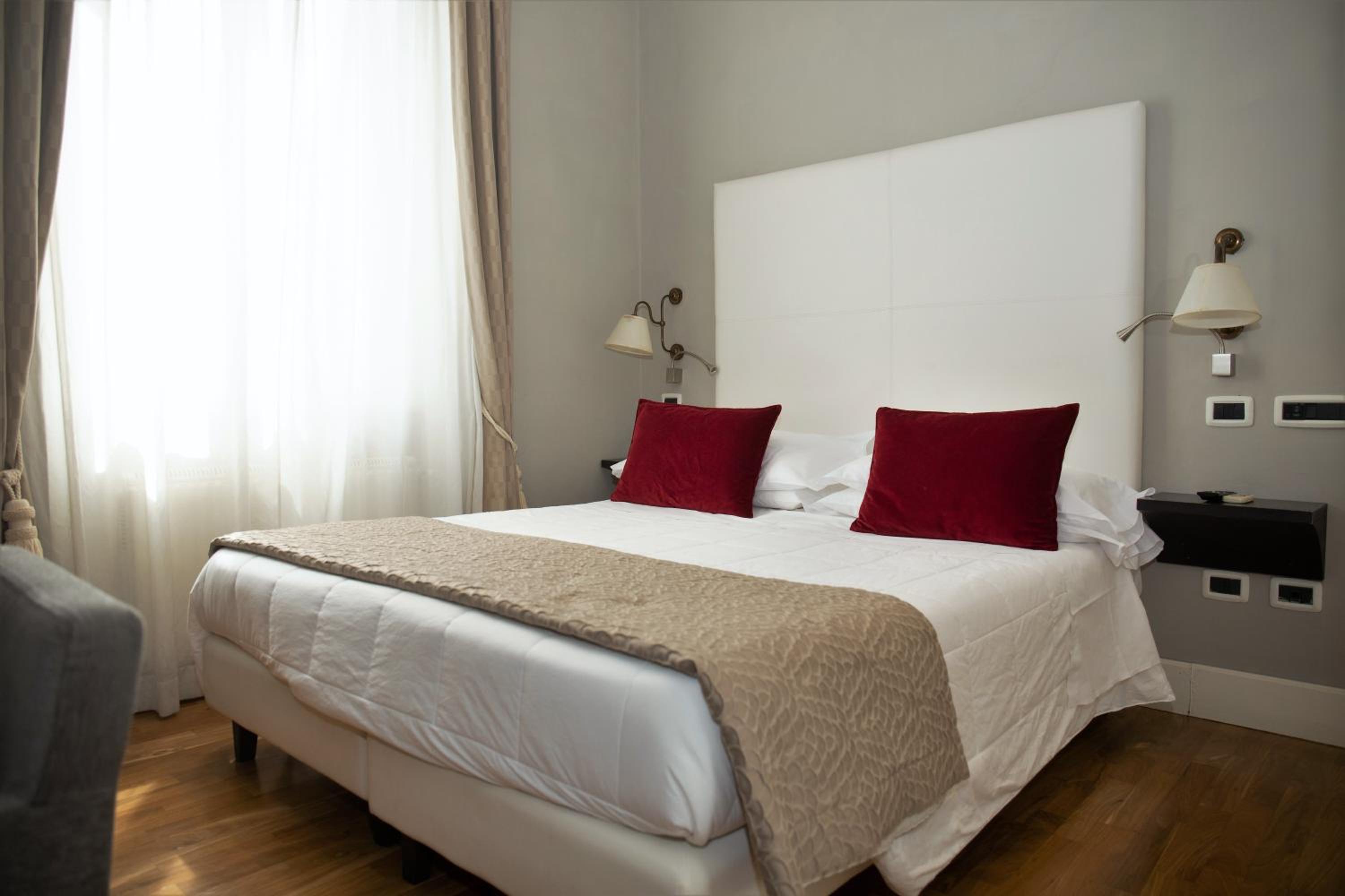 La posizione strategica in pieno centro storico, la possibilità di parcheggiare in parcheggio privato di fronte all'hotel ad un costo di € 15,00 al giorno, la colazione dolce /salato abbondante e varia. Molto belle e curate le zone comuni