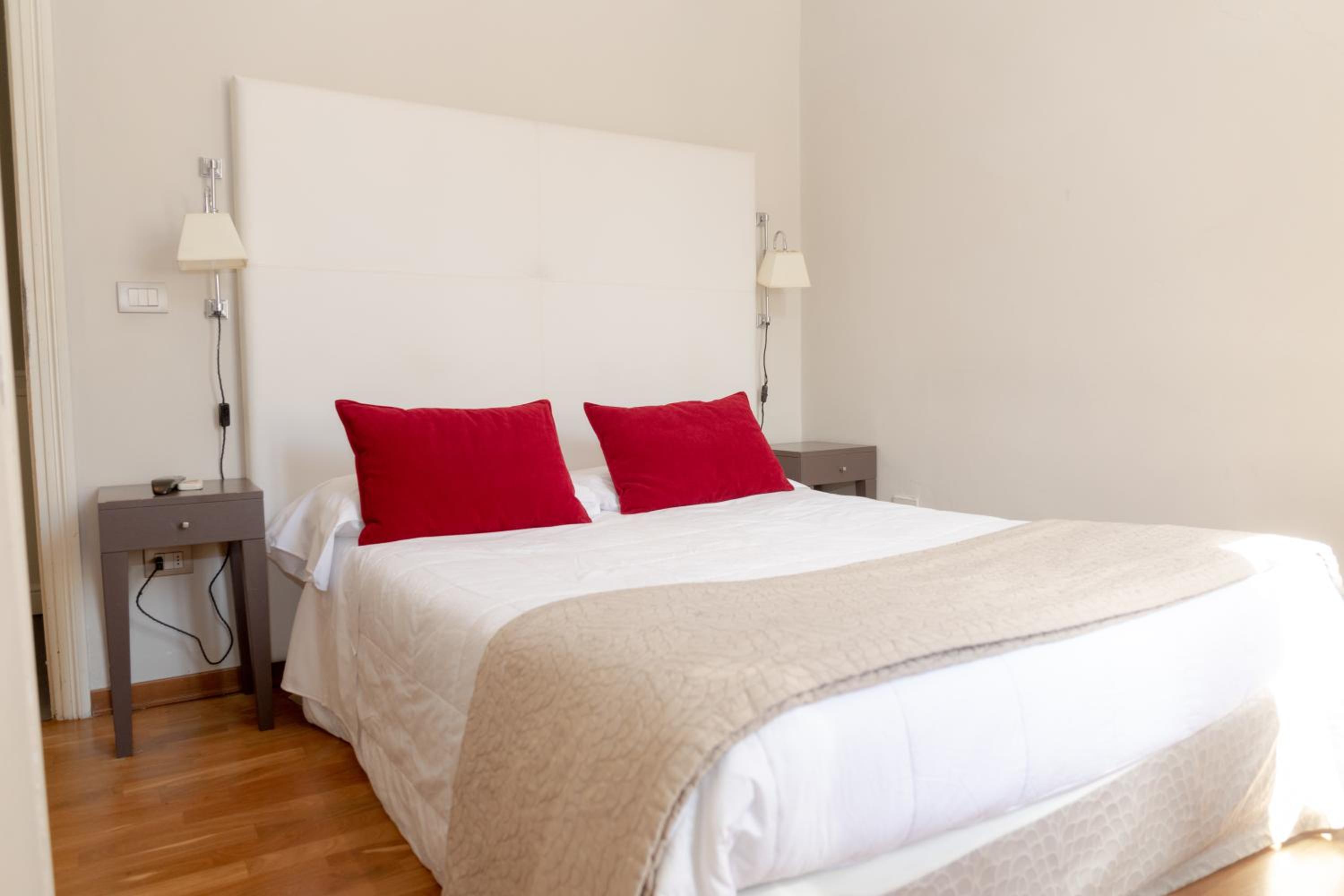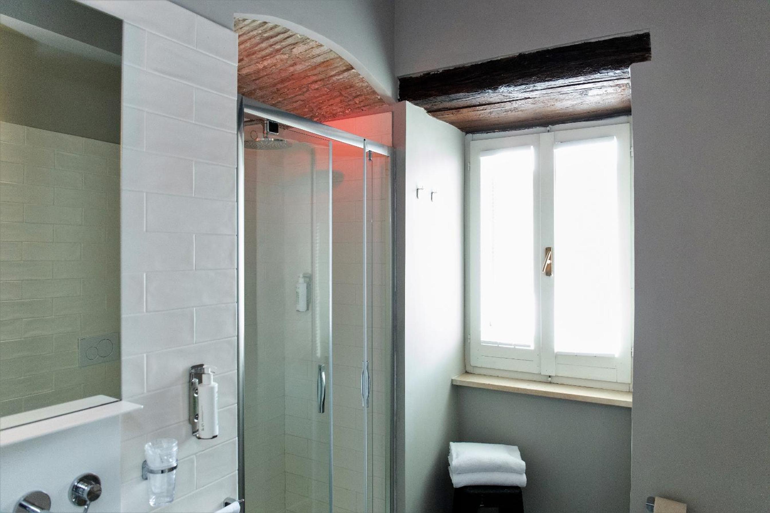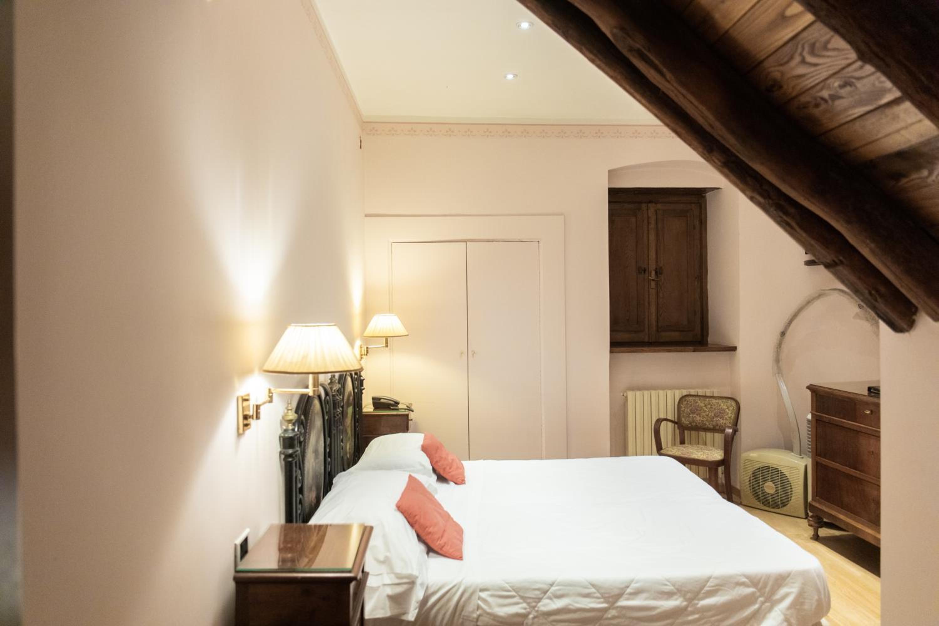 La posizione strategica in pieno centro storico, la possibilità di parcheggiare in parcheggio privato di fronte all'hotel ad un costo di € 15,00 al giorno, la colazione dolce /salato abbondante e varia. Molto belle e curate le zone comuni