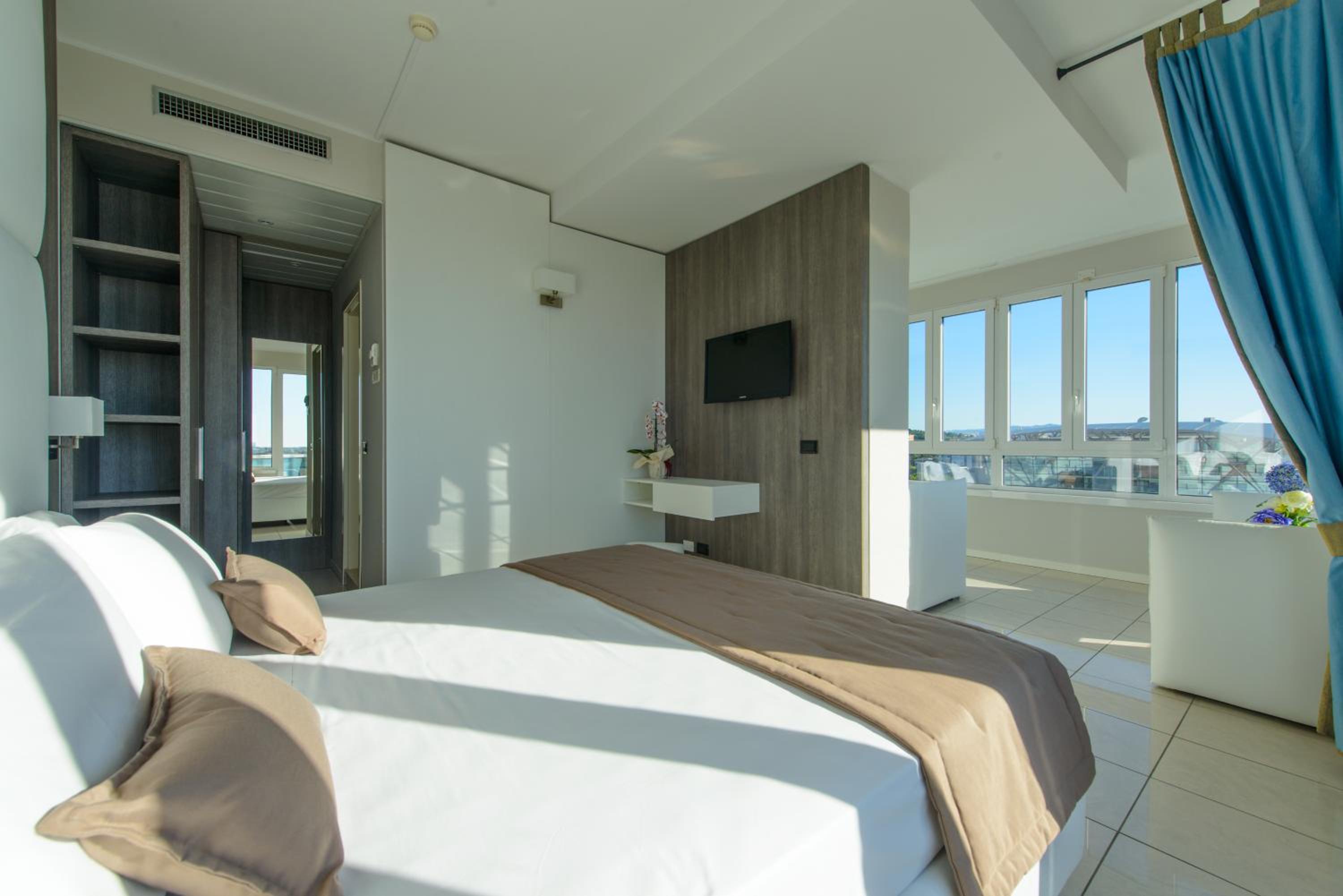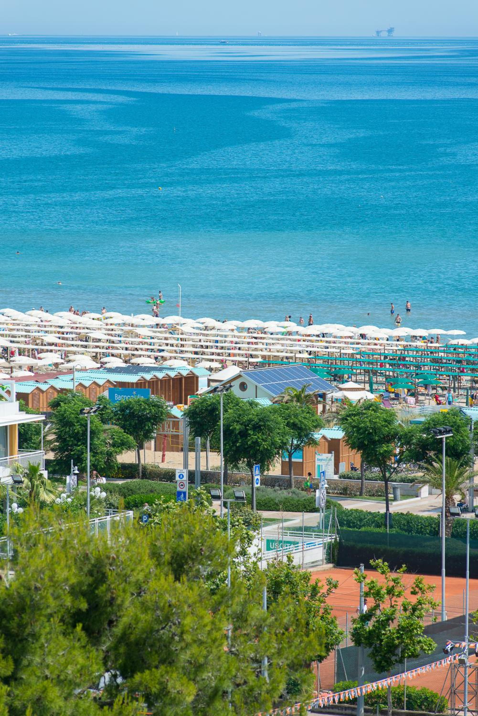 Hotel Cristallo, situated in Piazzale Ceccarini, offers elegant rooms with satellite TV and stunning views of the sea or city. All rooms are air-conditioned with modern amenities for a comfortable stay.