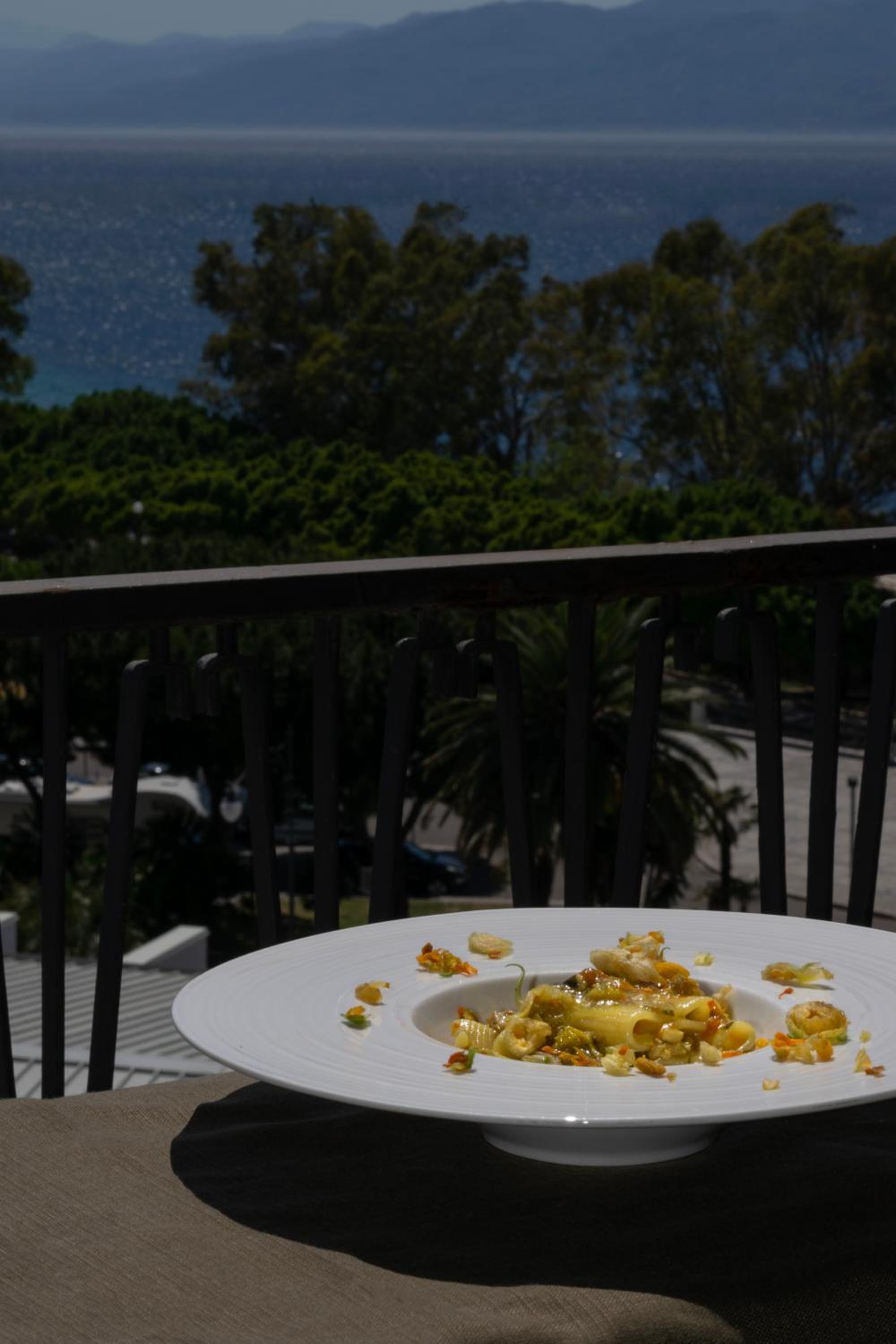 Il ristorante è raffinato, e solo la vista che si gode dalla sala (che è anche la sala della colazione) è mozzafiato