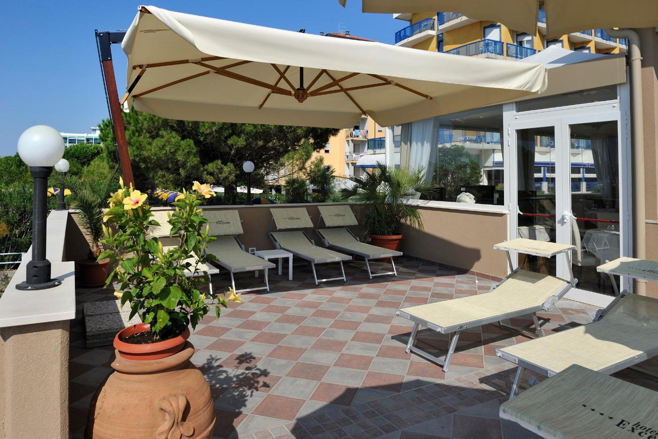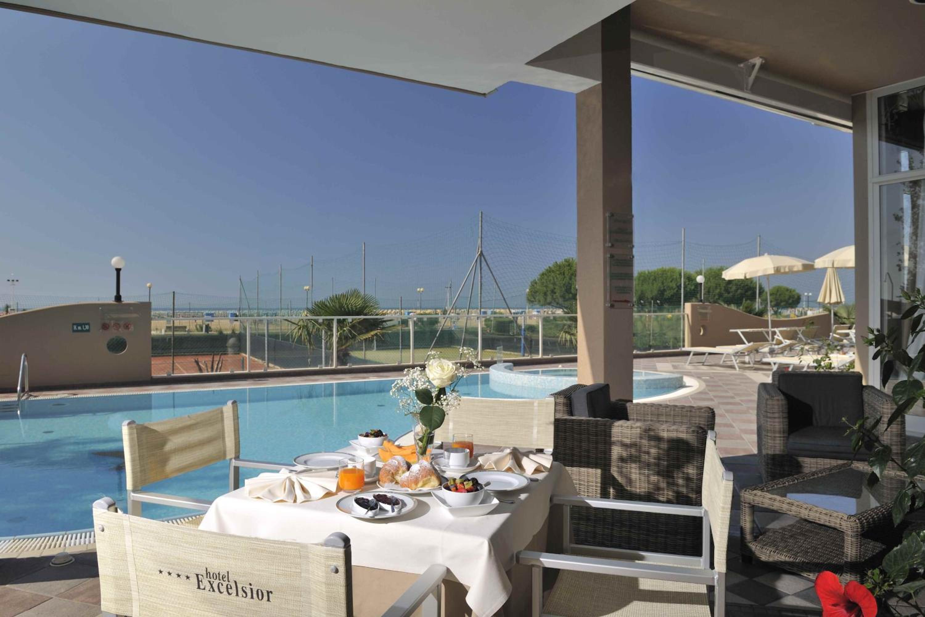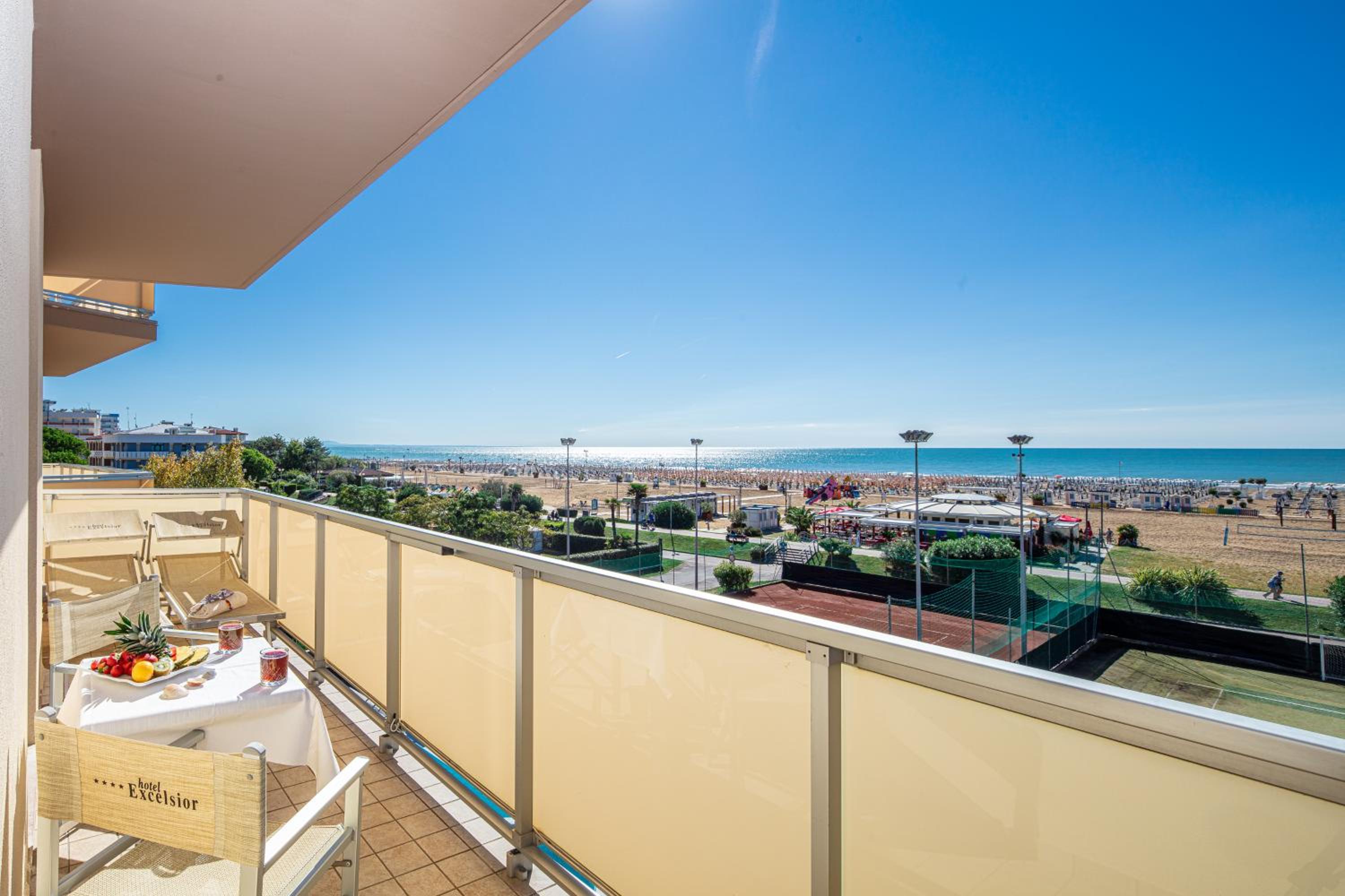Indulge in the large swimming pool, hot tub, and sea-view terrace at Hotel Excelsior. Enjoy complimentary beach amenities and stunning Adriatic Sea views from your balcony.