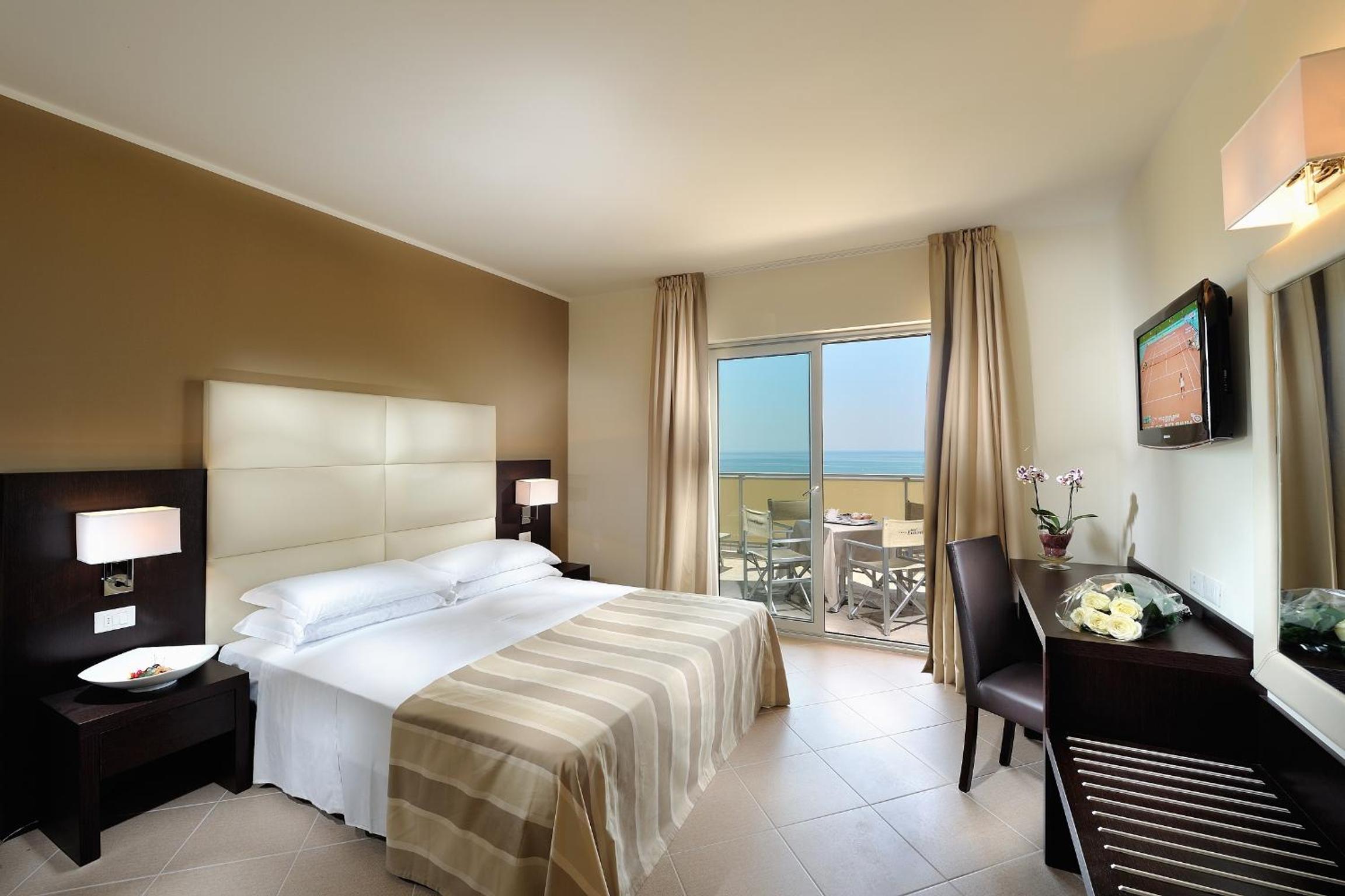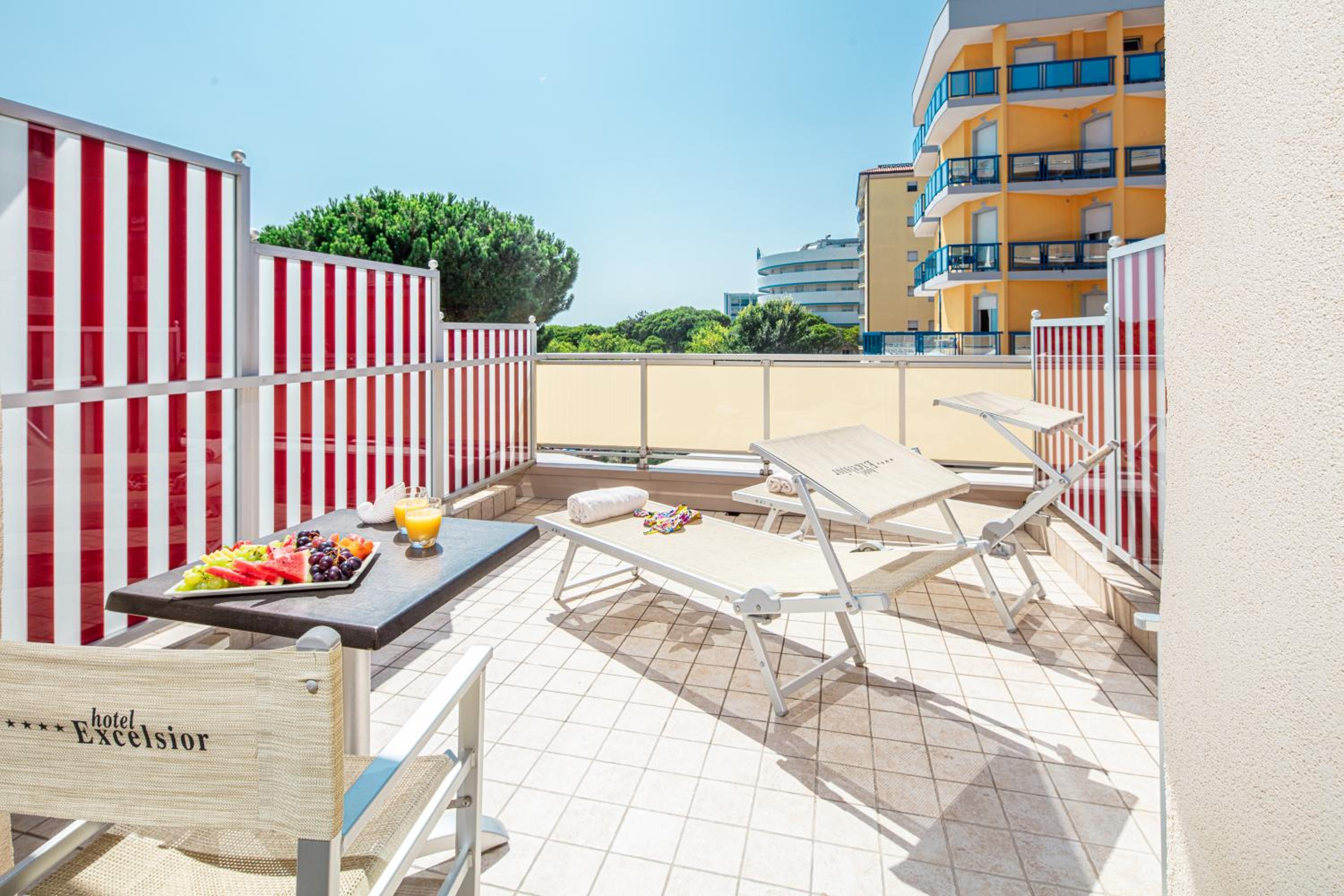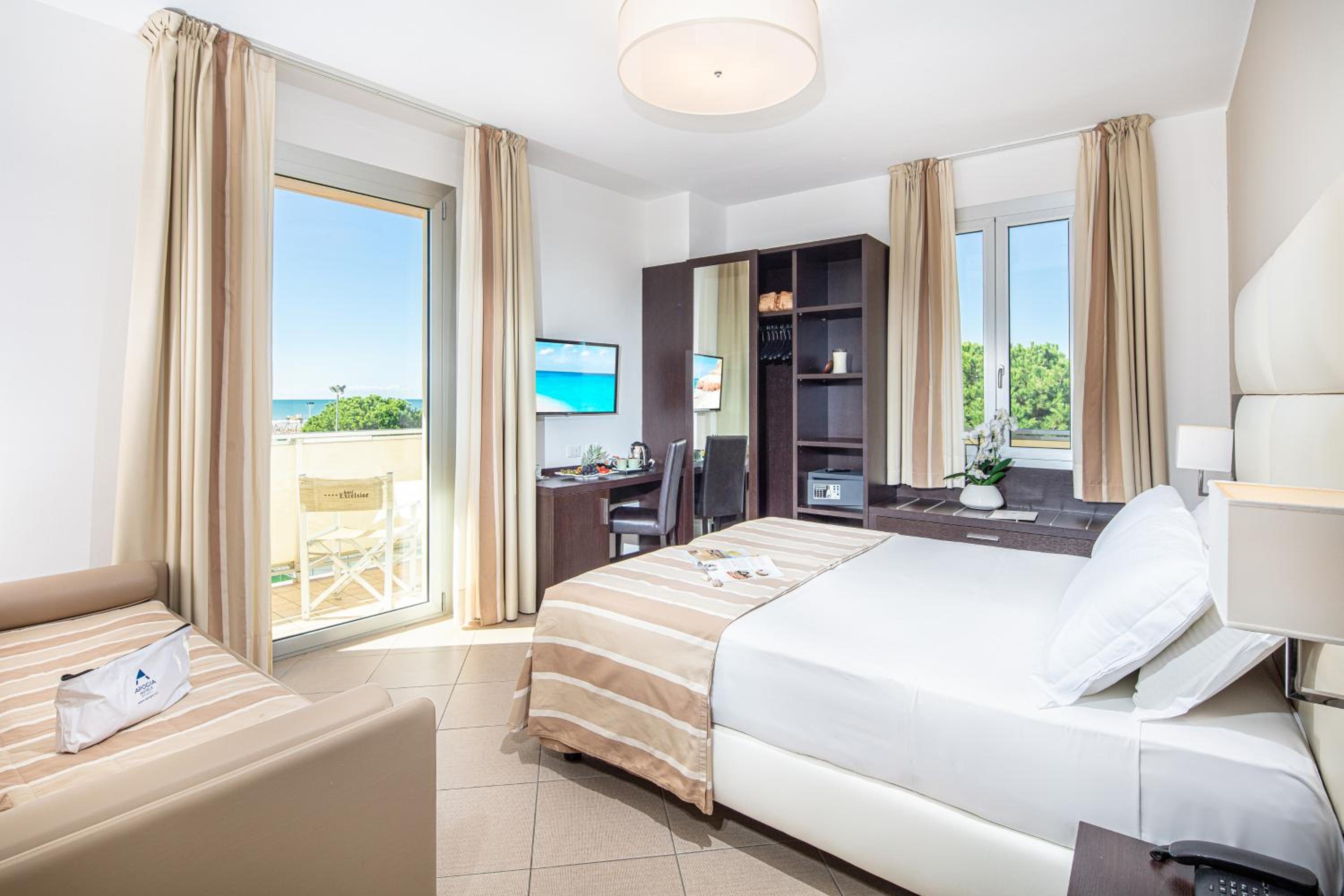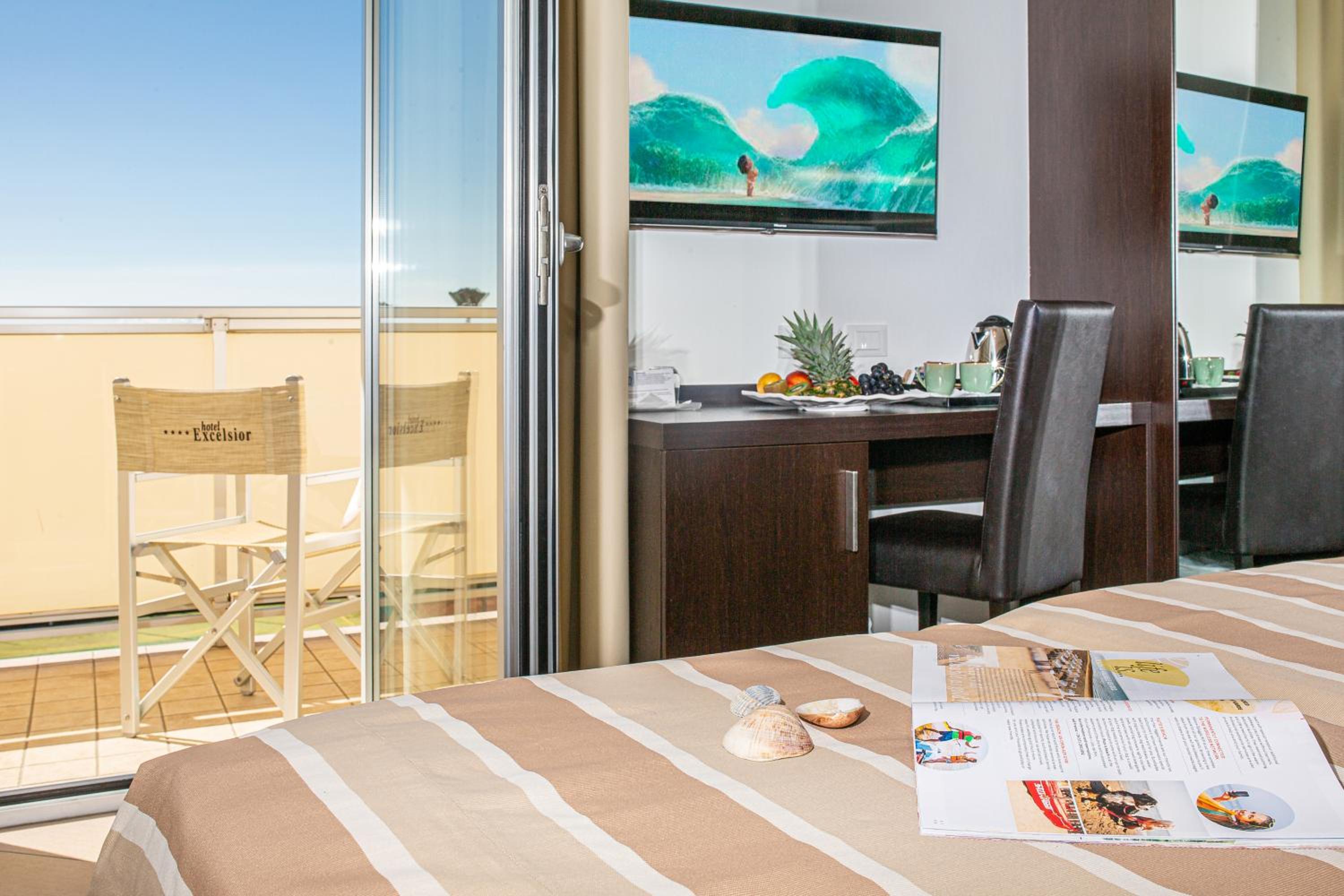 Indulge in the large swimming pool, hot tub, and sea-view terrace at Hotel Excelsior. Enjoy complimentary beach amenities and stunning Adriatic Sea views from your balcony.