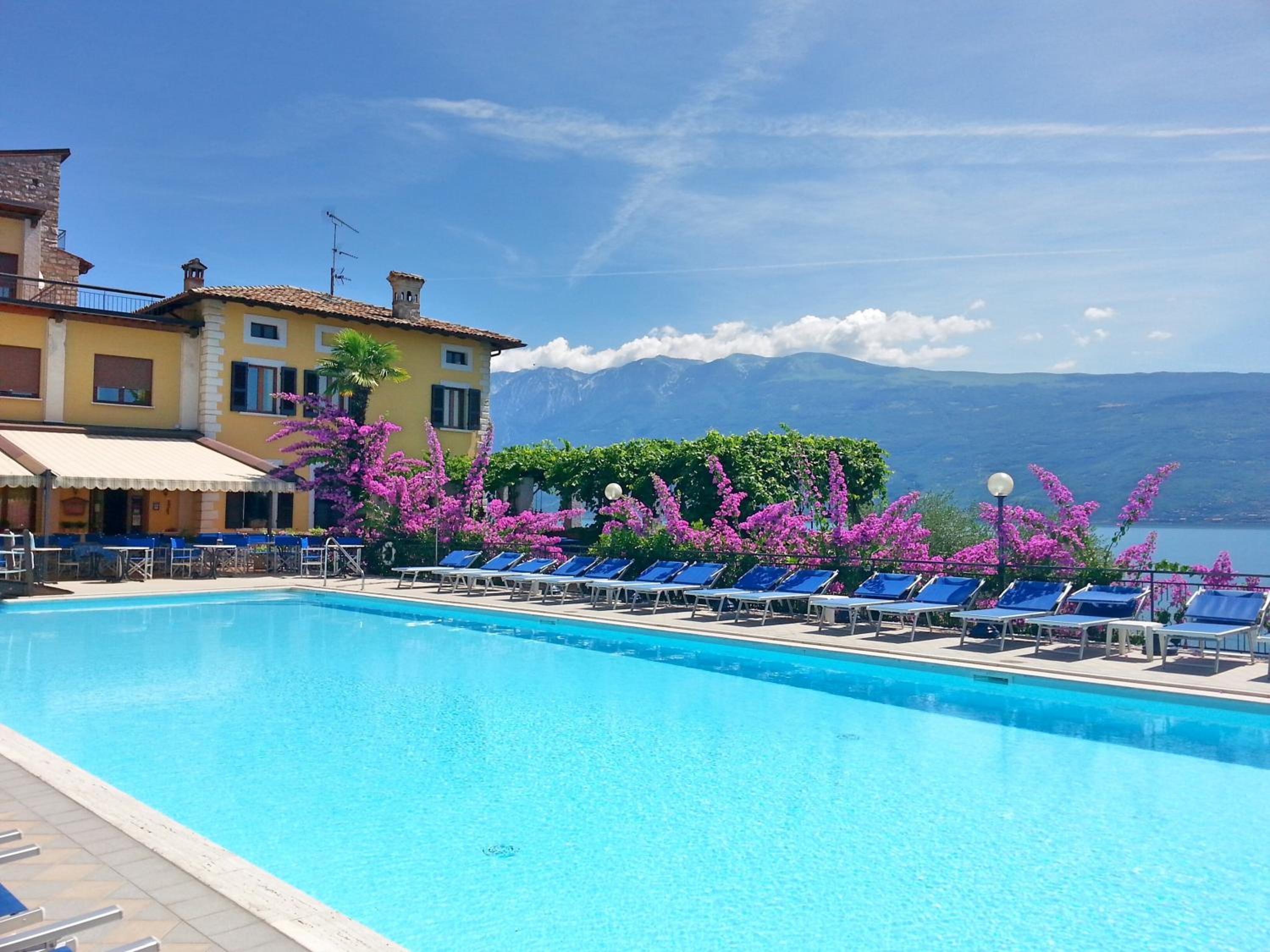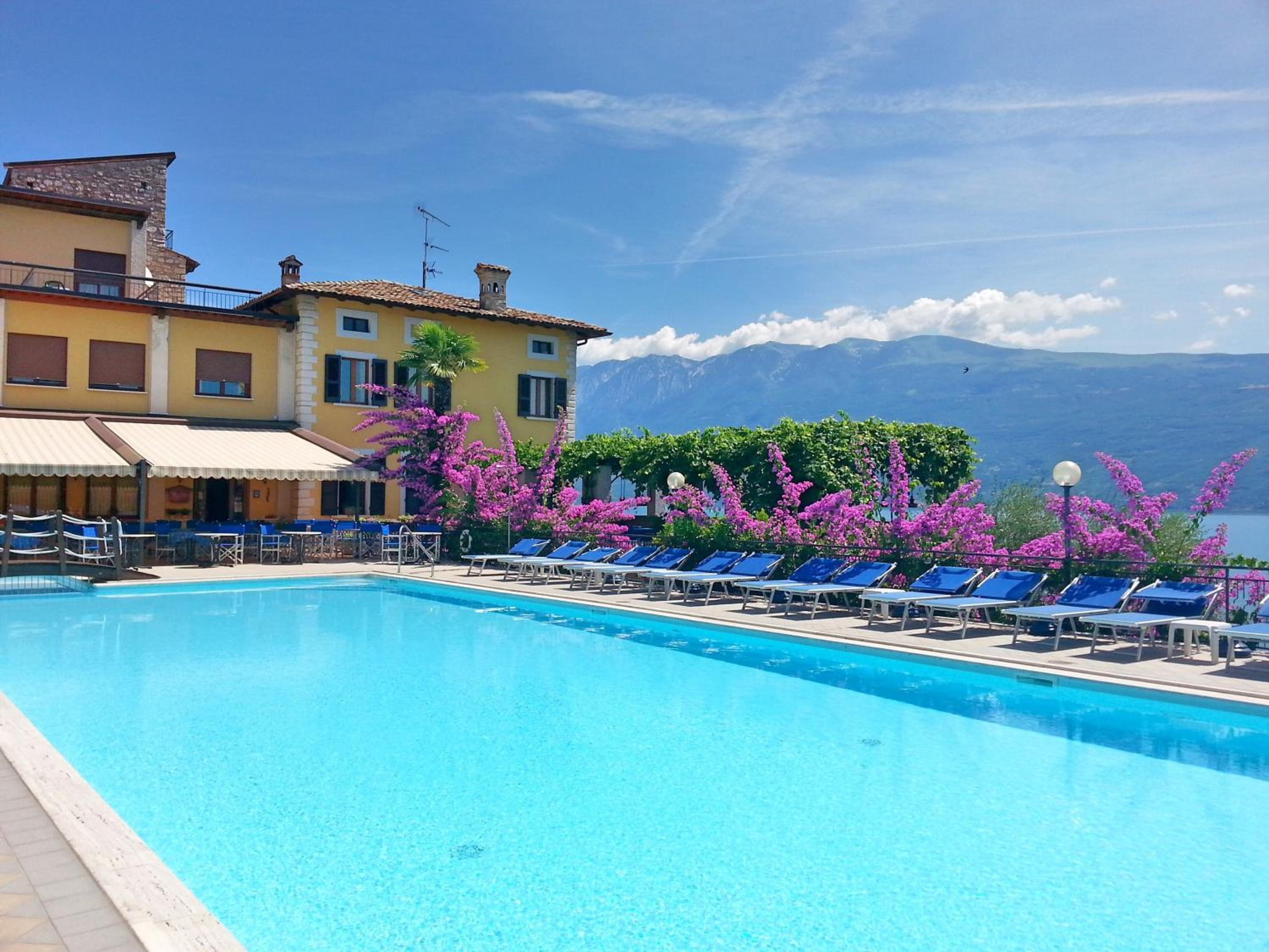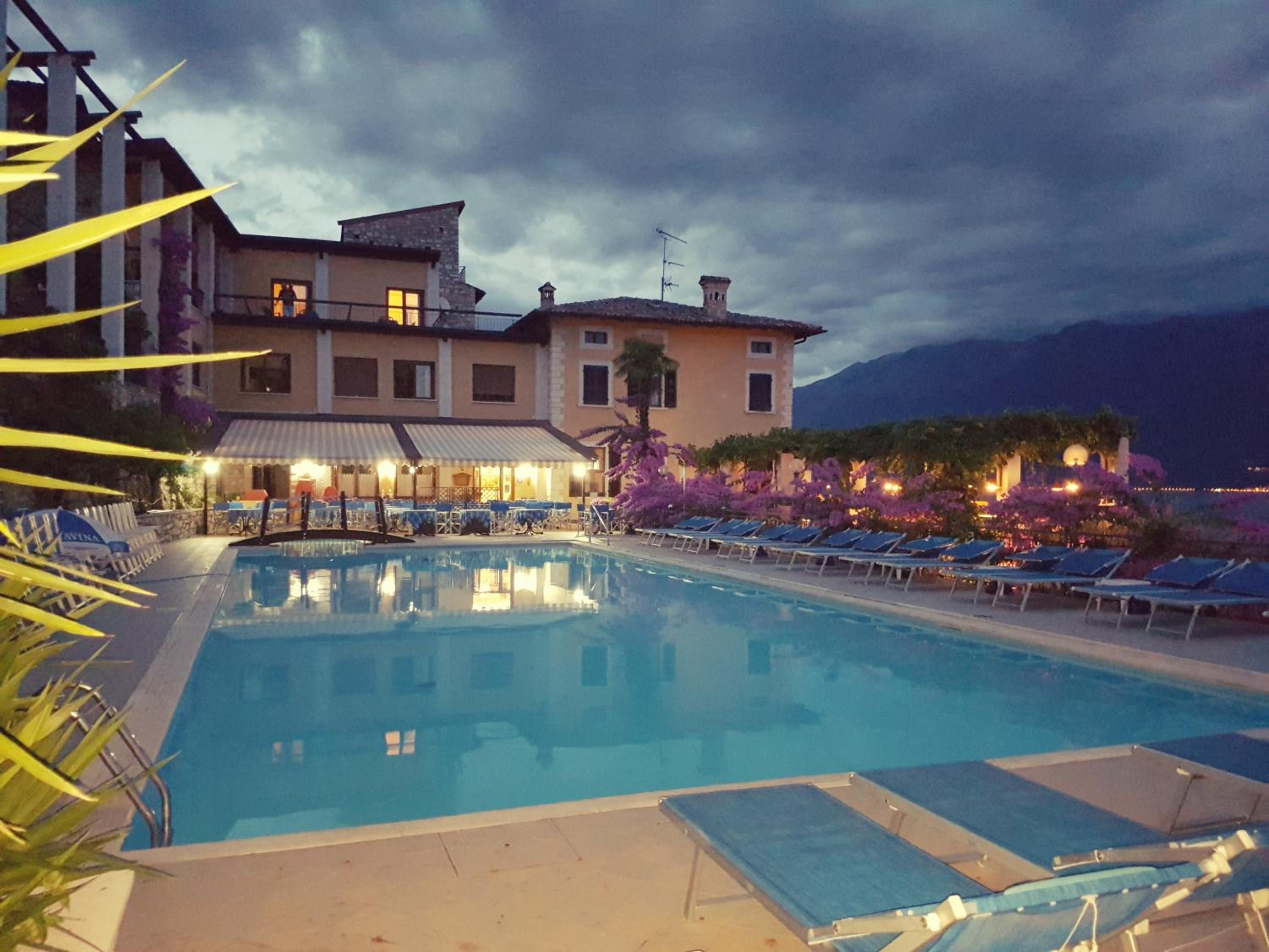 La posizione dell'hotel è magnifica, vista splendida sul lago, sia dalla camera che dalla piscina. La terrazza per la colazione all'aperto è meravigliosa, vista lago con lampade in terracotta stile berbero, il tutto sotto un pergolato su cui si arrampica una vite rampicante. Parcheggio comodo è fondamentale in questa zona del lago.