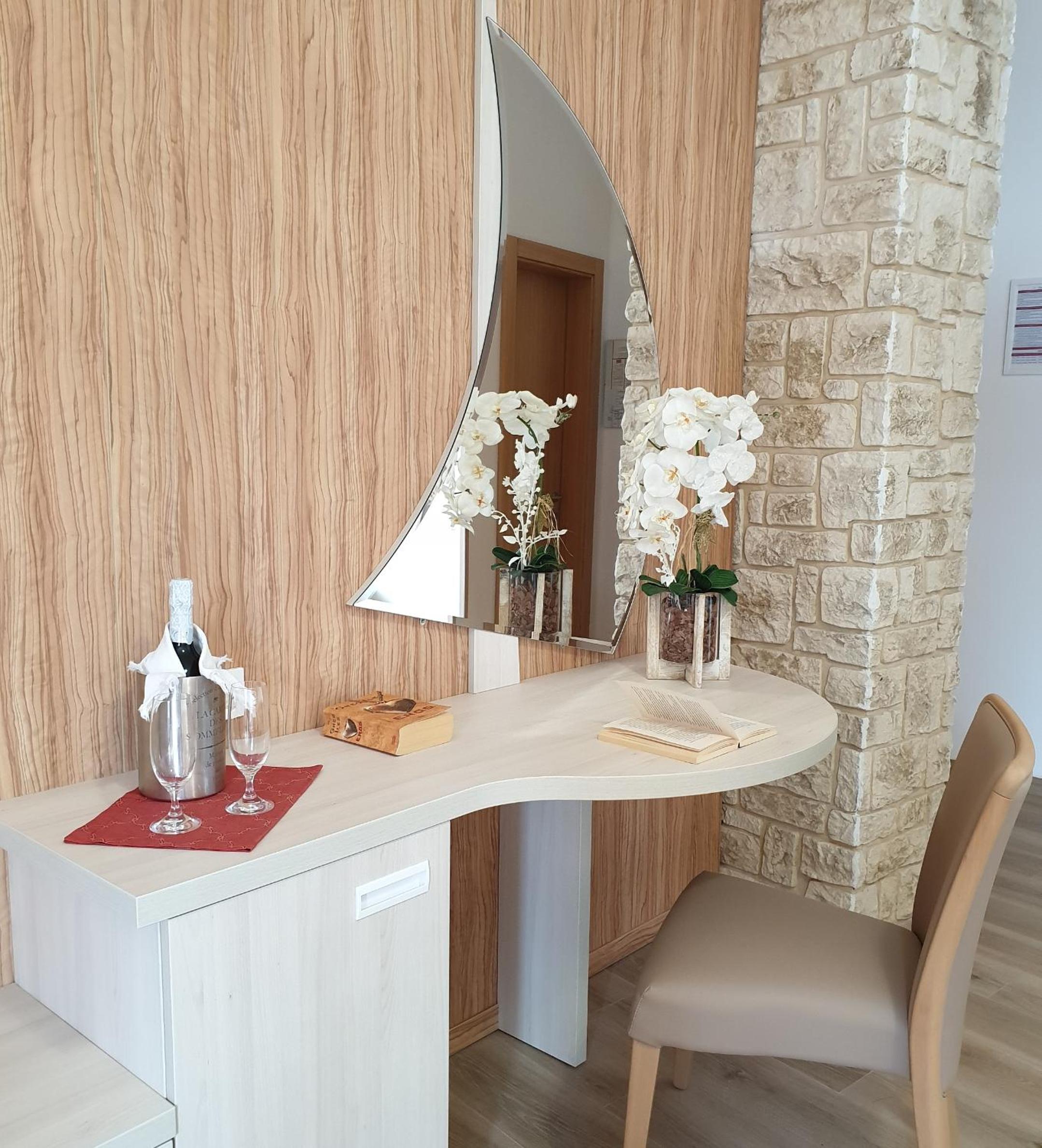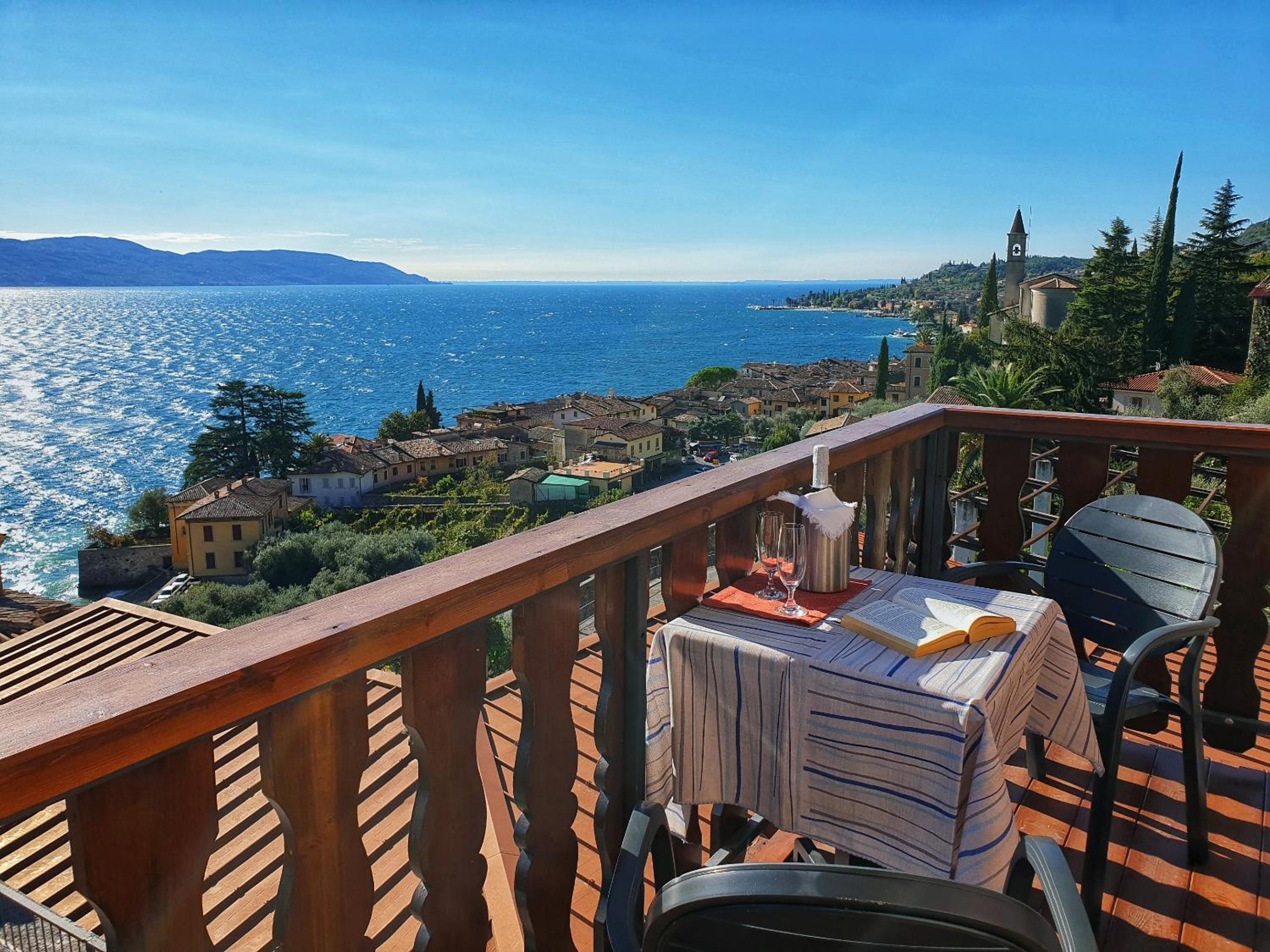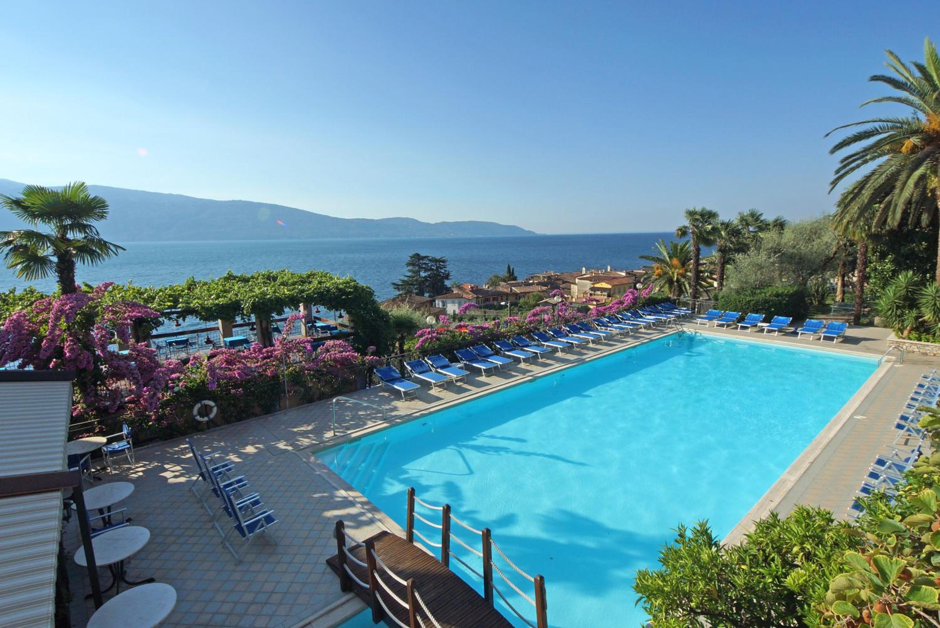 La posizione dell'hotel è magnifica, vista splendida sul lago, sia dalla camera che dalla piscina. La terrazza per la colazione all'aperto è meravigliosa, vista lago con lampade in terracotta stile berbero, il tutto sotto un pergolato su cui si arrampica una vite rampicante. Parcheggio comodo è fondamentale in questa zona del lago.