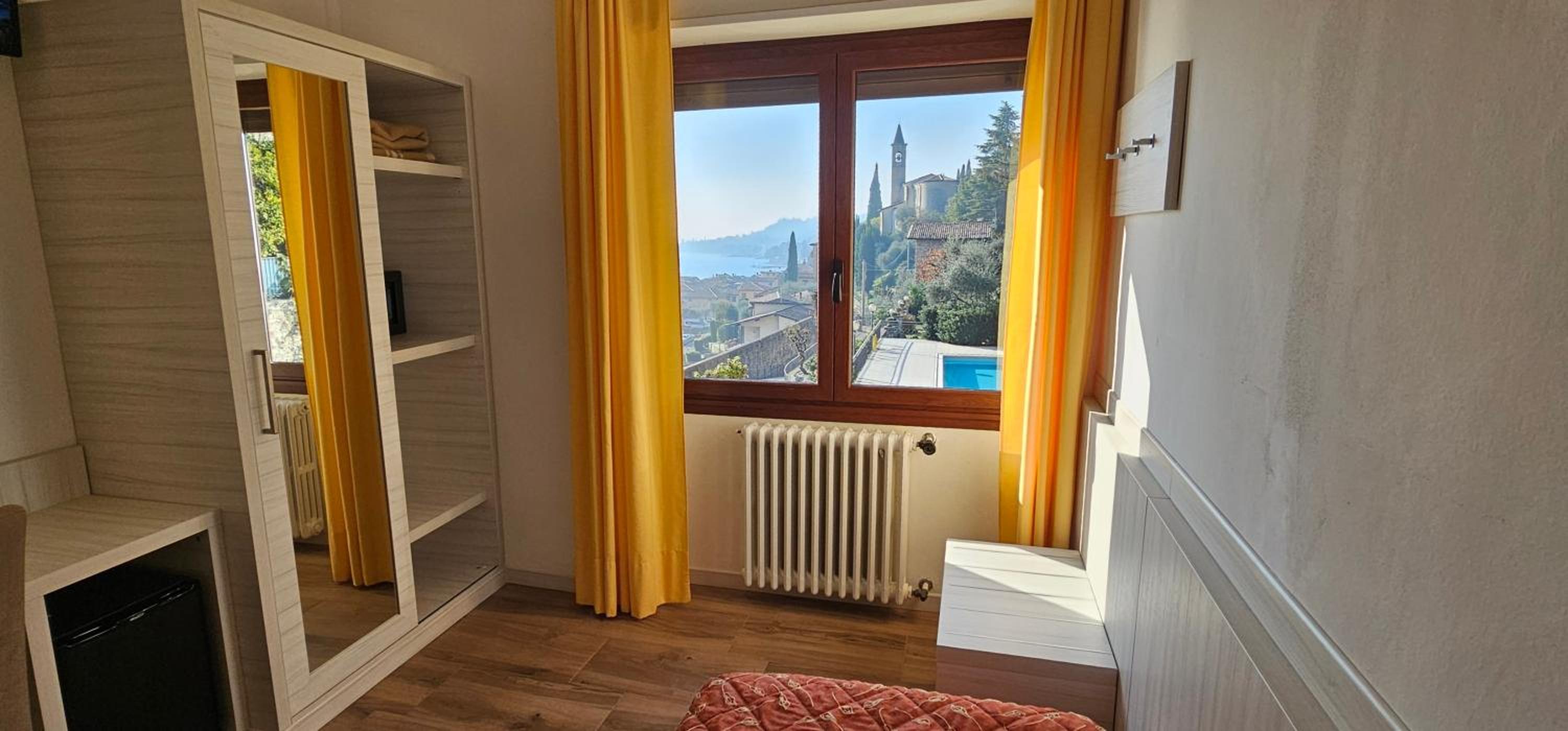 L hôtel est propre, de même que la salle de bains, le lit confortable et grand. Le cadre est très joli, avec un très beau jardin. La piscine est spacieuse. Des transats et parasols sont à disposition (essuies en location pour 2,5 euros/personne le sejour). L hotel possède un parking gratuit. Bon petit déjeuner varié. Il se trouve à 6 minutes de marche du centre de Gargnano (magasins, restaurants, ferry). Je recommande cet hôtel. Très bon rapport qualité prix