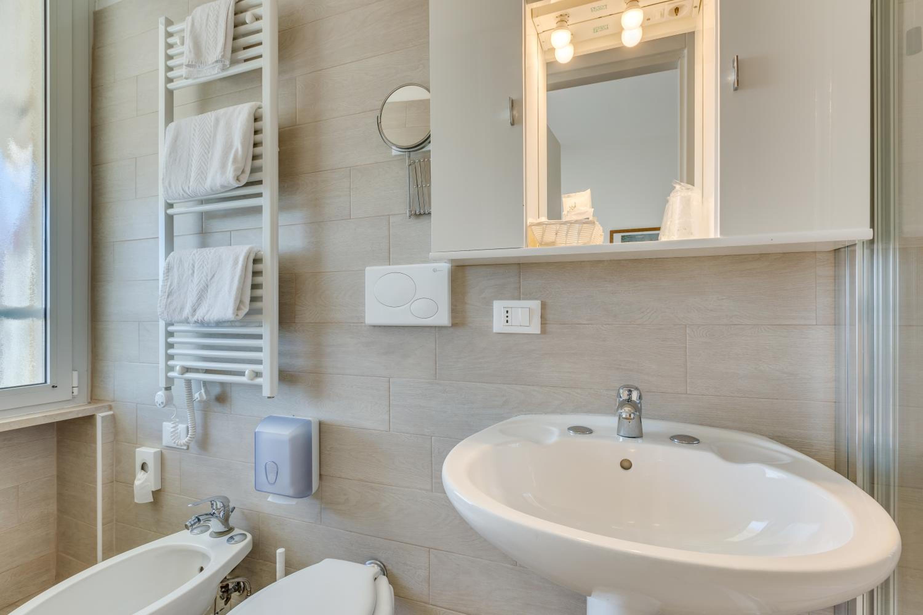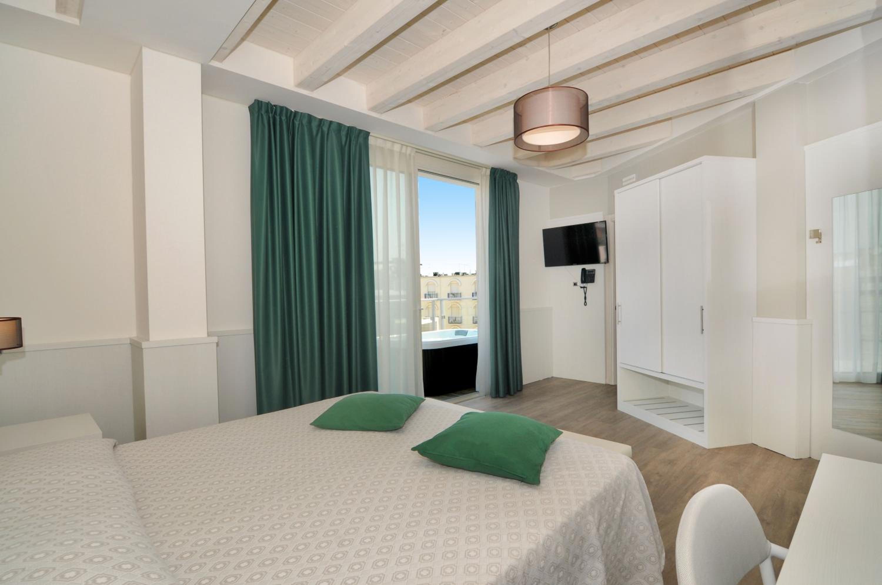 Hotel Austria, situated along Caorle's picturesque promenade, offers elegantly designed air-conditioned rooms with satellite TV. Select rooms boast balconies, stunning sea views, and even outdoor hot tubs for a truly indulgent stay.