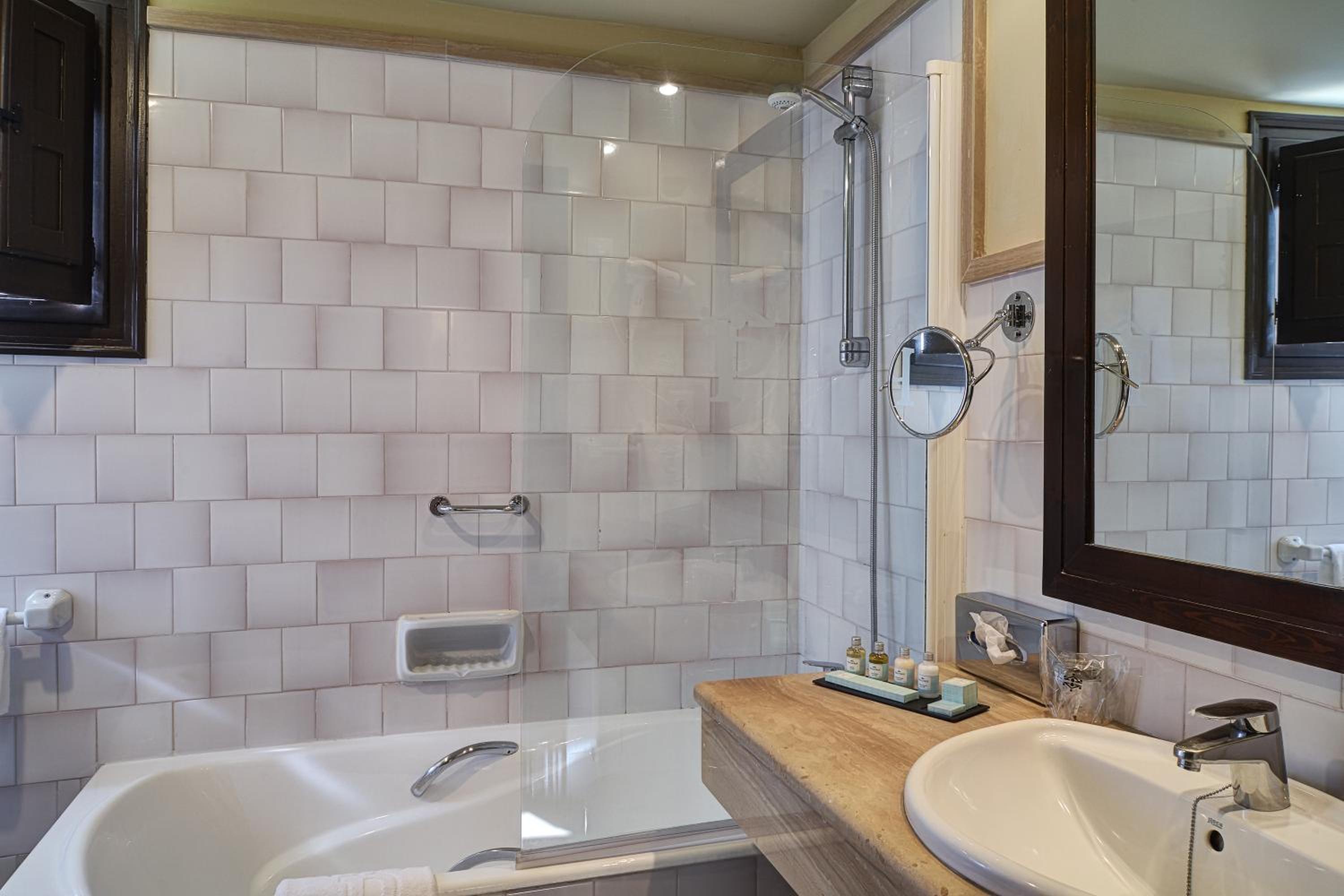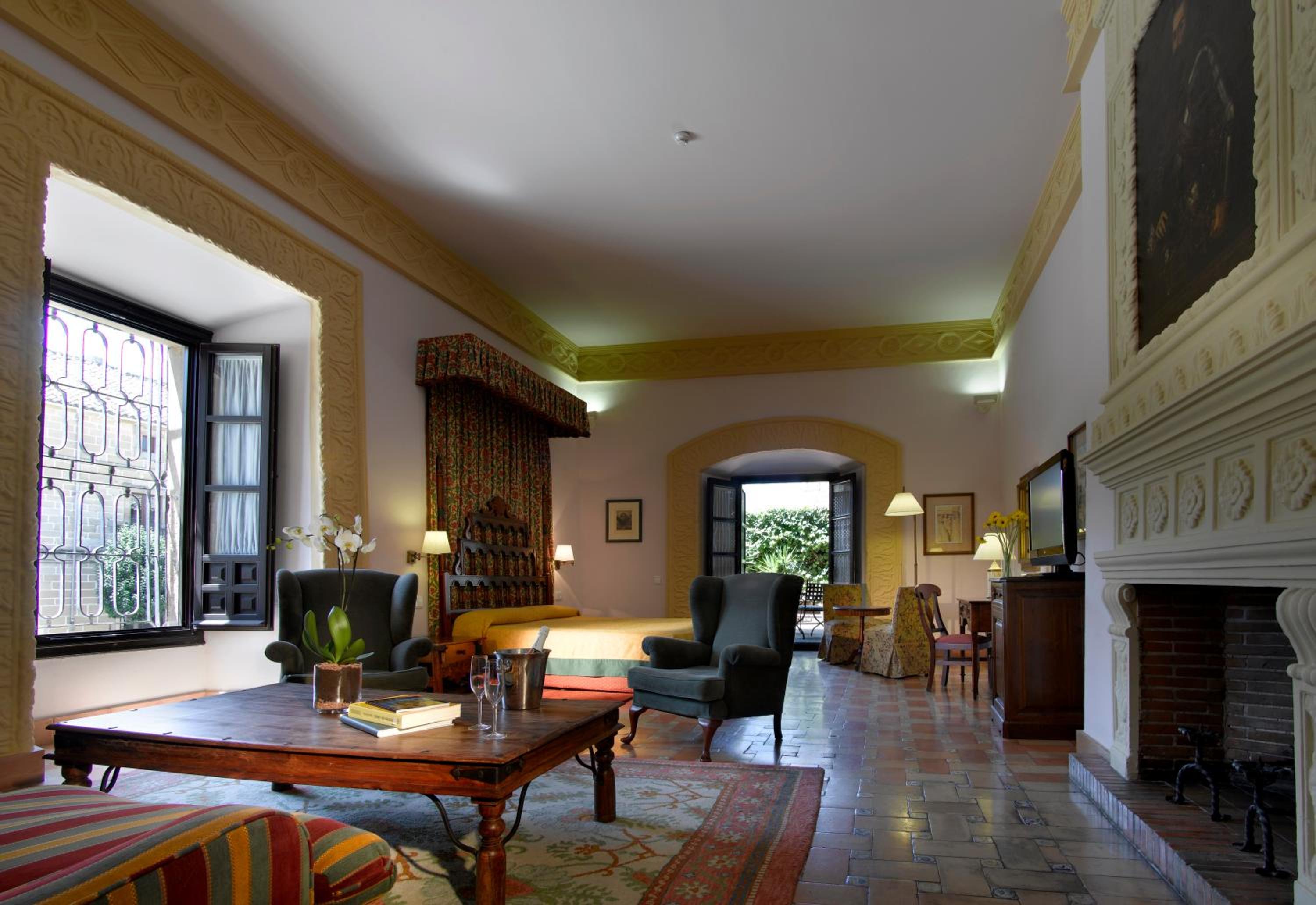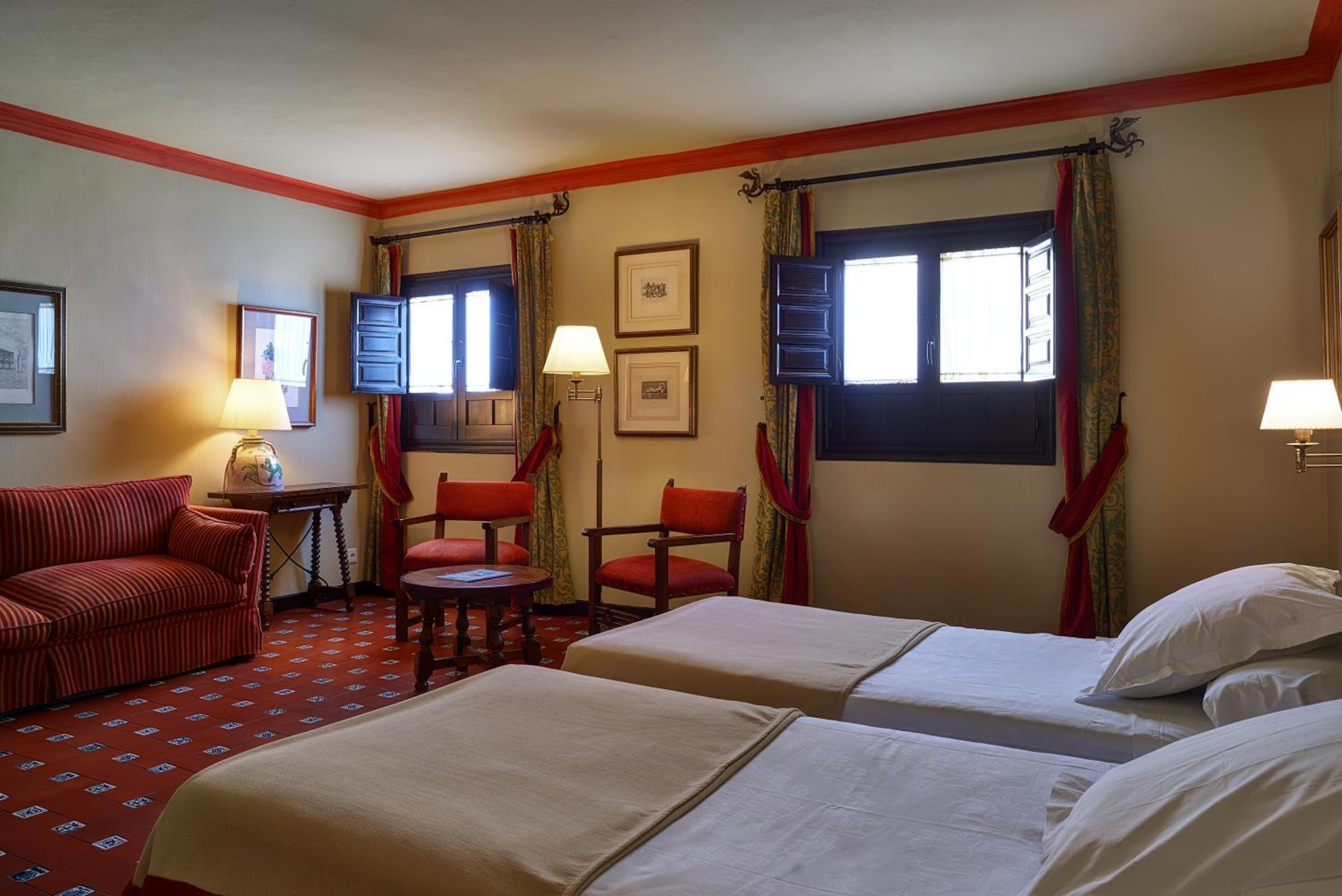 We loved everything about our room! To say it was large is an understatement. And that includes the bathroom which was exceptional. Very well decorated, indescribably comfortable. Quiet. On the second floor, double doors that opened on a small Juliet balcony that overlooked a delightful garden space. Staff, restaurant, central courtyard for sipping wine were all simply excellent. The best hotel of our two weeks in Spain. And all this in addition to the historical nature of the building preservation!